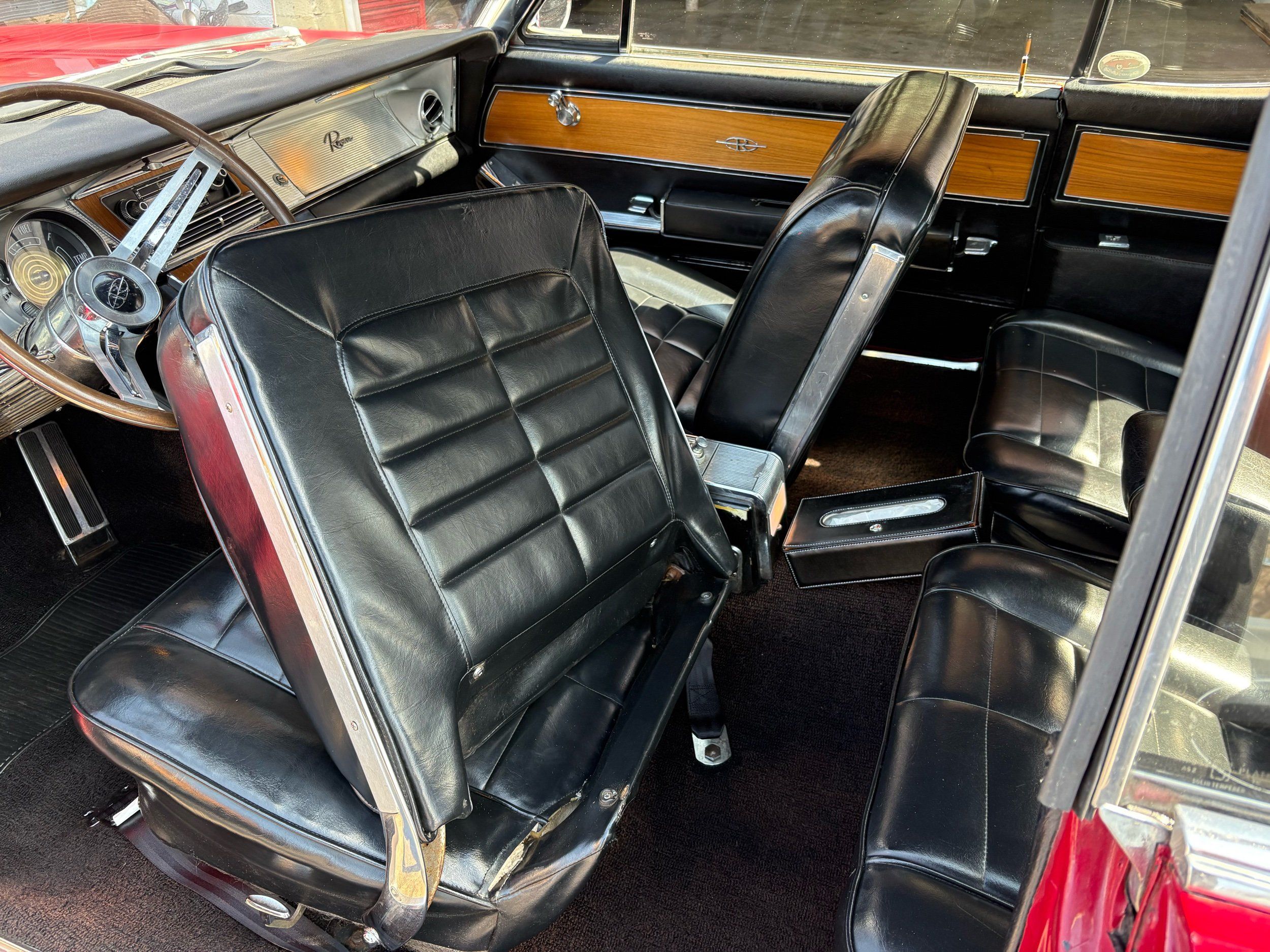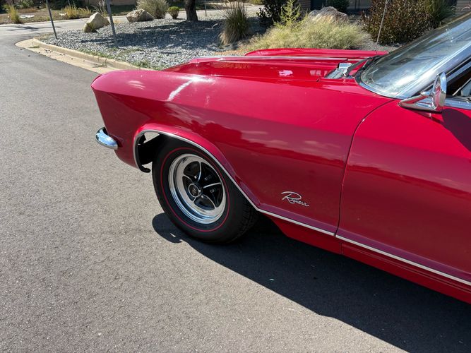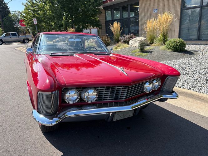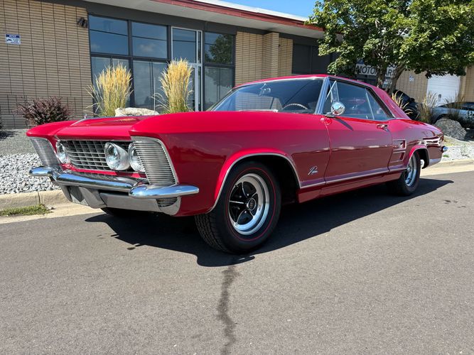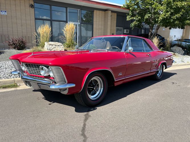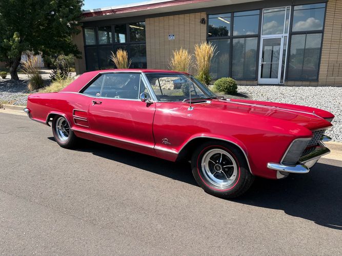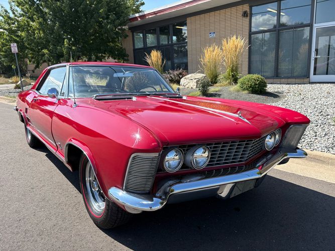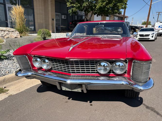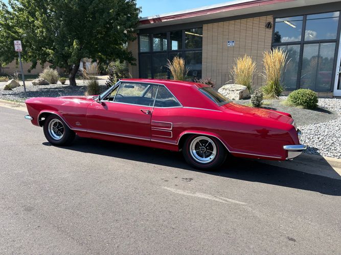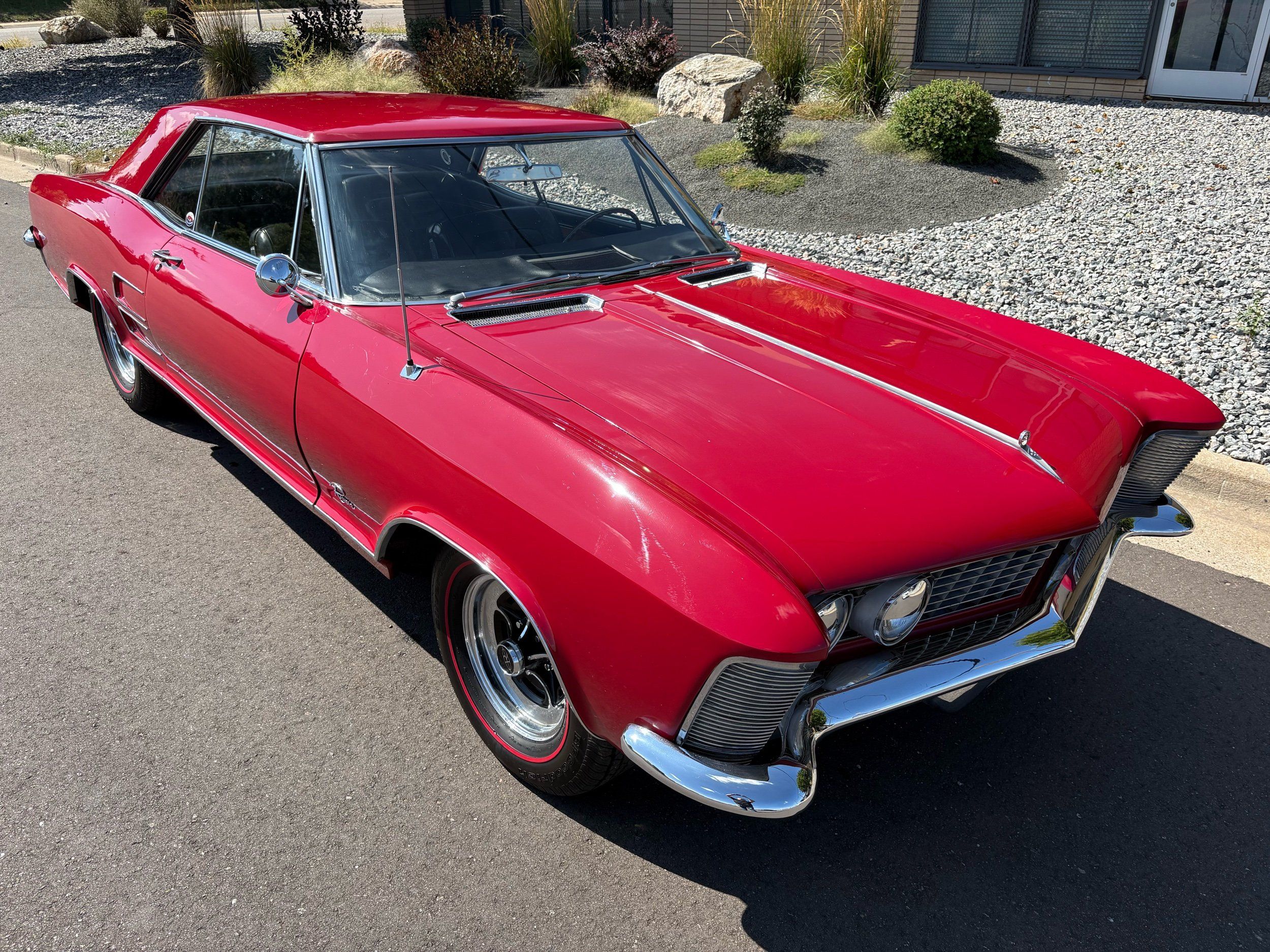 1964 Buick riviera coupe finished in red exterior over black leather interior. The exterior is in very nice condition with a few rock chips from use over the years, but overall very clean. This car looks to have been repainted at some point in its life and still shows very well. There is a little bit of pitting on some of the chrome on the exterior of the vehicle, see all the photos for more detail. The interior is in very nice condition. There’s a couple little wear spots on the leather right where you get in and out on the seats but overall very nice condition for the age and looks to be pretty stock and it might have had the upholstery redone at one point. The car fires right up & runs out good plus drives well and would be a blast to take to any cruise night. The only thing that we have found that isn’t working is the speedometer does not work and the power windows do not work, but we have the car priced accordingly. Call Weisco motorcars for additional information or to schedule an appointment time to view the vehicle in person.