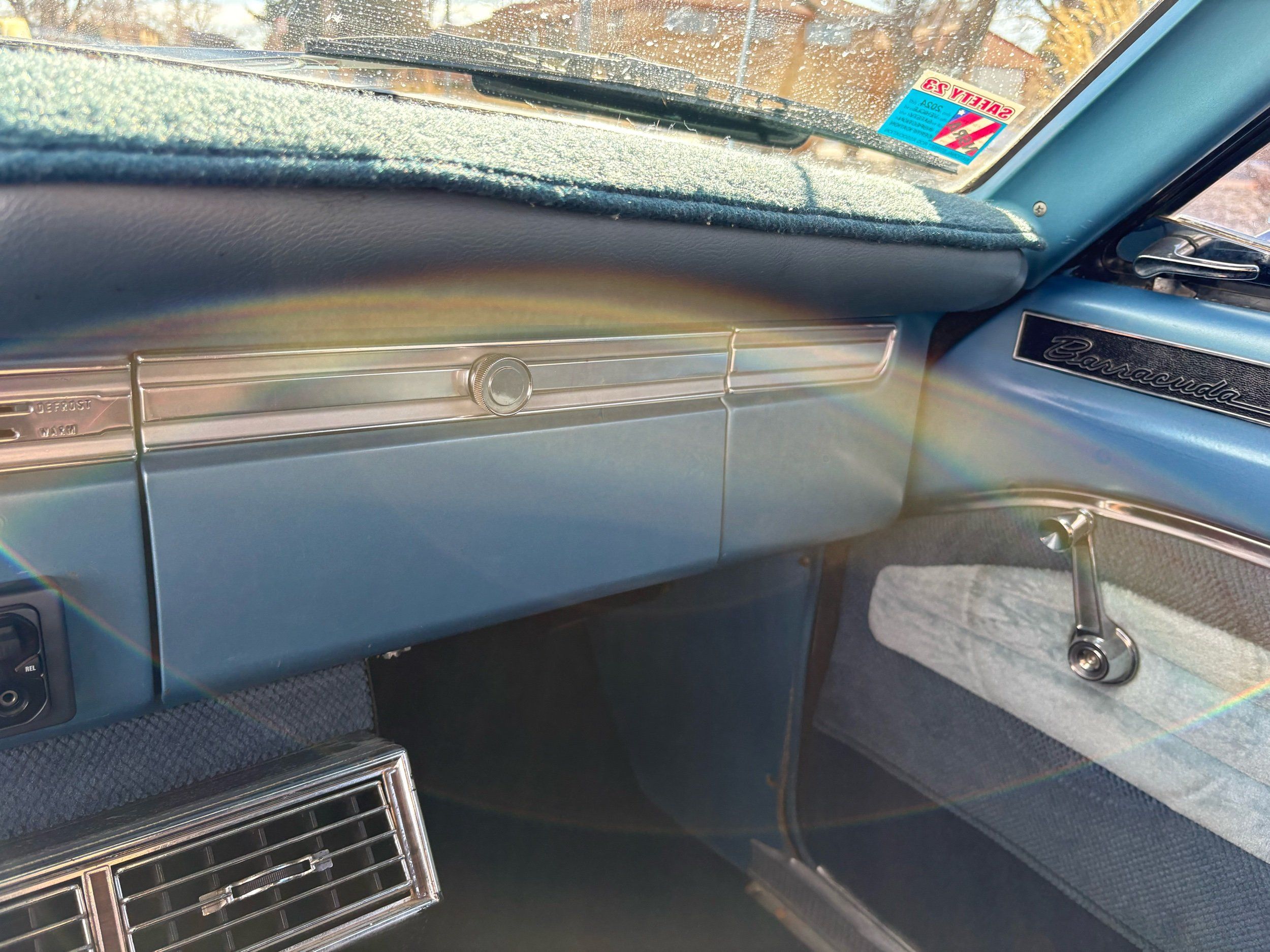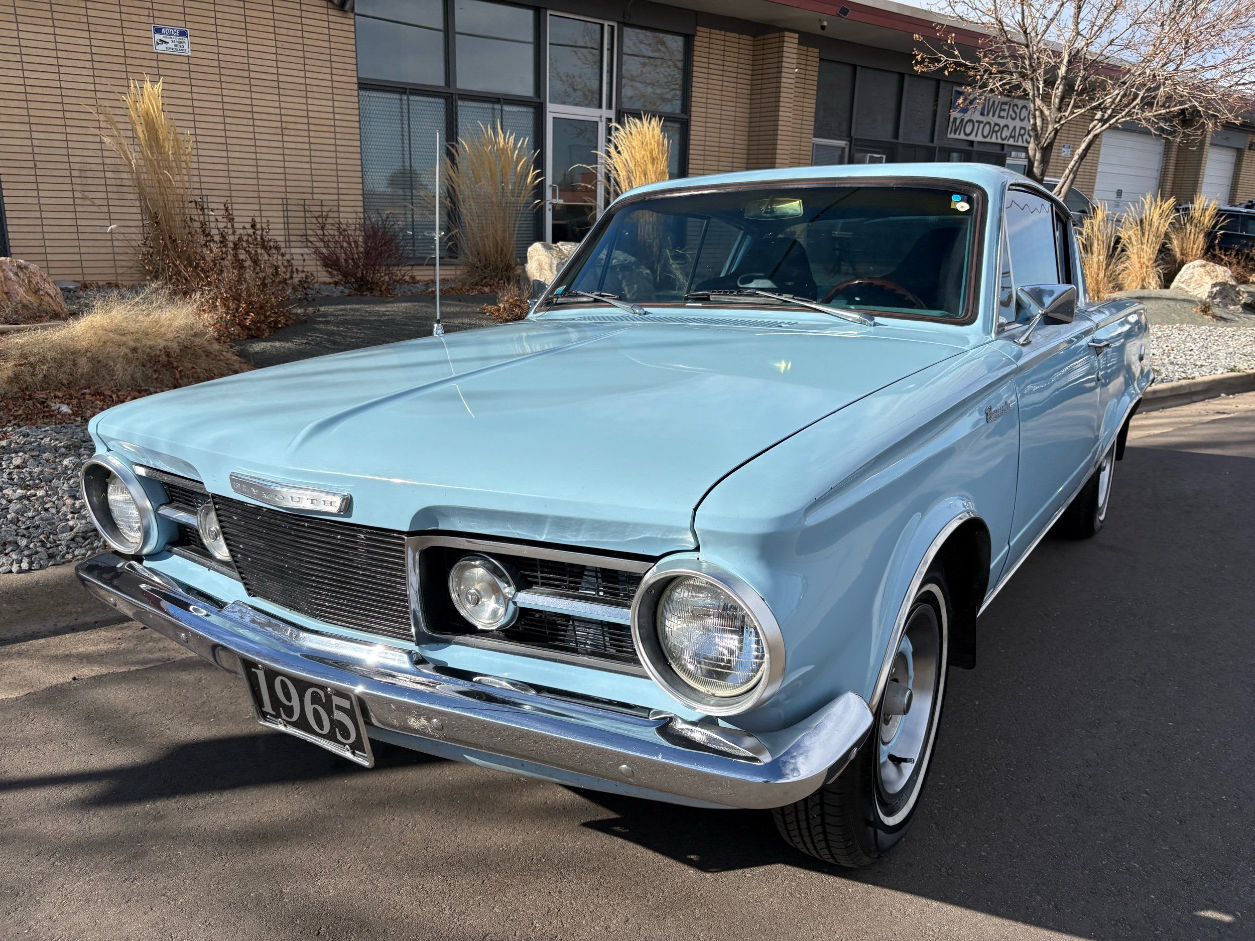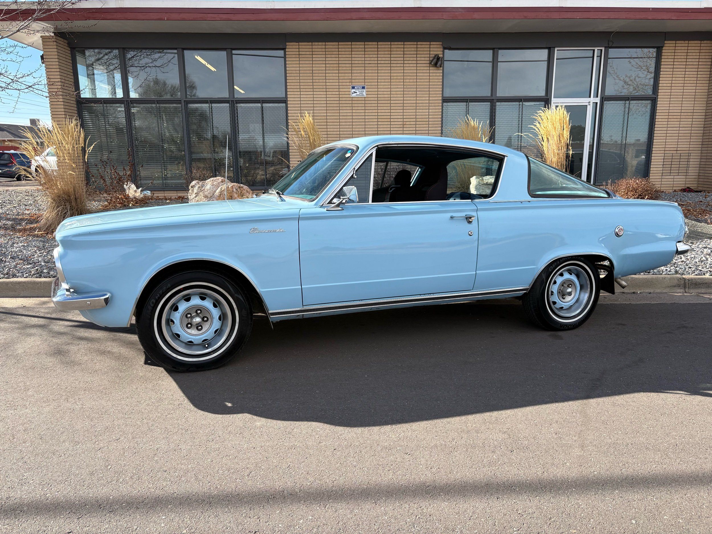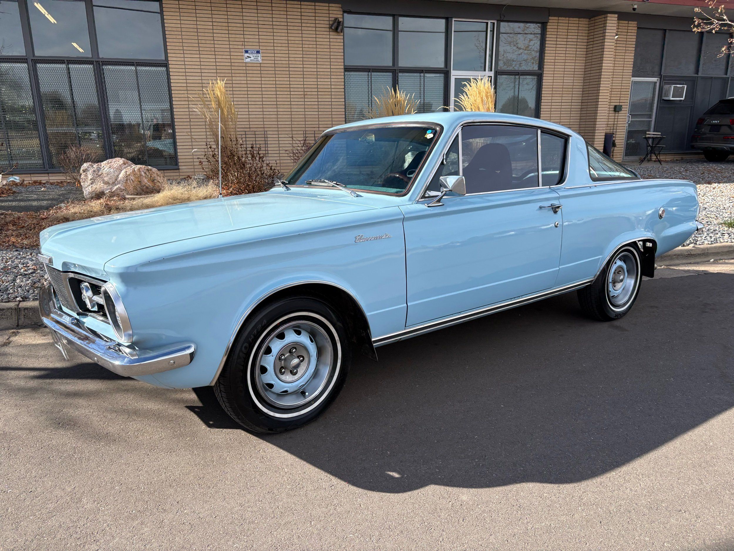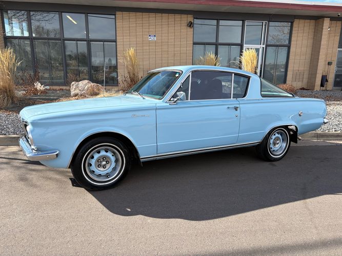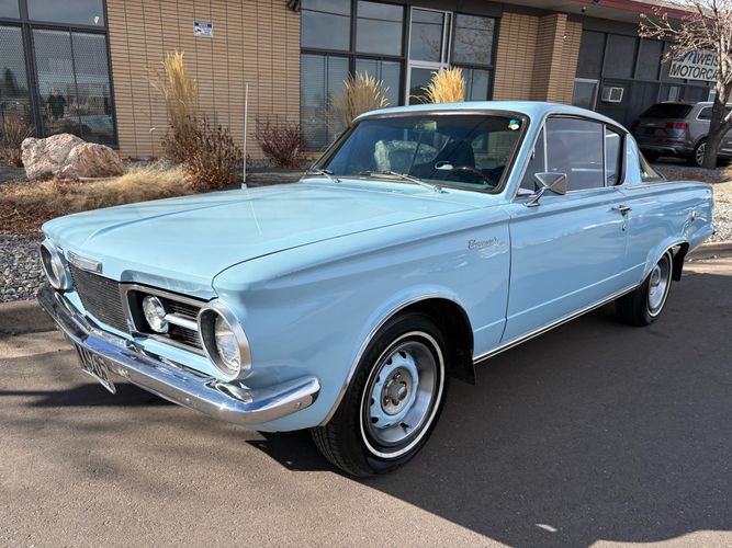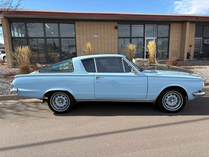 1965 Plymouth Barracuda coupe done in Blue over Blue cloth. Has the factory 225CI slant-6 with a 4-speed and is very fun to drive. The body and paint look very good and only has one very small rust spot and gets lots of thumbs up when you’re driving it. The inside is also clean and has upgraded black racking seats up front and has the rear seat that folds down to make it look like a two seater. Pop the hood open and find the factory slant-6 with lots of nice chrome and runs out very nice. Call Weisco Motorcars for more info or to set up an appointment time to see in person.