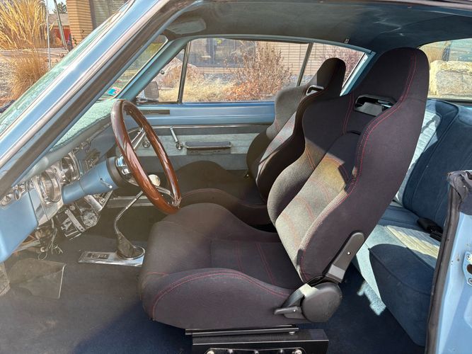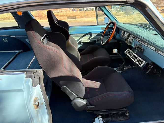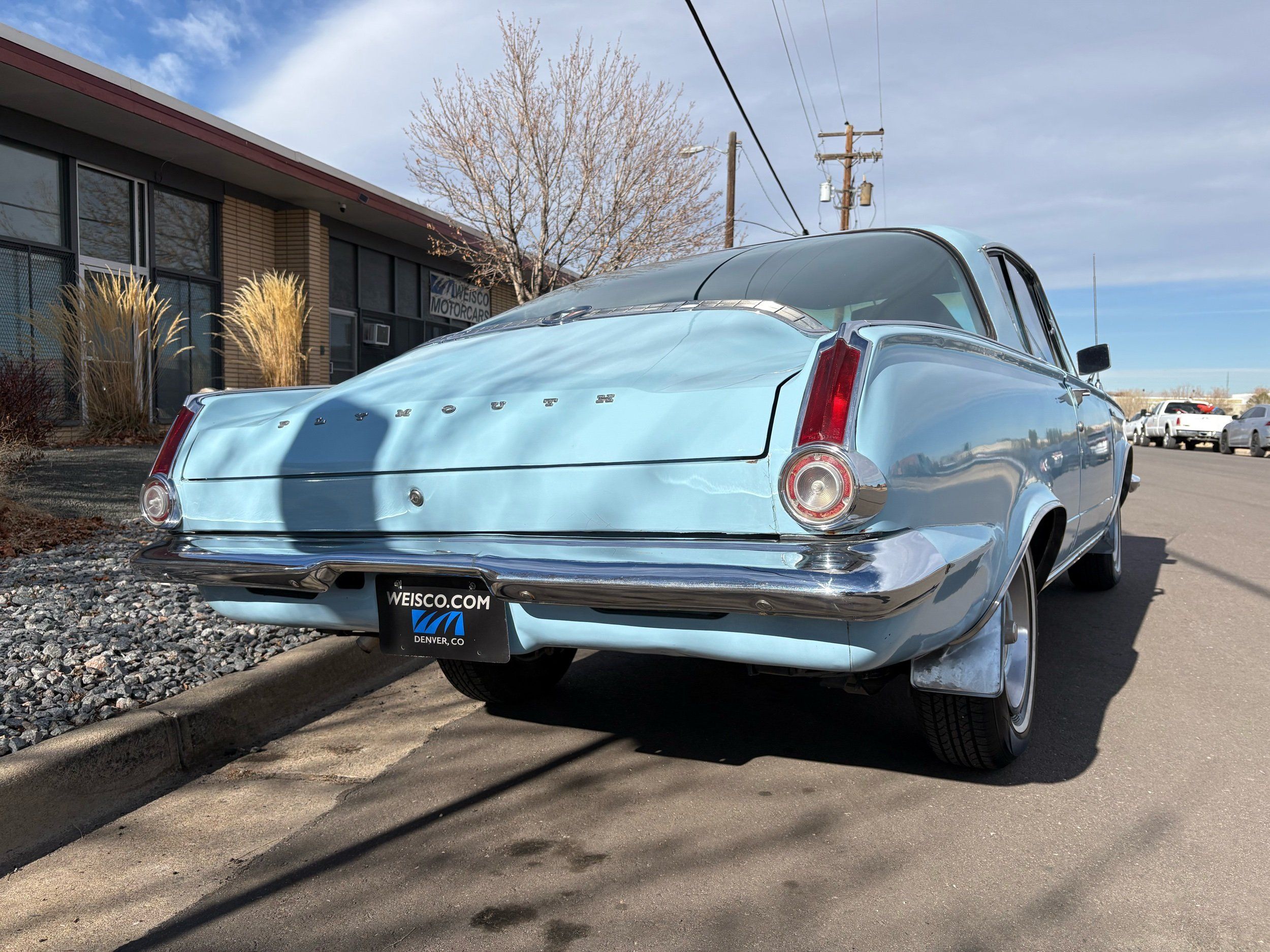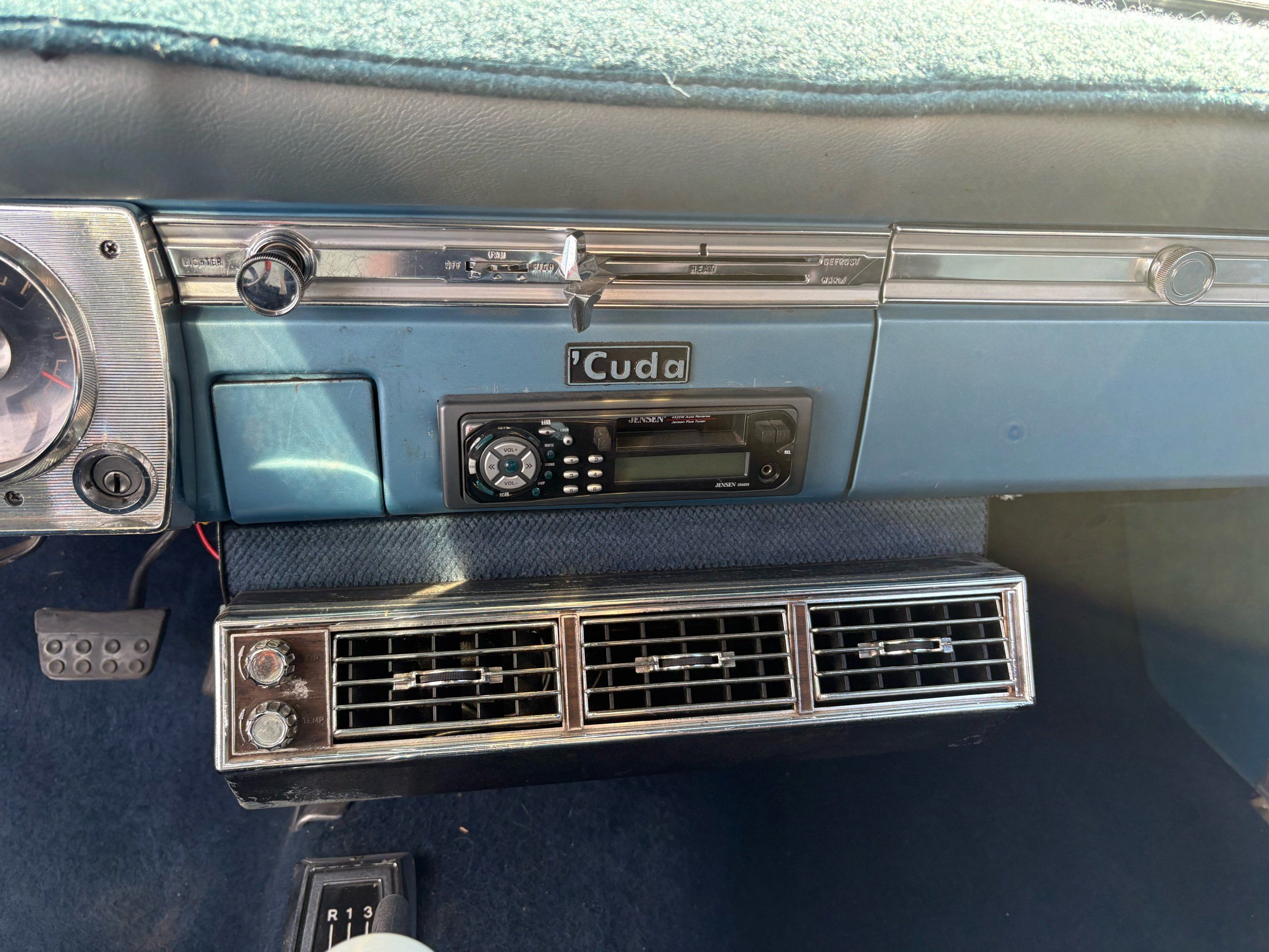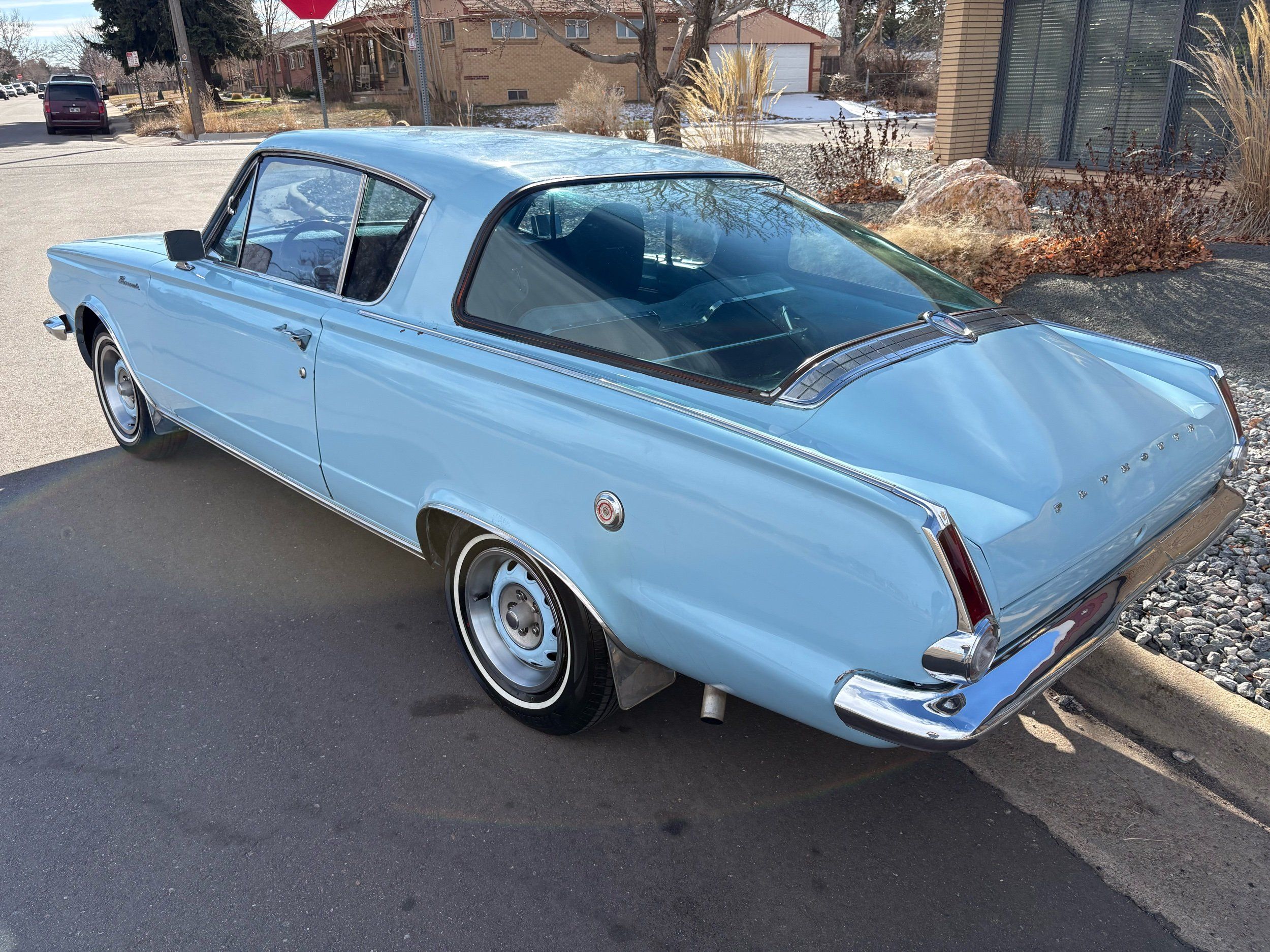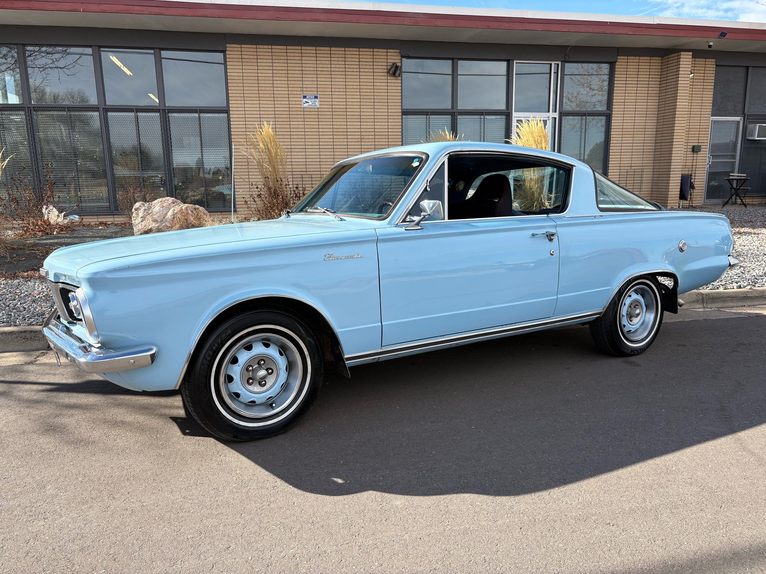 1965 Plymouth Barracuda coupe done in Blue over Blue cloth. Has the factory 225CI slant-6 with a 4-speed and is very fun to drive. The body and paint look very good and only has one very small rust spot and gets lots of thumbs up when you’re driving it. The inside is also clean and has upgraded black racking seats up front and has the rear seat that folds down to make it look like a two seater. Pop the hood open and find the factory slant-6 with lots of nice chrome and runs out very nice. Call Weisco Motorcars for more info or to set up an appointment time to see in person.