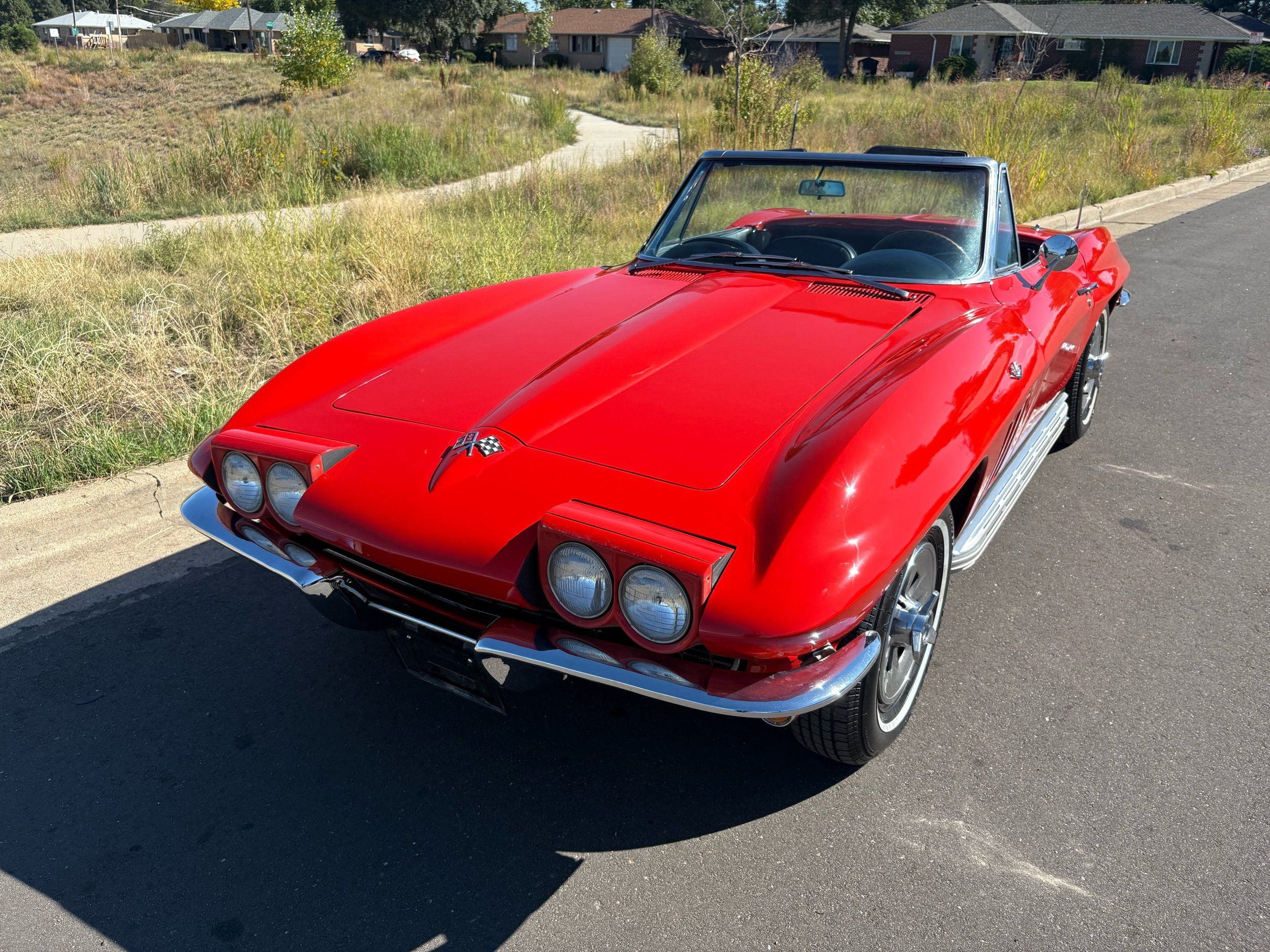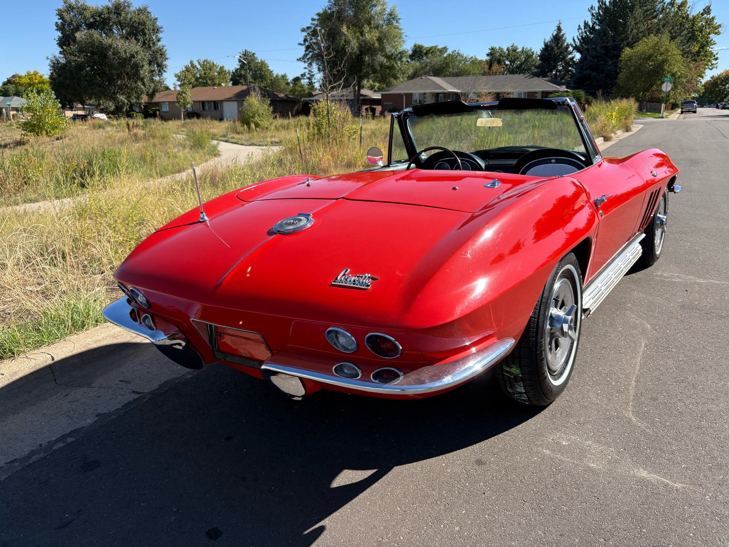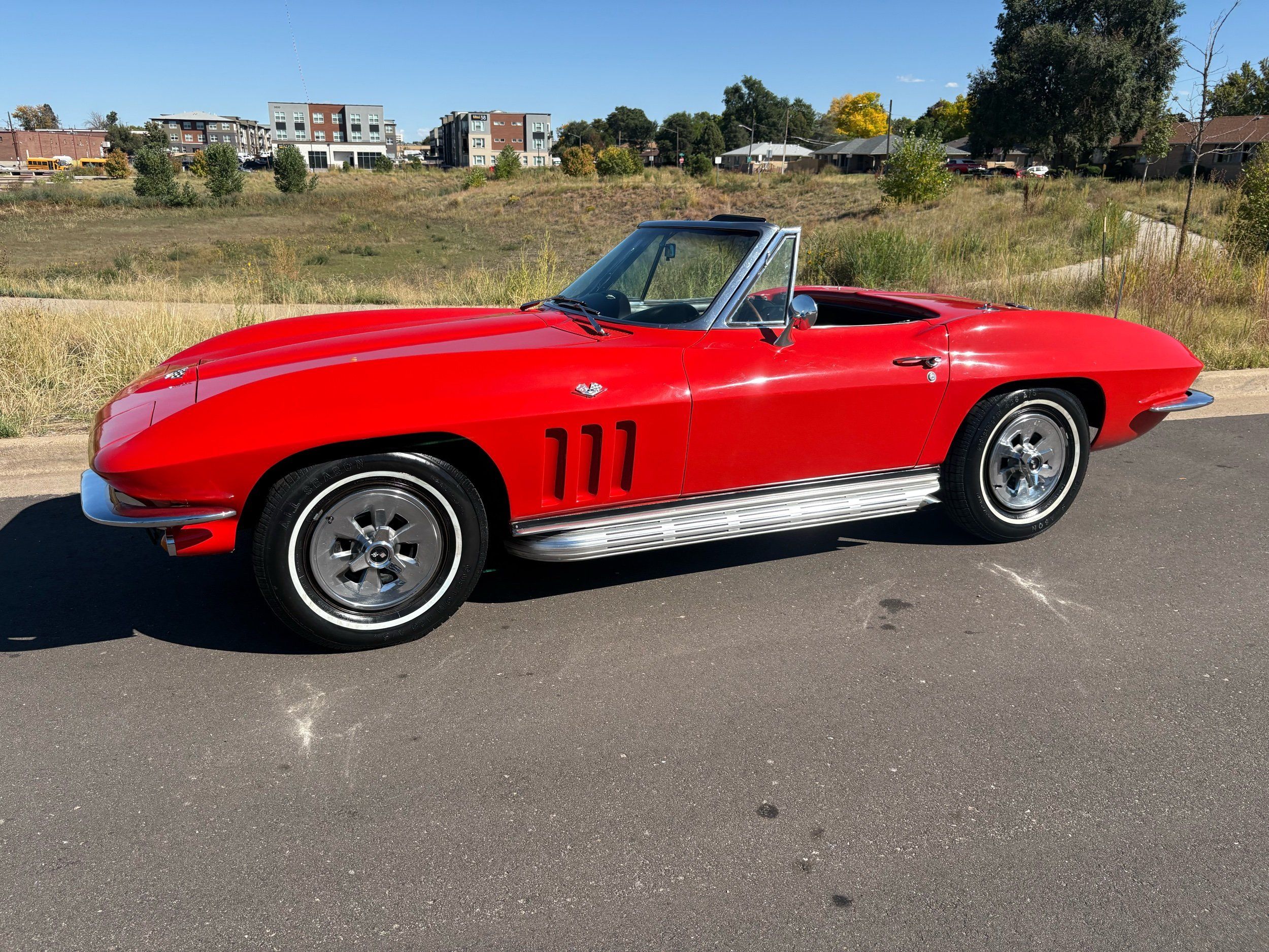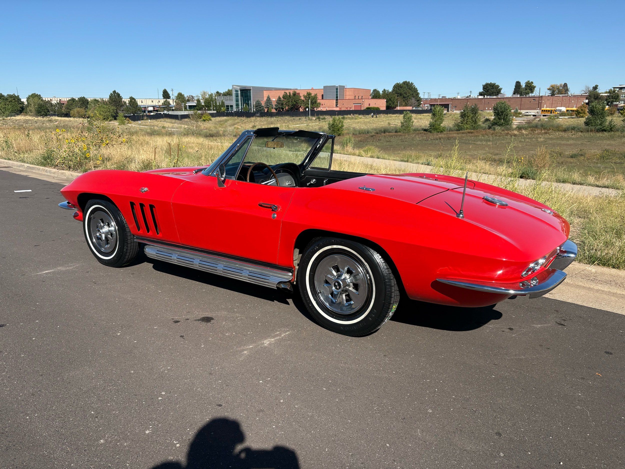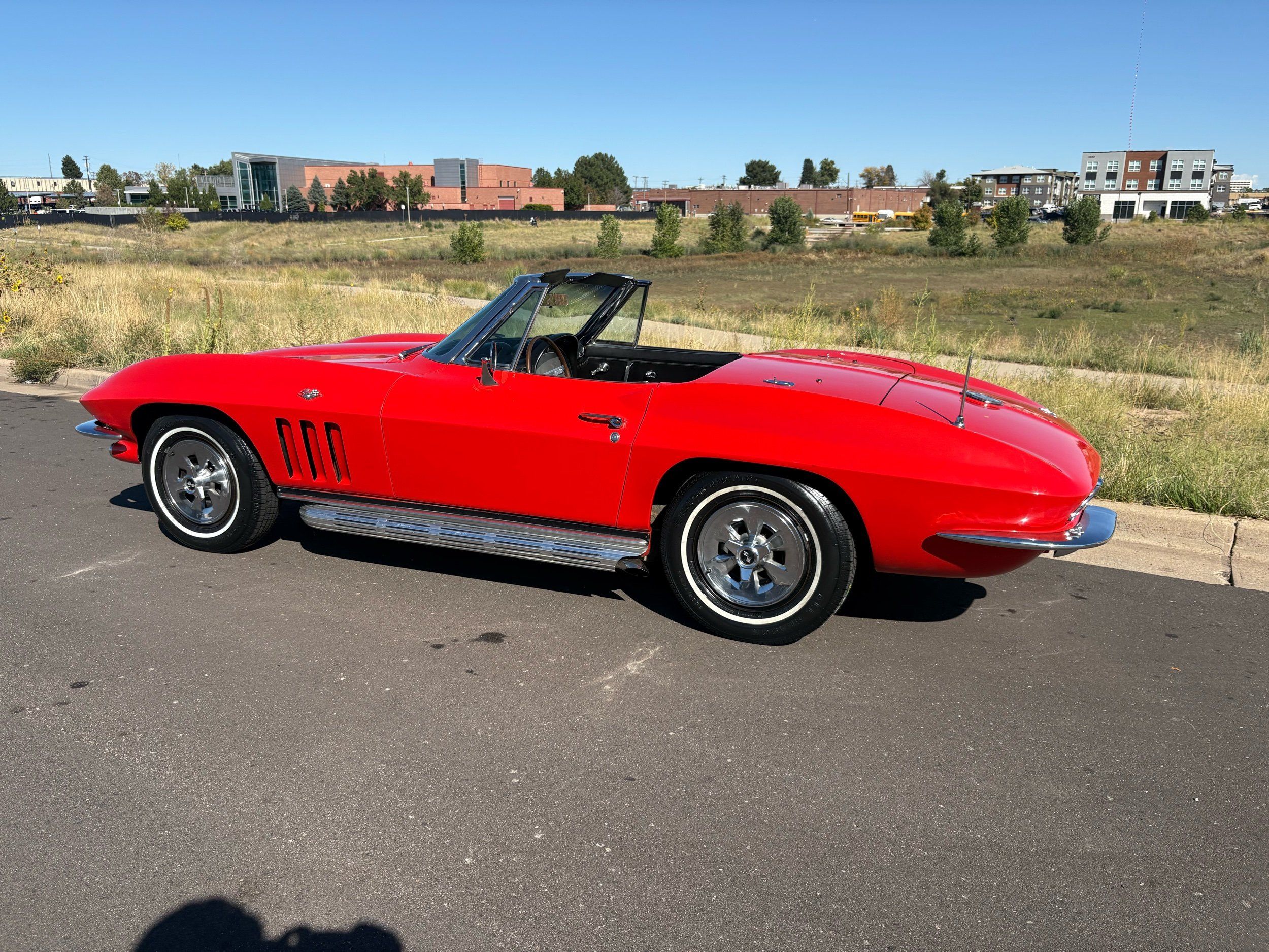 1966 Chevy Corvette stingray convertible very hard to find L79 350HP 327 with 4-speed. This Corvette convertible is finished in red exterior with a black soft top and looks good with the factory side pipes. This particular Corvette has a date code correct motor, but the block has been decked when it was rebuilt so it is a non-numbers matching. The interior is finished in black leather and is an amazing condition and has a brand new soft top. The exterior is also, in very nice condition and appears to not have ever had any collision damage as all the bonding strips are in place like they should be from the factory. We just had the car looked over and mechanically it is sound and ready for the new owner and got brand new tires installed. Call Weisco Motorcars for additional information or to schedule an appointment time to view the vehicle in person.