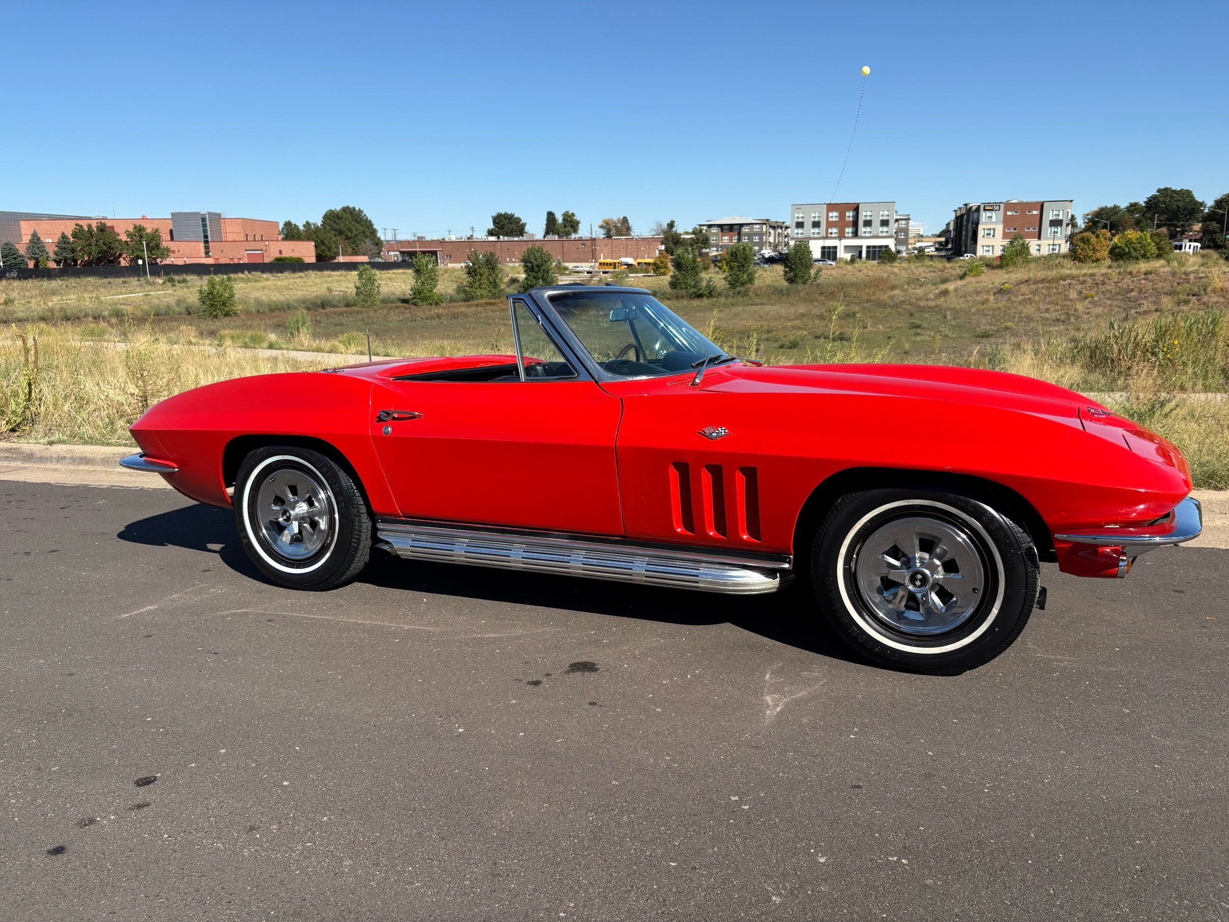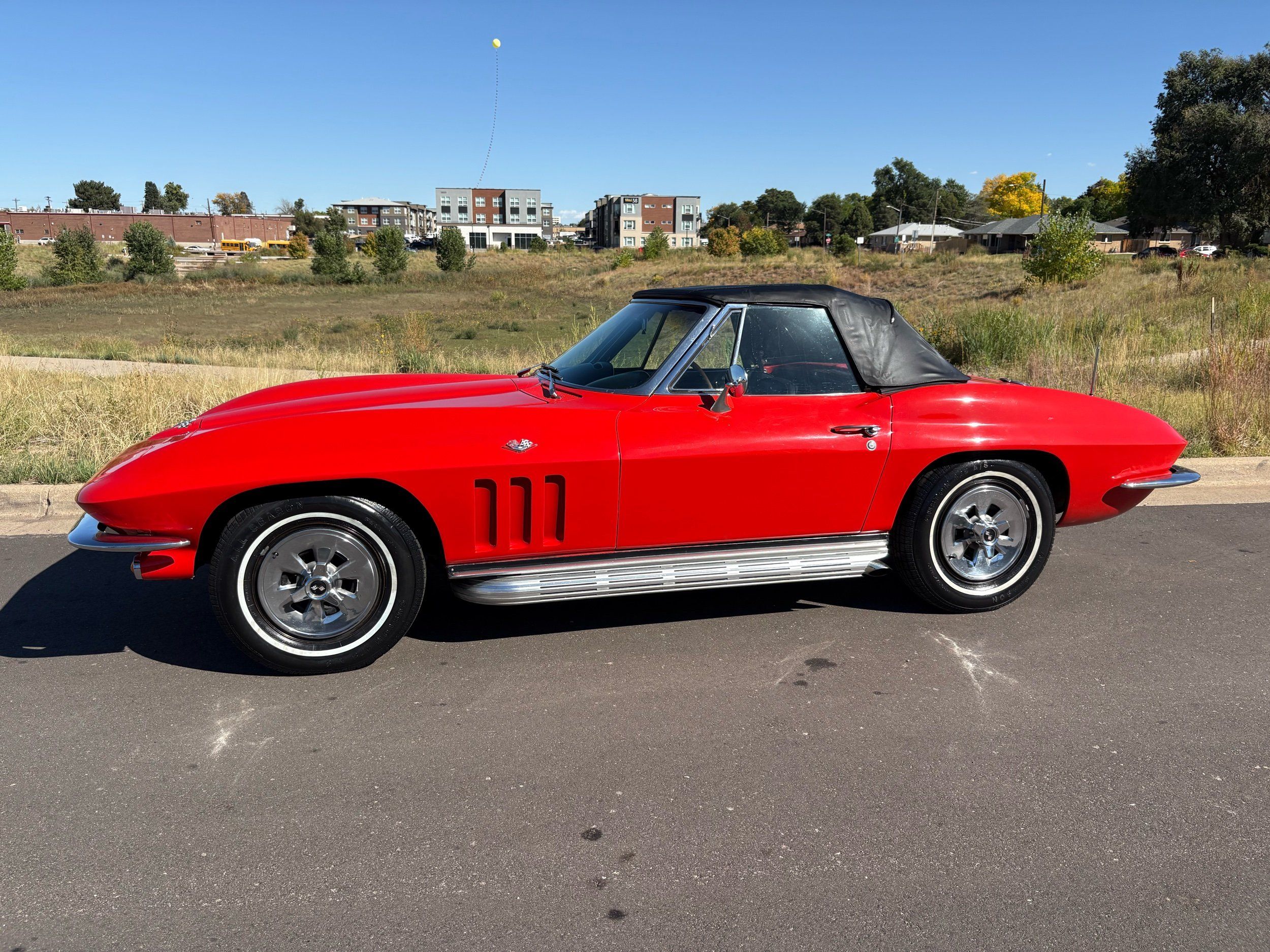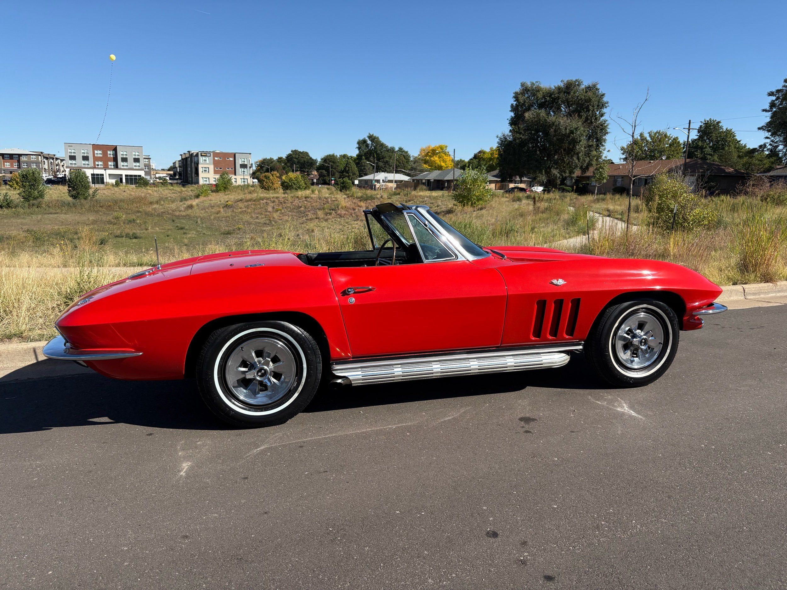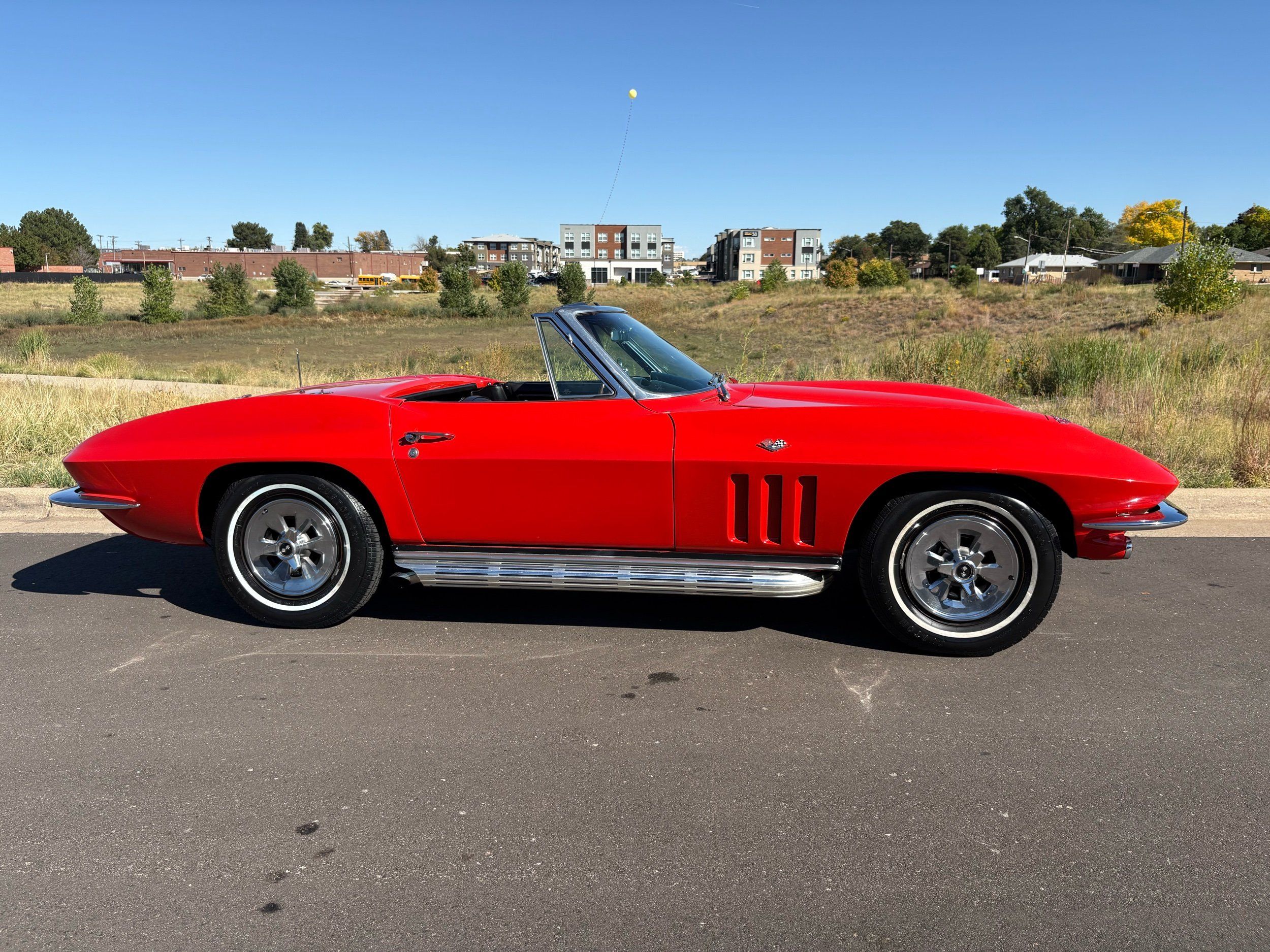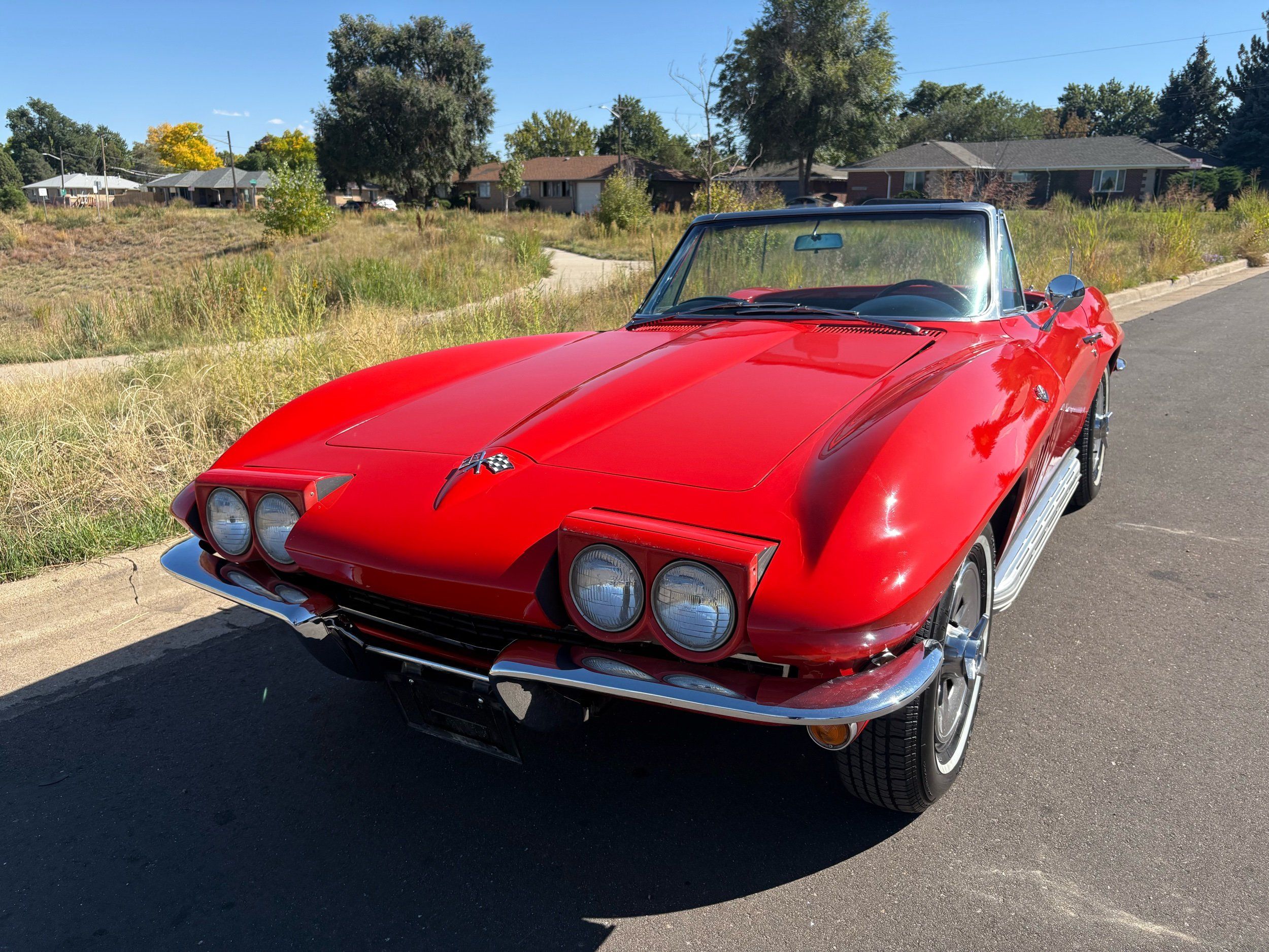 1966 Chevy Corvette stingray convertible very hard to find L79 350HP 327 with 4-speed. This Corvette convertible is finished in red exterior with a black soft top and looks good with the factory side pipes. This particular Corvette has a date code correct motor, but the block has been decked when it was rebuilt so it is a non-numbers matching. The interior is finished in black leather and is an amazing condition and has a brand new soft top. The exterior is also, in very nice condition and appears to not have ever had any collision damage as all the bonding strips are in place like they should be from the factory. We just had the car looked over and mechanically it is sound and ready for the new owner and got brand new tires installed. Call Weisco Motorcars for additional information or to schedule an appointment time to view the vehicle in person.