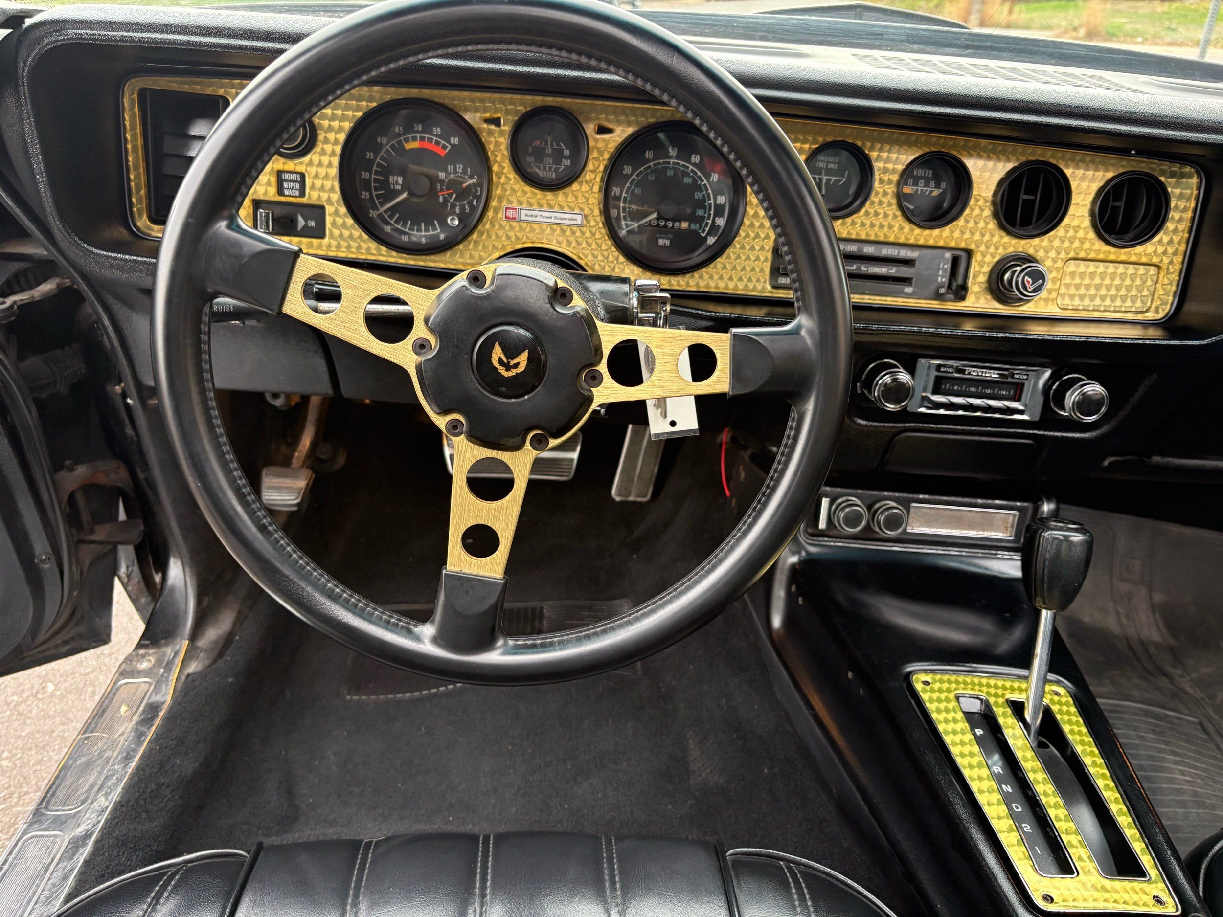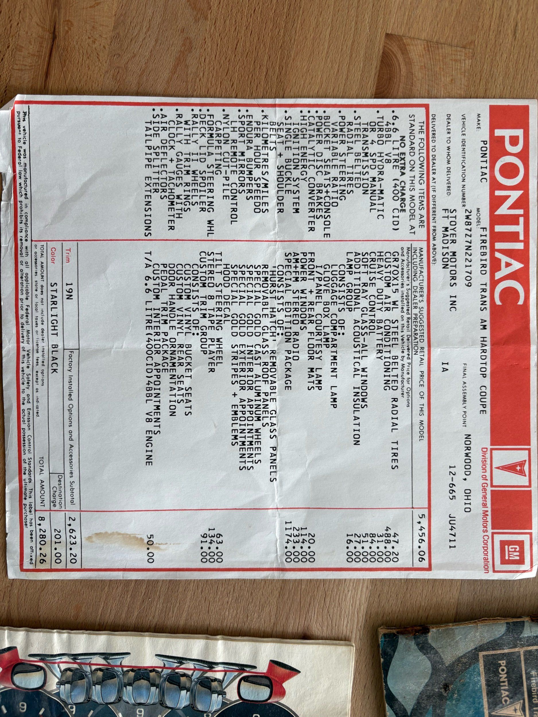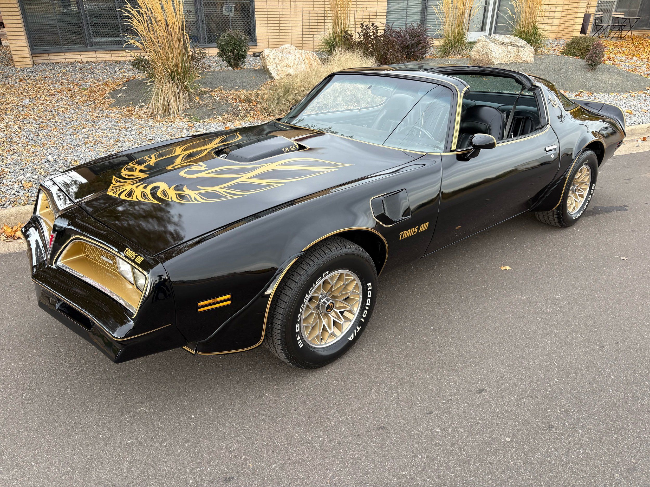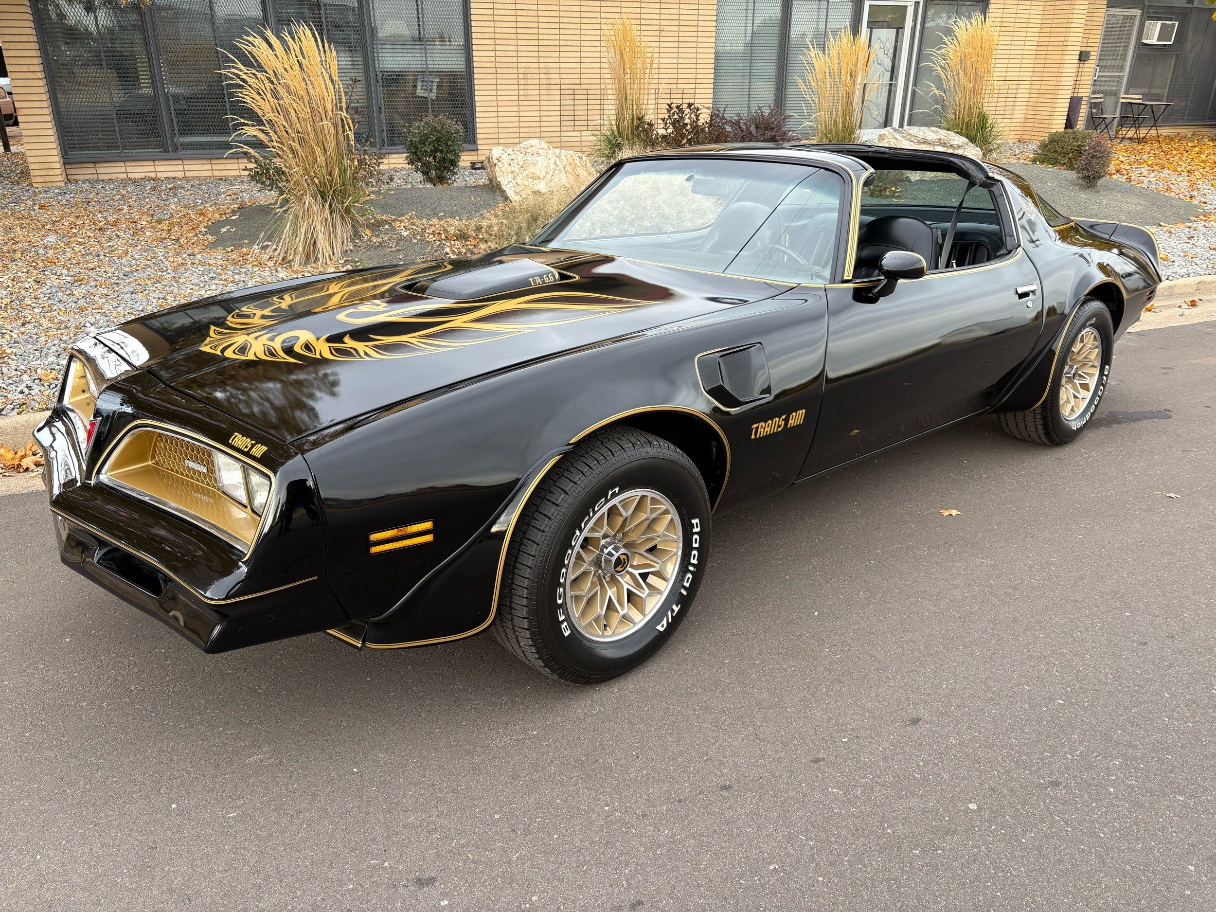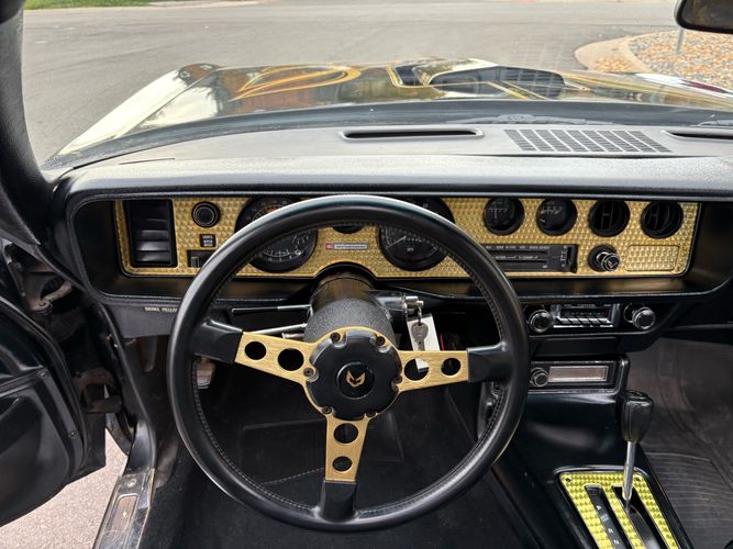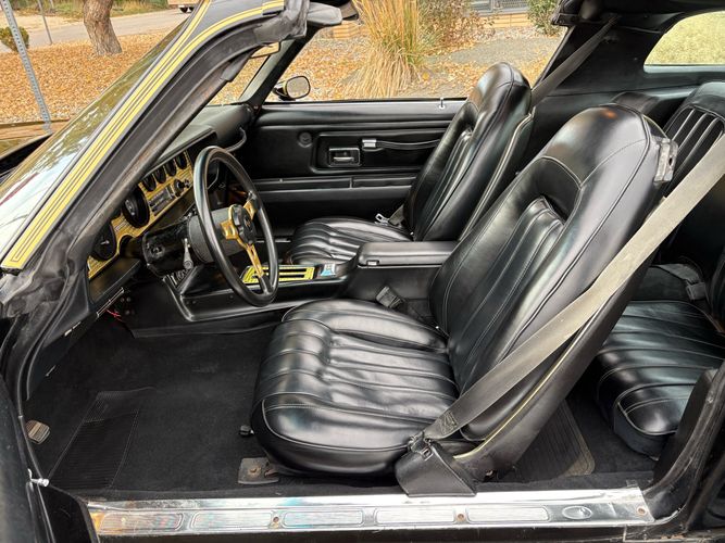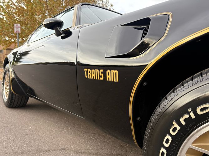 The one you have been looking for 1977 Pontiac Trans Am Y-82 package with T-top’s finished in Black over Black. Has the 6.6L 400CI V8 with factory 3-speed automatic. Has the factory W72 performance package with factory power disc brakes. This is the SE special edition package car with the gold stripes and gold accents on the inside as well as gold aluminum wheels. This car is just recently undergone an extensive restoration with fresh repaint, as well as a lot of refreshing on a lot of of the interior and engine components on this vehicle and it runs out amazingly well. Also has factory options like: power windows, deluxe front seats, AM/FM radio with 8-track player, tilt steering wheel and A/C. The exterior of the vehicle is absolutely an amazing condition. The black paint is flawless and looks like a mirror with the gold accents and the gold bird on the hood. Has brand new tires and this car is ready to go. The interior is also in very nice condition with black leather seats, black carpeting with floor mats and everything is working condition. This car had an original MSRP of $8280.26 and will come with a copy of its original window sticker as well as all of the owners manuals and original build sheet for the car. Call Weisco Motoraces for additional information or to schedule an appointment time to view the vehicle in person.