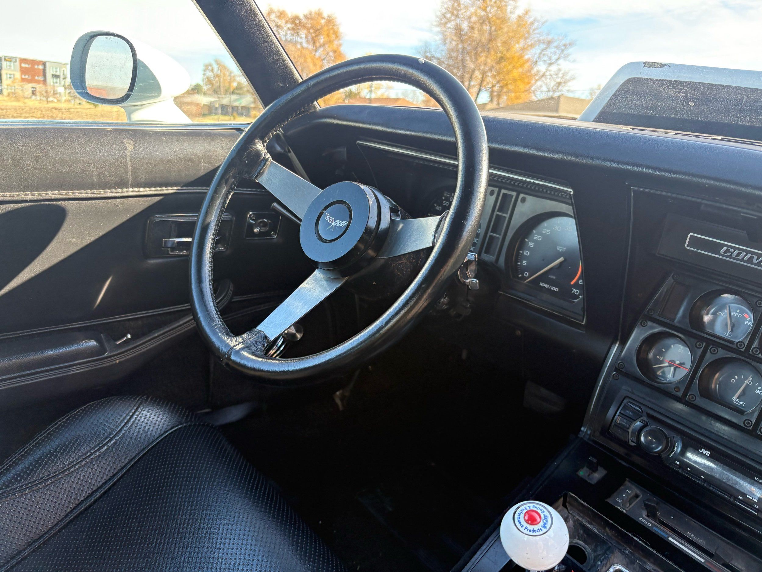 1979 Chevy Corvette coupe done in white over Black Interor. This Corvette has been custom built to be used as more of a we can track Car for drag racing. Has a built small block 350 with a mild cam, gear drive, upgraded carburetor, nitrous and much more. The body and paint are in decent condition. There are a few little nicks and scratches in the paint from use over the years. The interior has custom receipts as well as a custom race shifter. It will be sold exempt on the miles due to the fact that the gauges are not currently working, so there’s no way to know if that’s actual mileage on the car. Call Weisco motorcars for additional information or to schedule an appointment time to view the vehicle in person.