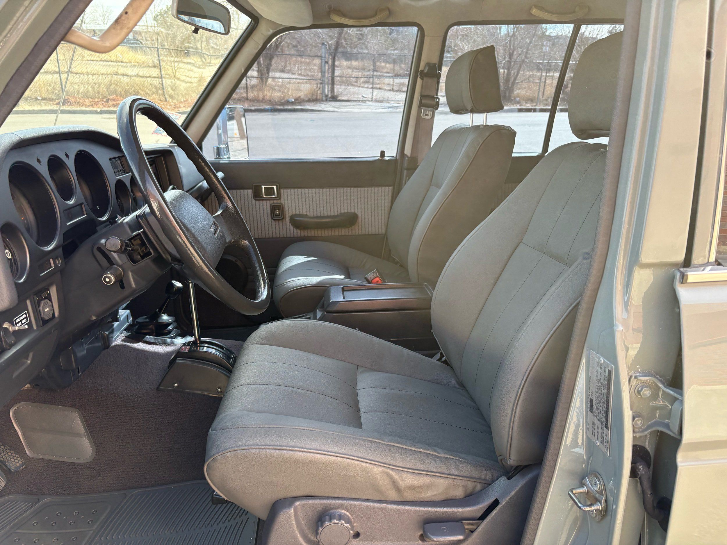 1988 Toyota Land Cruiser ready for off-road summer trips. Done in Gray over Gray leather seats. This has had lots of work done with in the past 20k miles. Work done Heated seats w/Newer seat upholster, Radiator, thermostat, fan clutch, water pump, shocks, tie rod ends, leaf spring bushings, Fuel filter, plugs, wires, cap/rotor, valve adjust, Birfields rebuild/greased/ resealed, Engine Resealed - still needs oil cooler seals but no leaks, Various sensors &pigtails (coolant temp sensors, Throttle position, 02) and new Wheels and tires. This is a rust free body that has been repainted but not the best job but still looks good. There is some small dents and chips from used and may need a new exhaust but did pass E-test in Colorado no problem. The inside is very clean and has upgraded Audio, keyless entry with alarm, and all new leather on the seats. Runs out very nice and fun to drive. Call Weisco Motorcars for more info or to set an appointment time to see in person.
