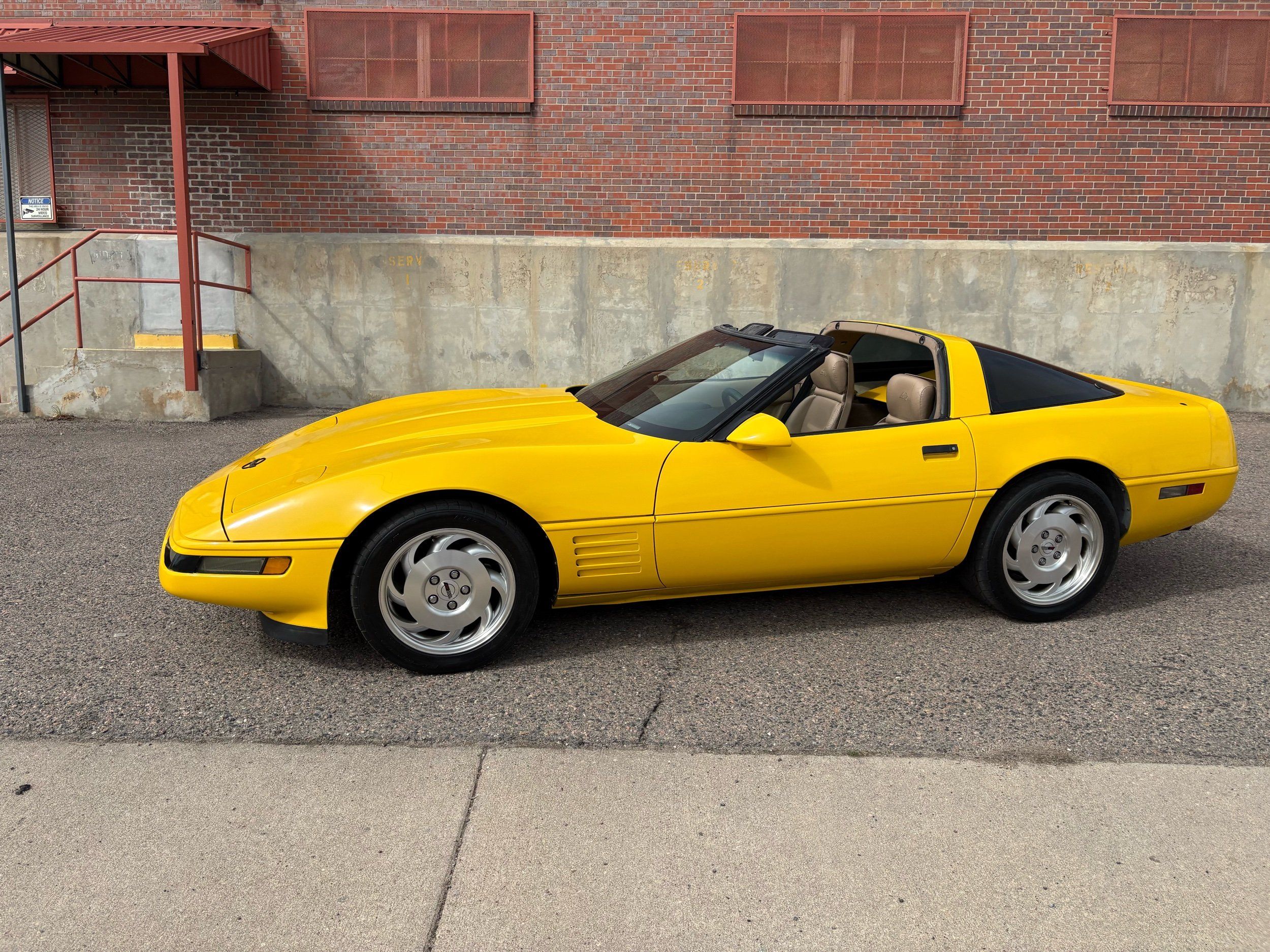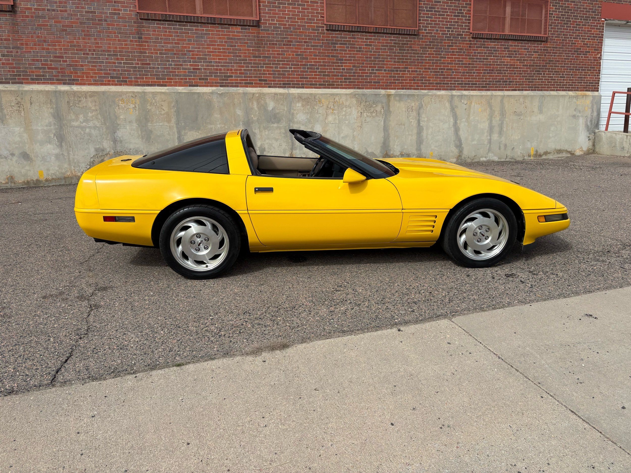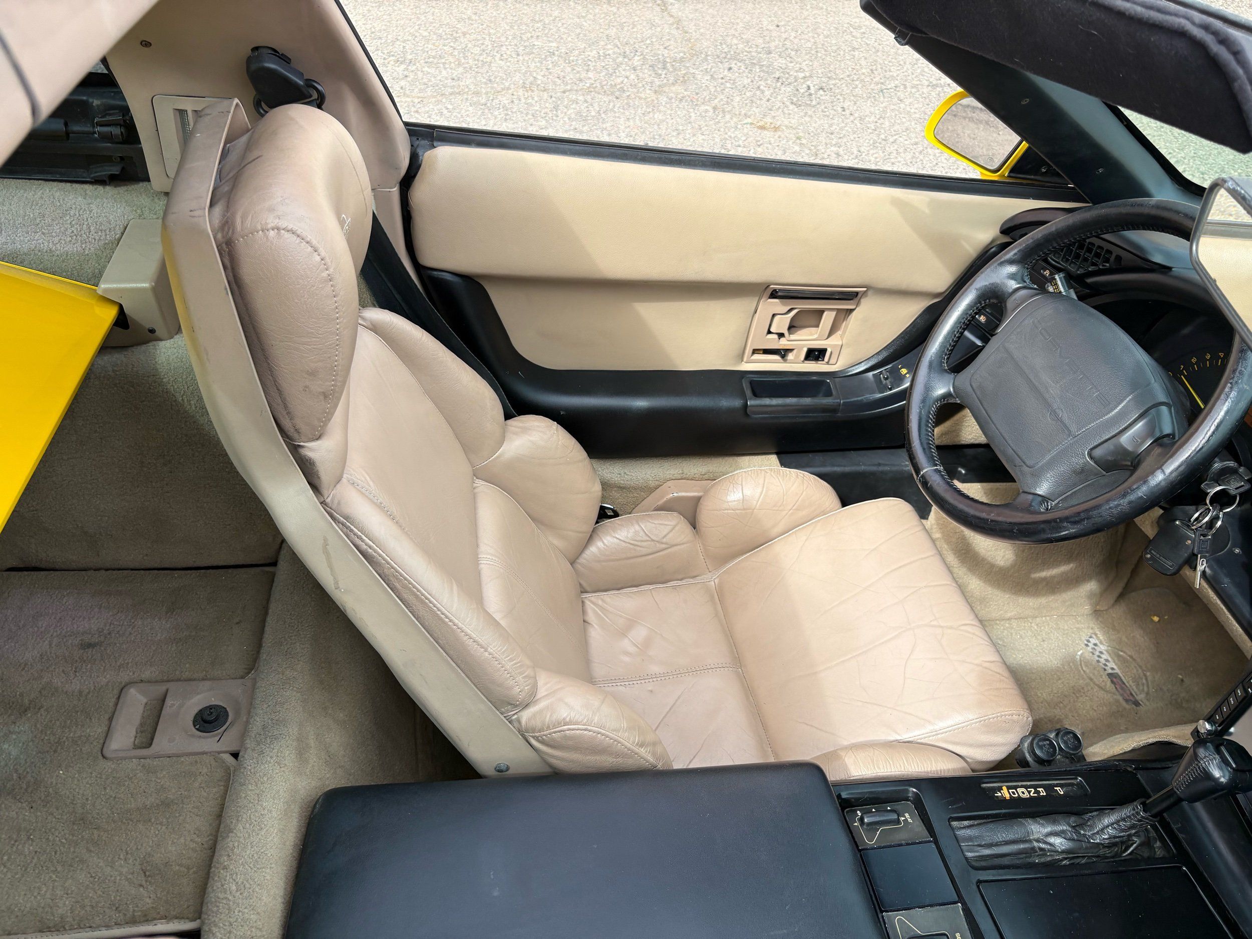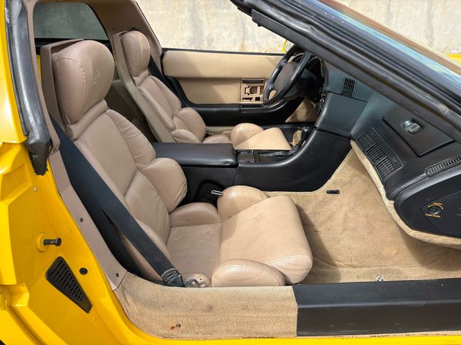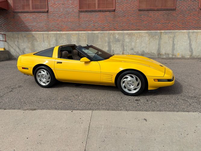 1993 Chevy Corvette coupe done in competition yellow over tan leather. The 1993 Corvette has the LT-1 good for 300HP with an automatic transmission and very fun to drive. The body and paint are in very nice shape with not one chip and gets lots of looks. Has upgraded audio system and also tinted window’s. The inside is clean and has power windows, keyless entry, A/C, targa roof and much more. Call Weisco Motorcars for more info or to set up a time to stop by for a look over this clean Corvette. SUMMER WILL BE HERE SOON BE READY WITH A NEW TOY FOR TOP OFF DRIVING