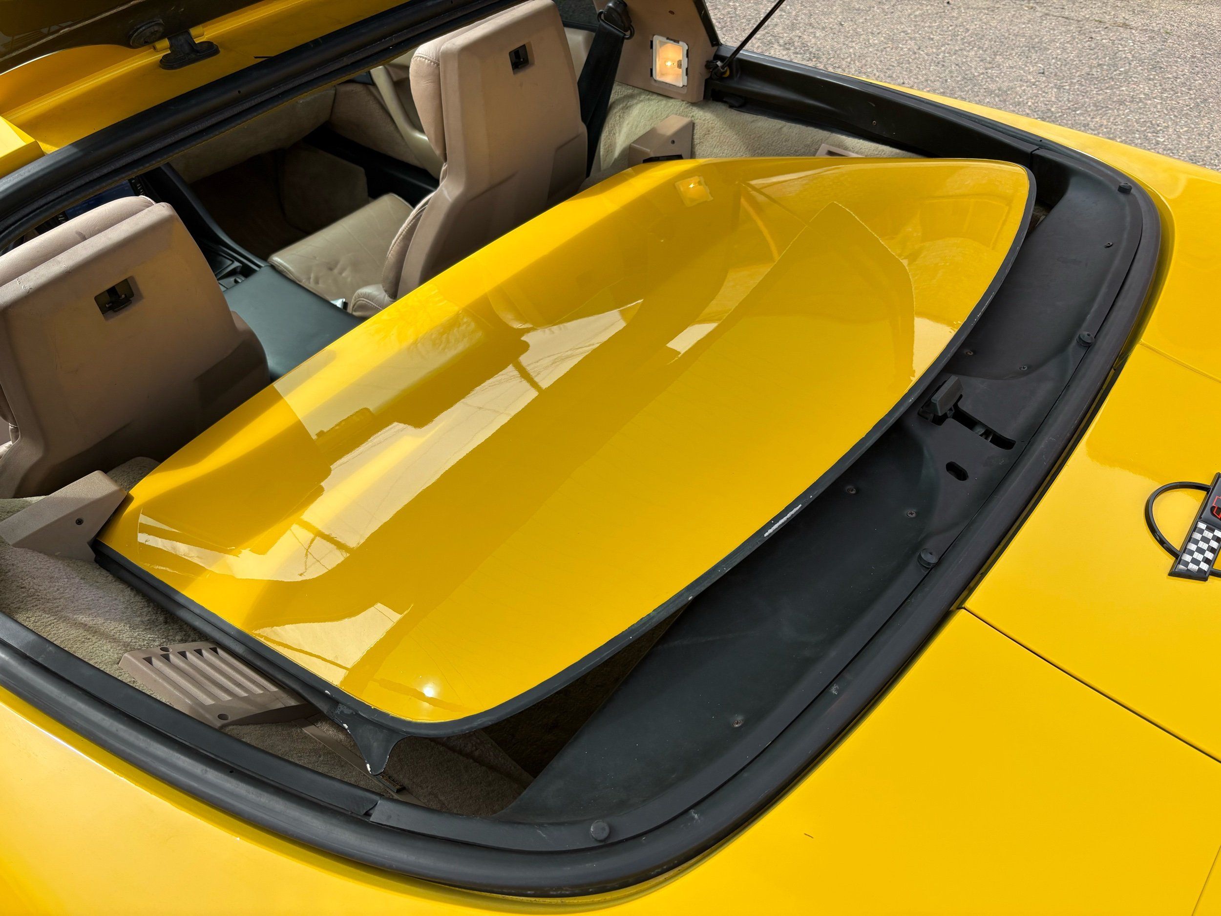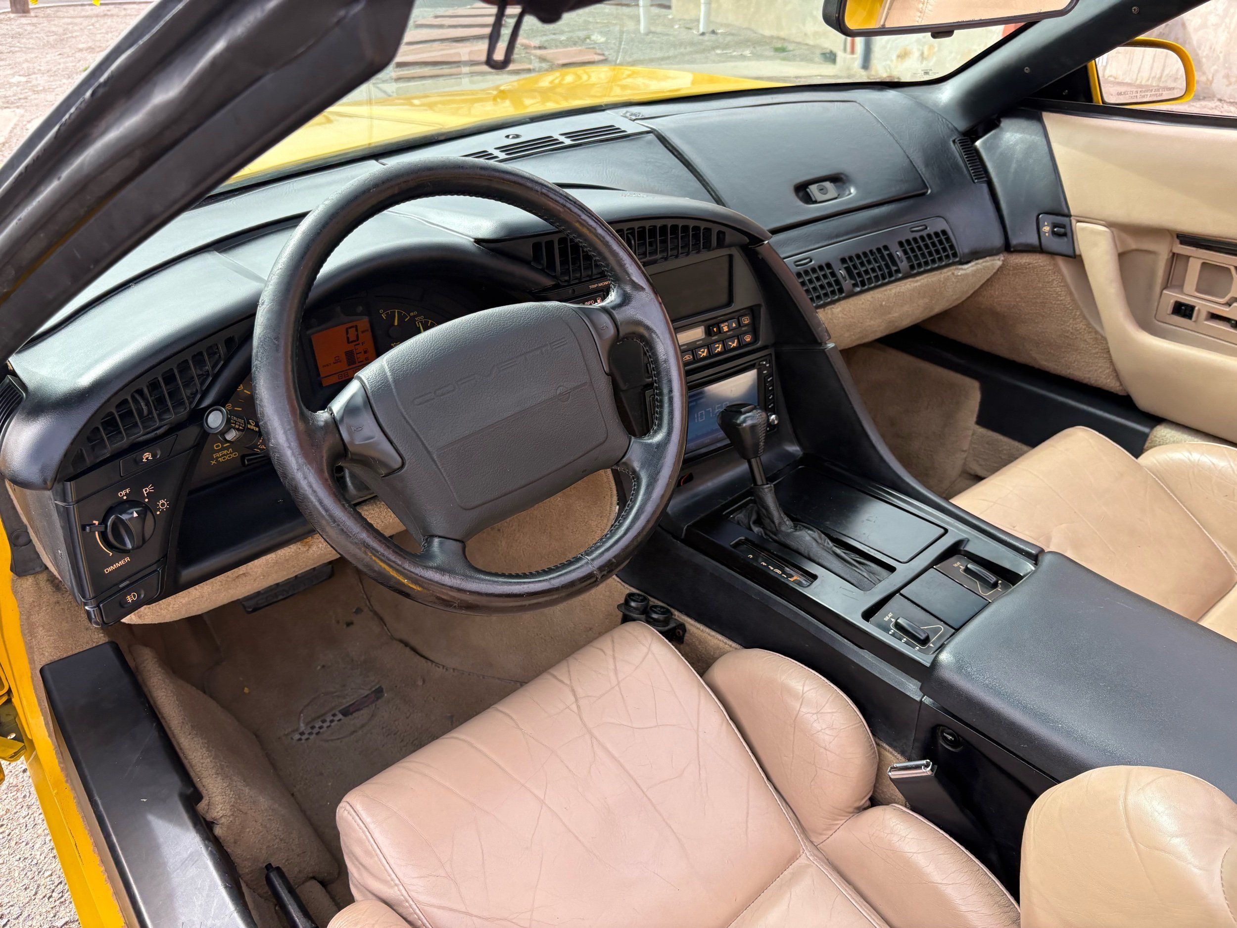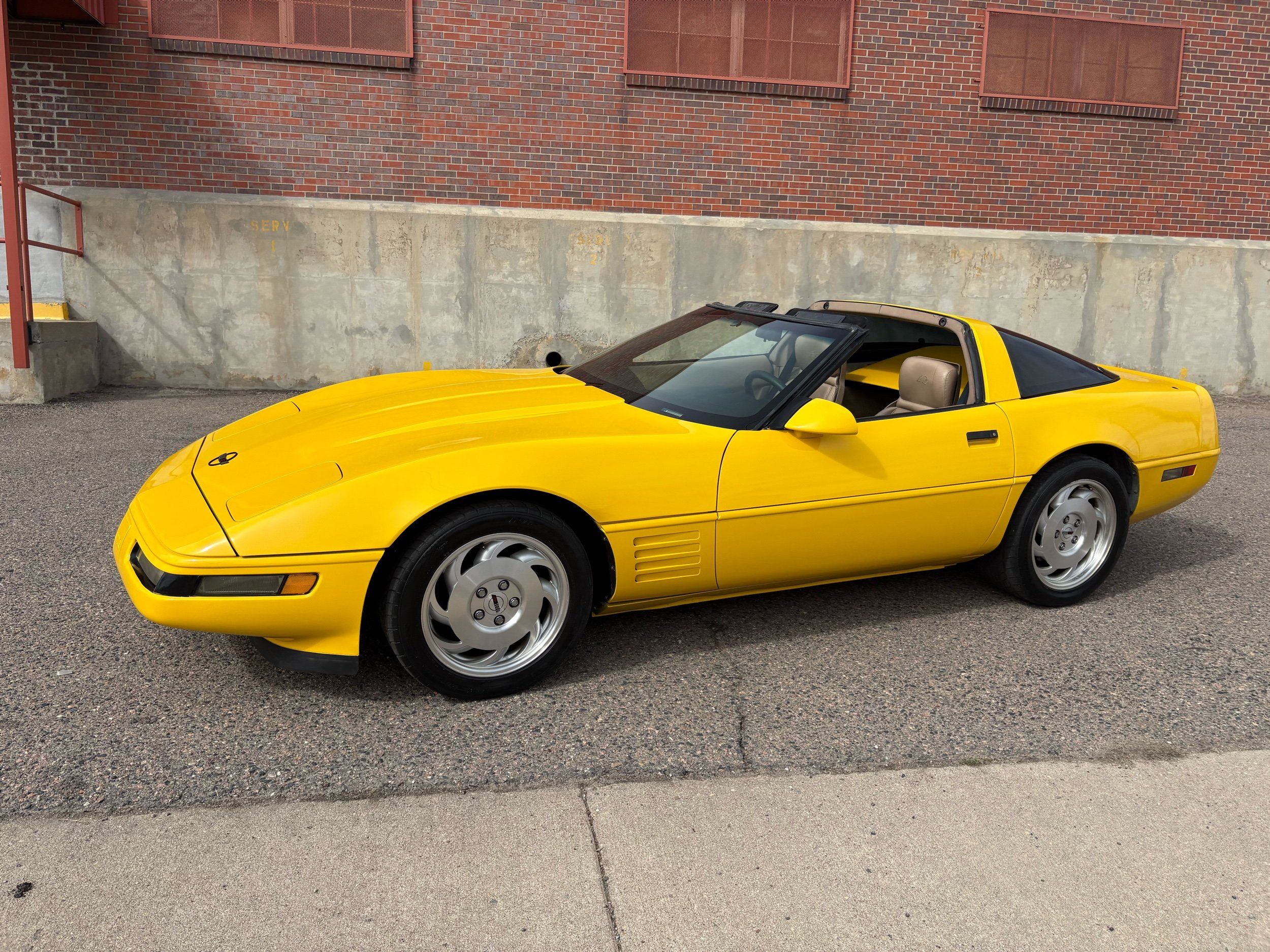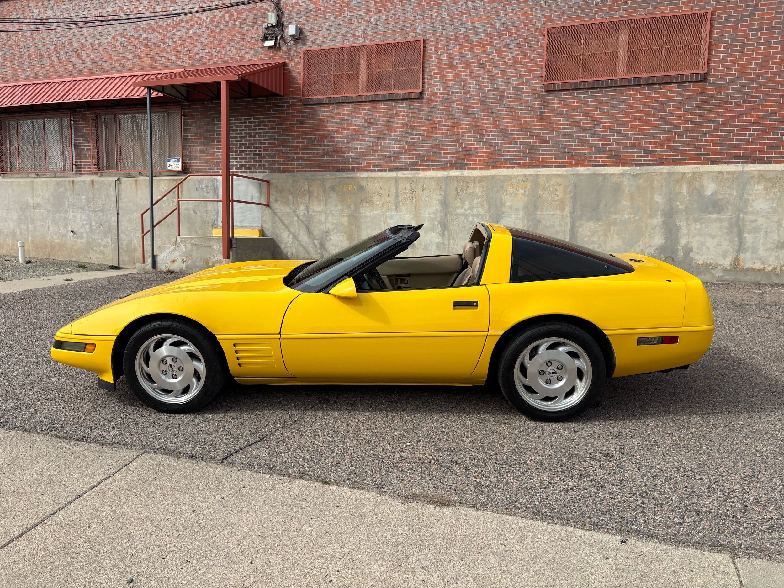 1993 Chevy Corvette coupe done in competition yellow over tan leather. The 1993 Corvette has the LT-1 good for 300HP with an automatic transmission and very fun to drive. The body and paint are in very nice shape with not one chip and gets lots of looks. Has upgraded audio system and also tinted window’s. The inside is clean and has power windows, keyless entry, A/C, targa roof and much more. Call Weisco Motorcars for more info or to set up a time to stop by for a look over this clean Corvette. SUMMER WILL BE HERE SOON BE READY WITH A NEW TOY FOR TOP OFF DRIVING