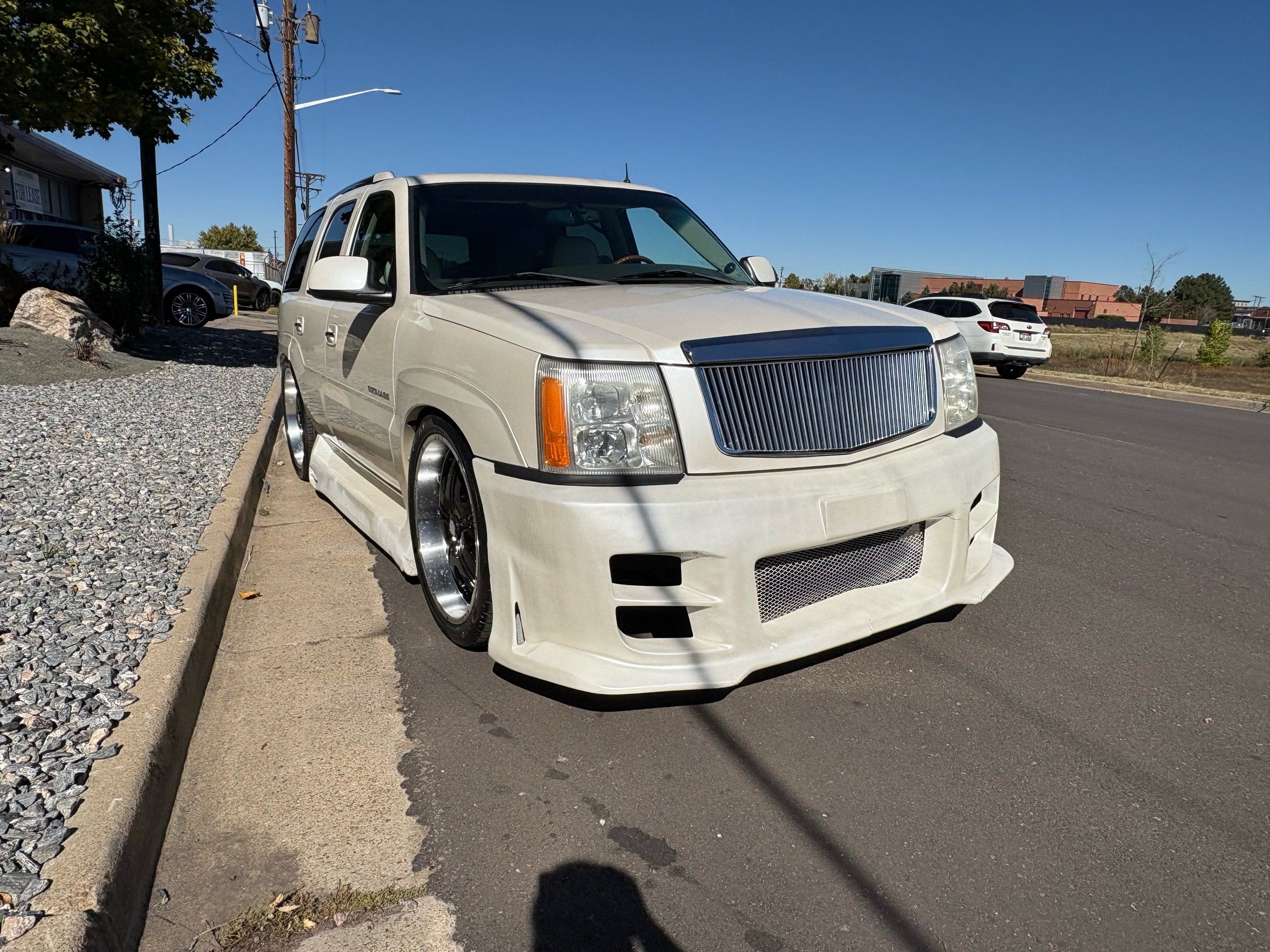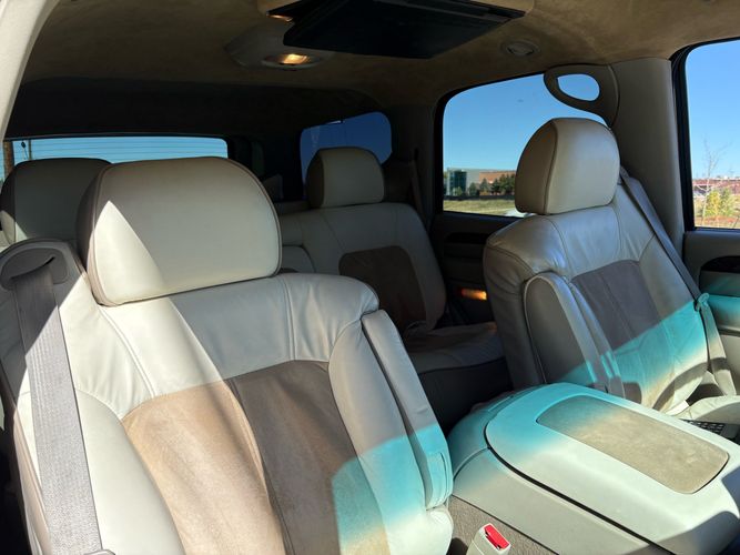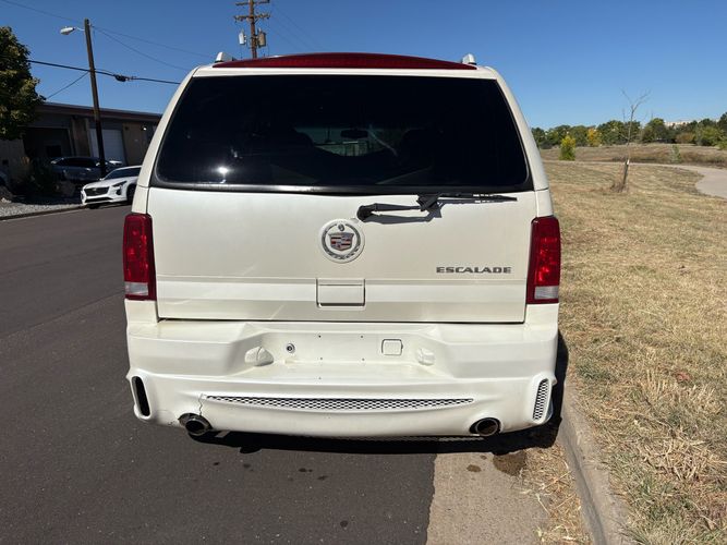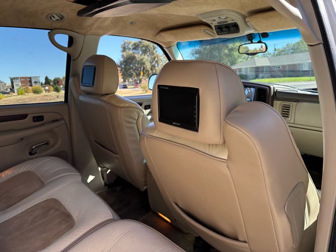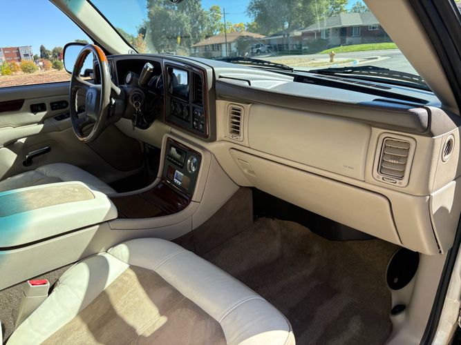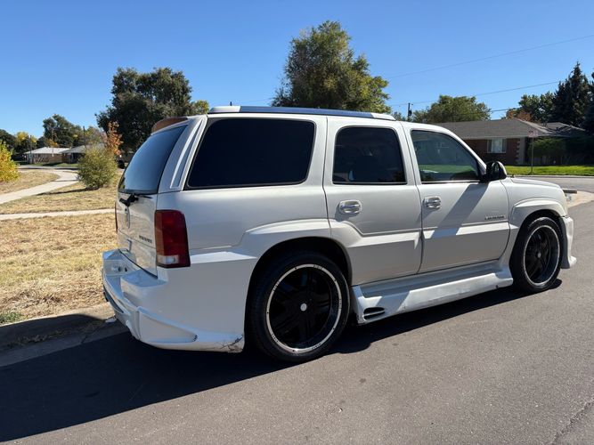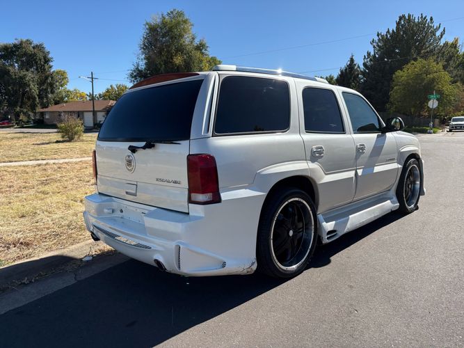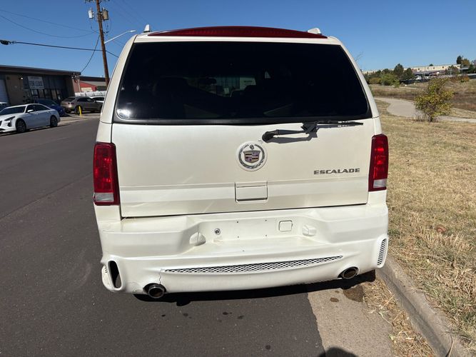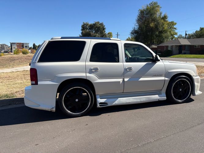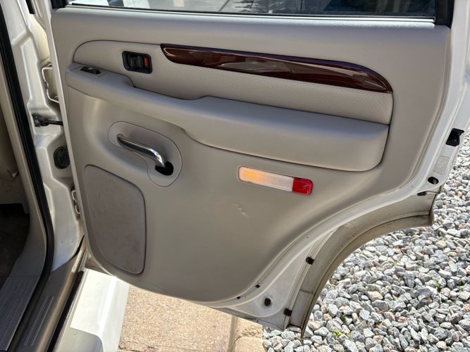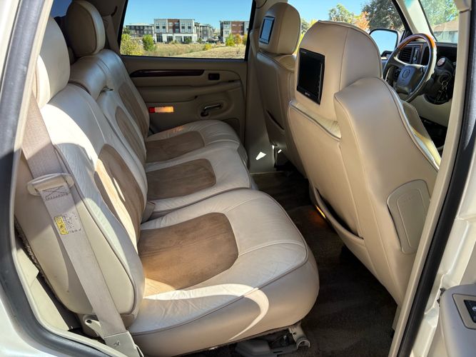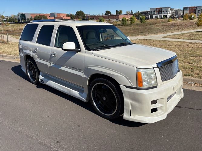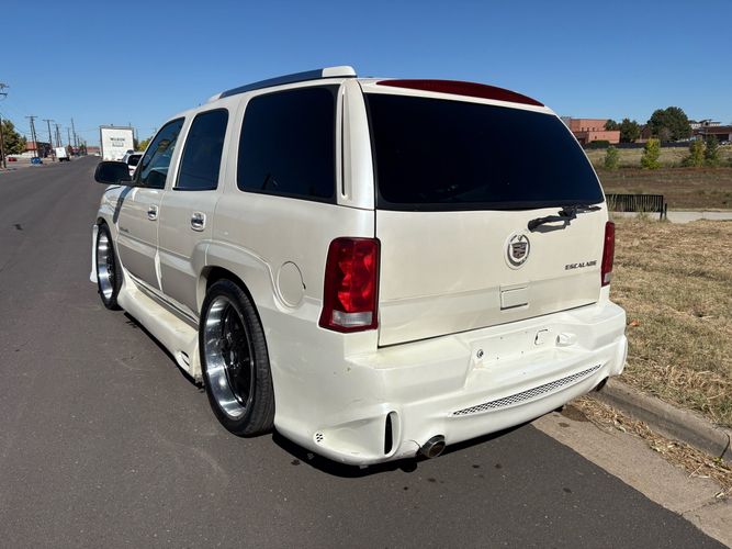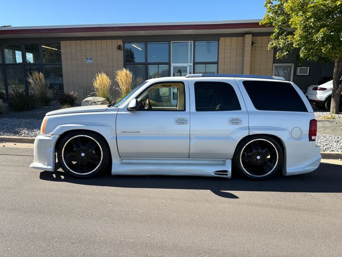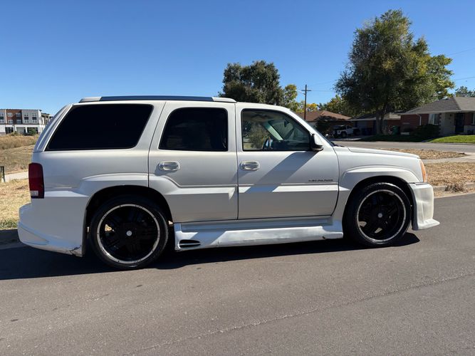 SUPERCHARGED 2002 Cadillac Escalade with only 59,000 original miles. This Escalade is a complete custom build that was built for Sema back in the day. Finished in diamond white exterior over a custom white and tan leather and suede Interor. The list of upgrades done to this Cadillac is absolutely insane I’m sure I’ll miss something on this list. Upgrades like: air ride Suspension that is controlled by remote, Powerdyne supercharger, K40 radar detector, custom body kit, custom leather & suede seats, suede headliner, Hornet alarm, 24” wheels, rear dvd’s, custom dual exhaust, chrome front grill, back up camera and so much more. The body and paint are in pretty good condition. The lower parts of the body kit do have a little bit of damage and we do have an appointment for to go in and get repaired however, we figured we’d advertise a cheaper price and let someone do that your own work since we can’t get it into the shop till the middle of November. Once we do the work and correct the body kit and get everything paint corrected on the vehicle, the price will definitely go up from what we are asking. The interior is an absolutely immaculate condition probably one of the cleanest interiors I’ve seen in an escalating in a long time. There was probably well over 50+ thousand dollars spent on the build and is priced very competitively for what you’re getting essentially you’re buying a stereo system and it comes with an Escalade. Call Weisco motorcars for additional information or to schedule an appointment time to see the vehicle person as we do show all vehicles by appointment only. ( also has a leak on the air ride but still works dropped the price due to this )