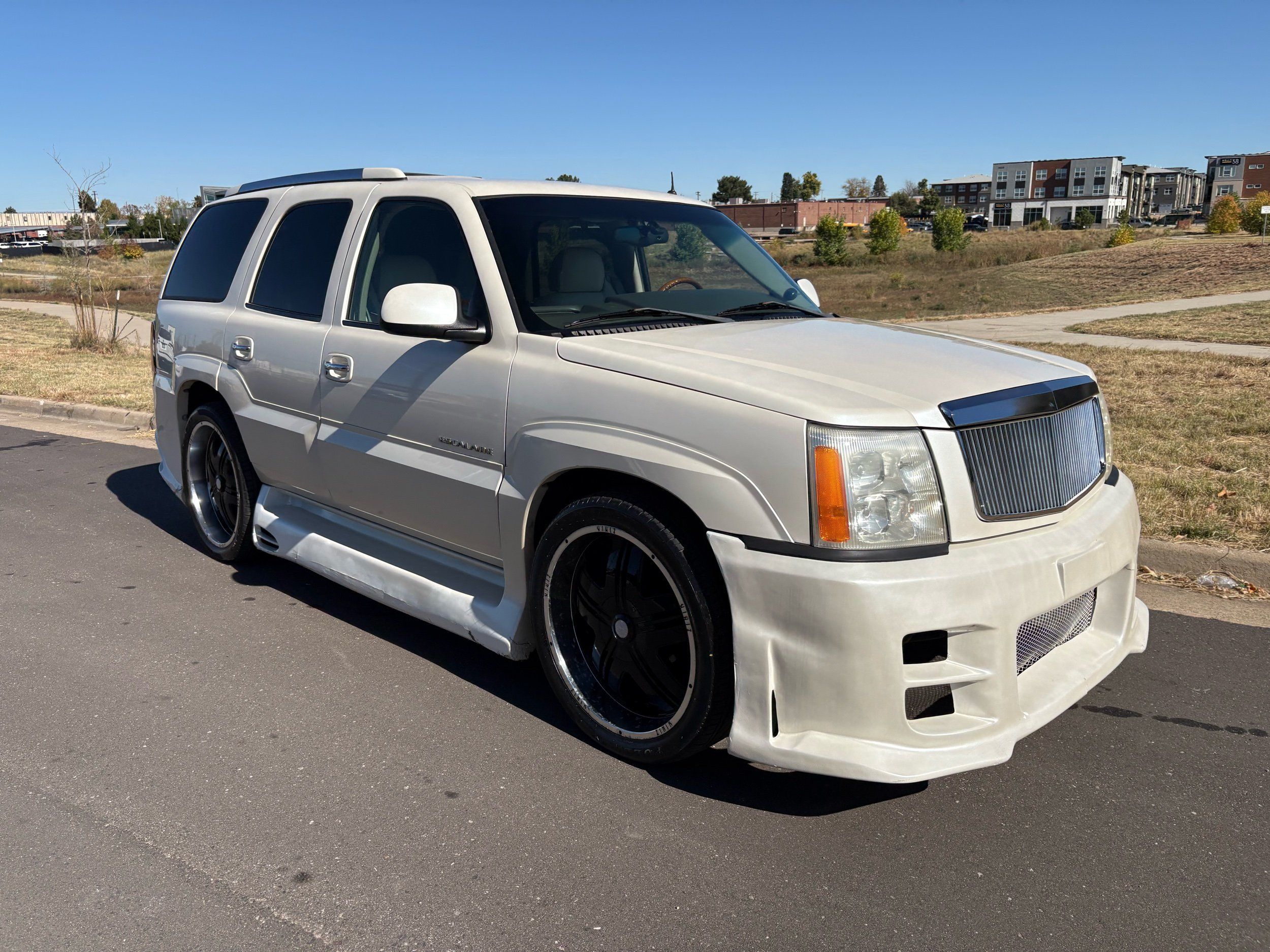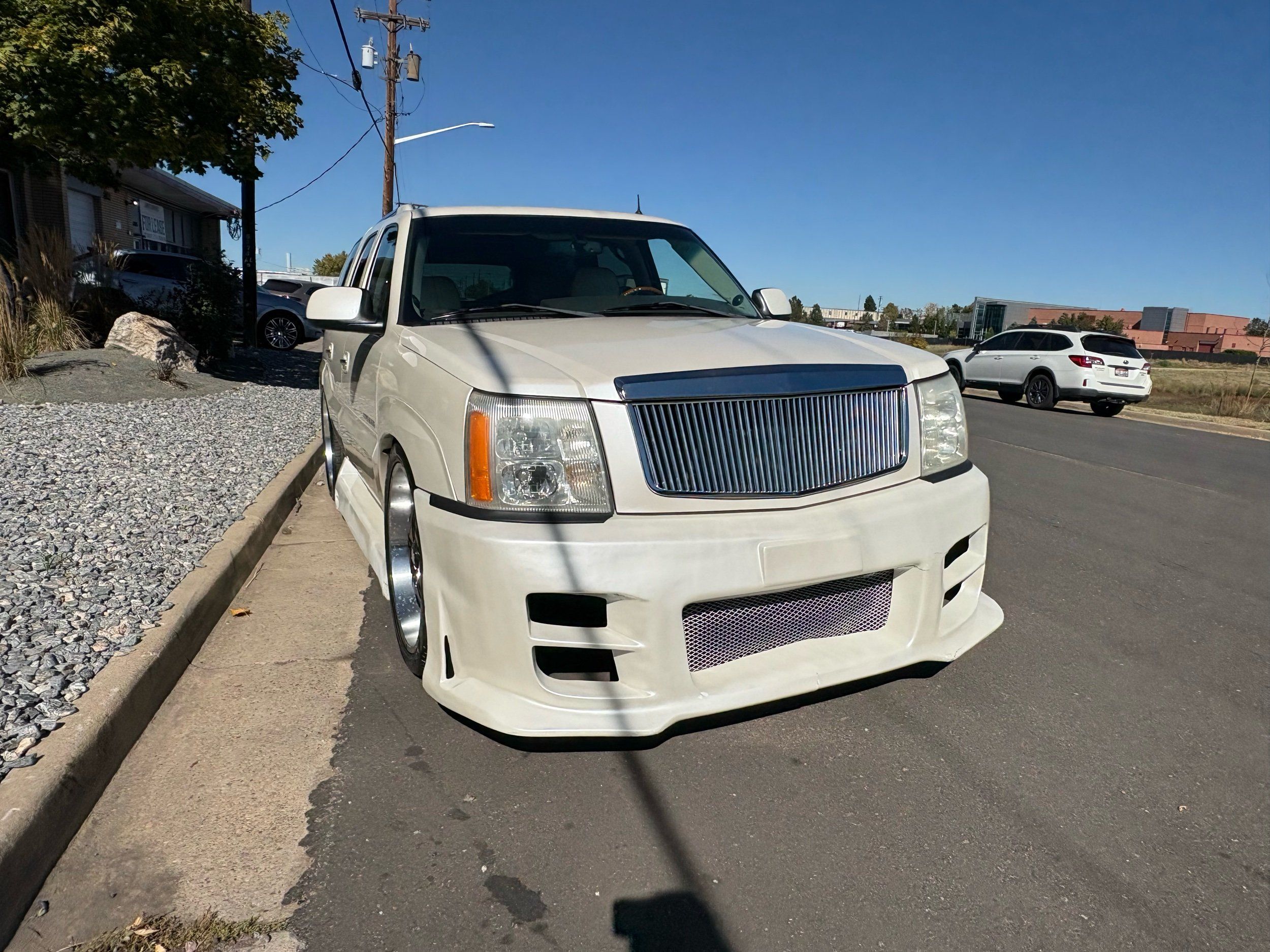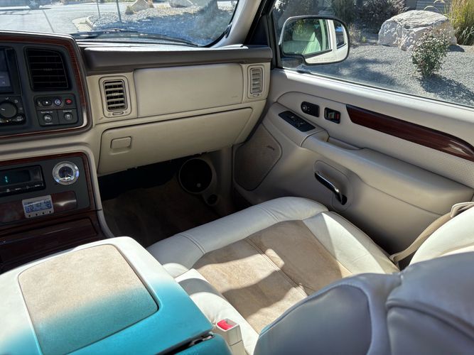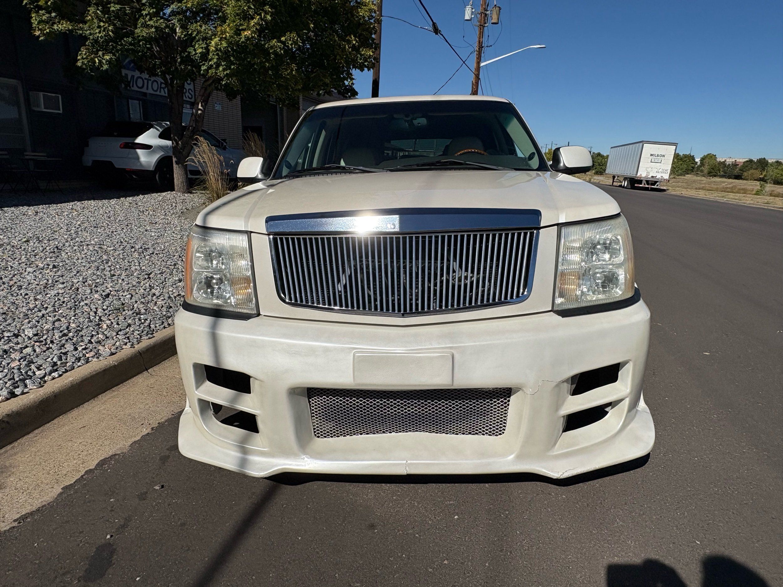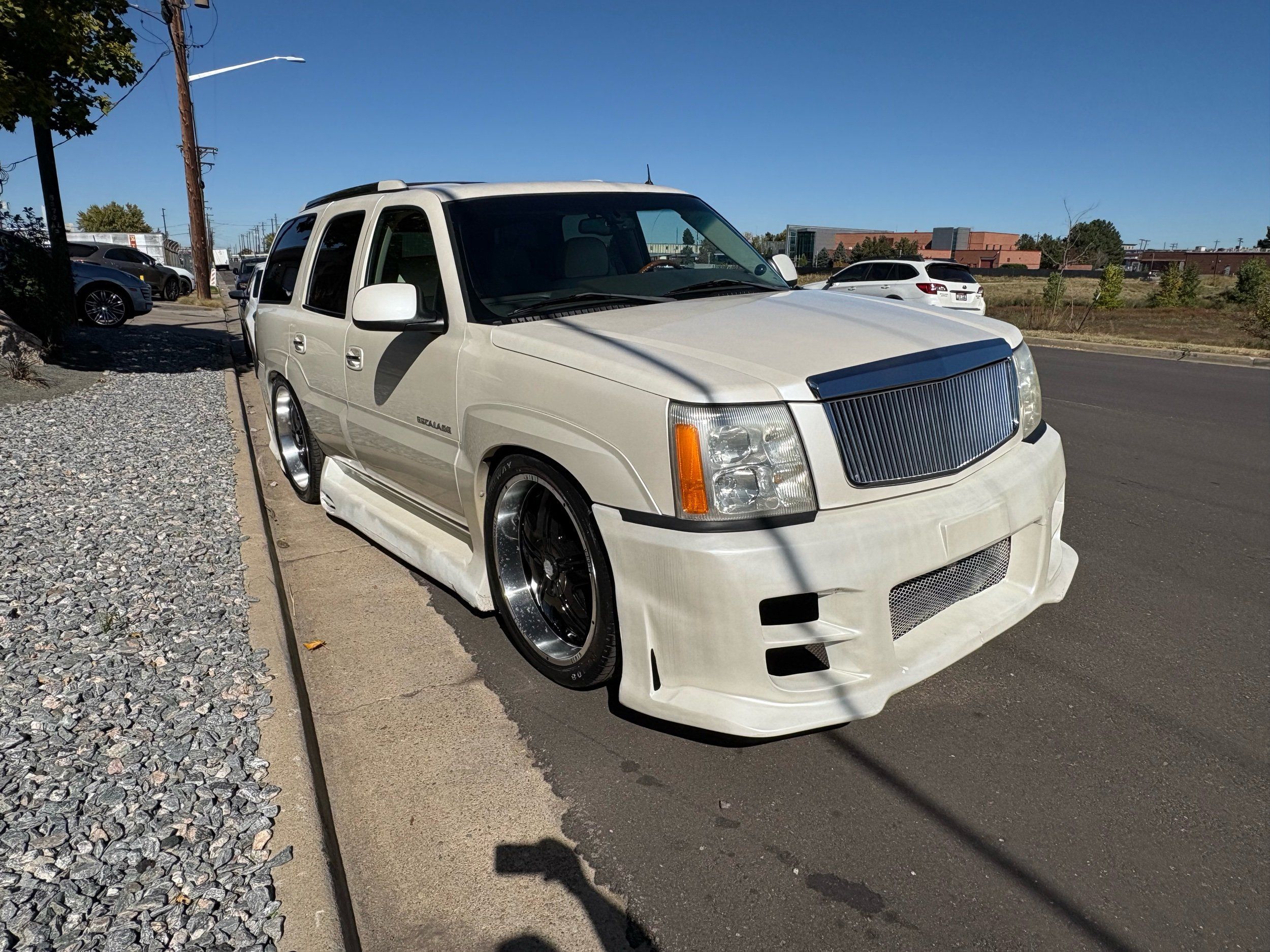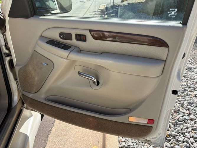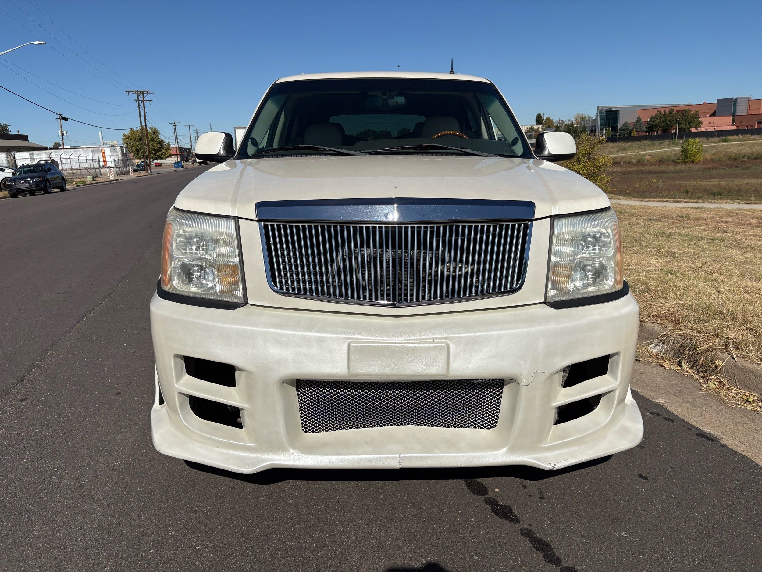 SUPERCHARGED 2002 Cadillac Escalade with only 59,000 original miles. This Escalade is a complete custom build that was built for Sema back in the day. Finished in diamond white exterior over a custom white and tan leather and suede Interor. The list of upgrades done to this Cadillac is absolutely insane I’m sure I’ll miss something on this list. Upgrades like: air ride Suspension that is controlled by remote, Powerdyne supercharger, K40 radar detector, custom body kit, custom leather & suede seats, suede headliner, Hornet alarm, 24” wheels, rear dvd’s, custom dual exhaust, chrome front grill, back up camera and so much more. The body and paint are in pretty good condition. The lower parts of the body kit do have a little bit of damage and we do have an appointment for to go in and get repaired however, we figured we’d advertise a cheaper price and let someone do that your own work since we can’t get it into the shop till the middle of November. Once we do the work and correct the body kit and get everything paint corrected on the vehicle, the price will definitely go up from what we are asking. The interior is an absolutely immaculate condition probably one of the cleanest interiors I’ve seen in an escalating in a long time. There was probably well over 50+ thousand dollars spent on the build and is priced very competitively for what you’re getting essentially you’re buying a stereo system and it comes with an Escalade. Call Weisco motorcars for additional information or to schedule an appointment time to see the vehicle person as we do show all vehicles by appointment only. ( also has a leak on the air ride but still works dropped the price due to this )