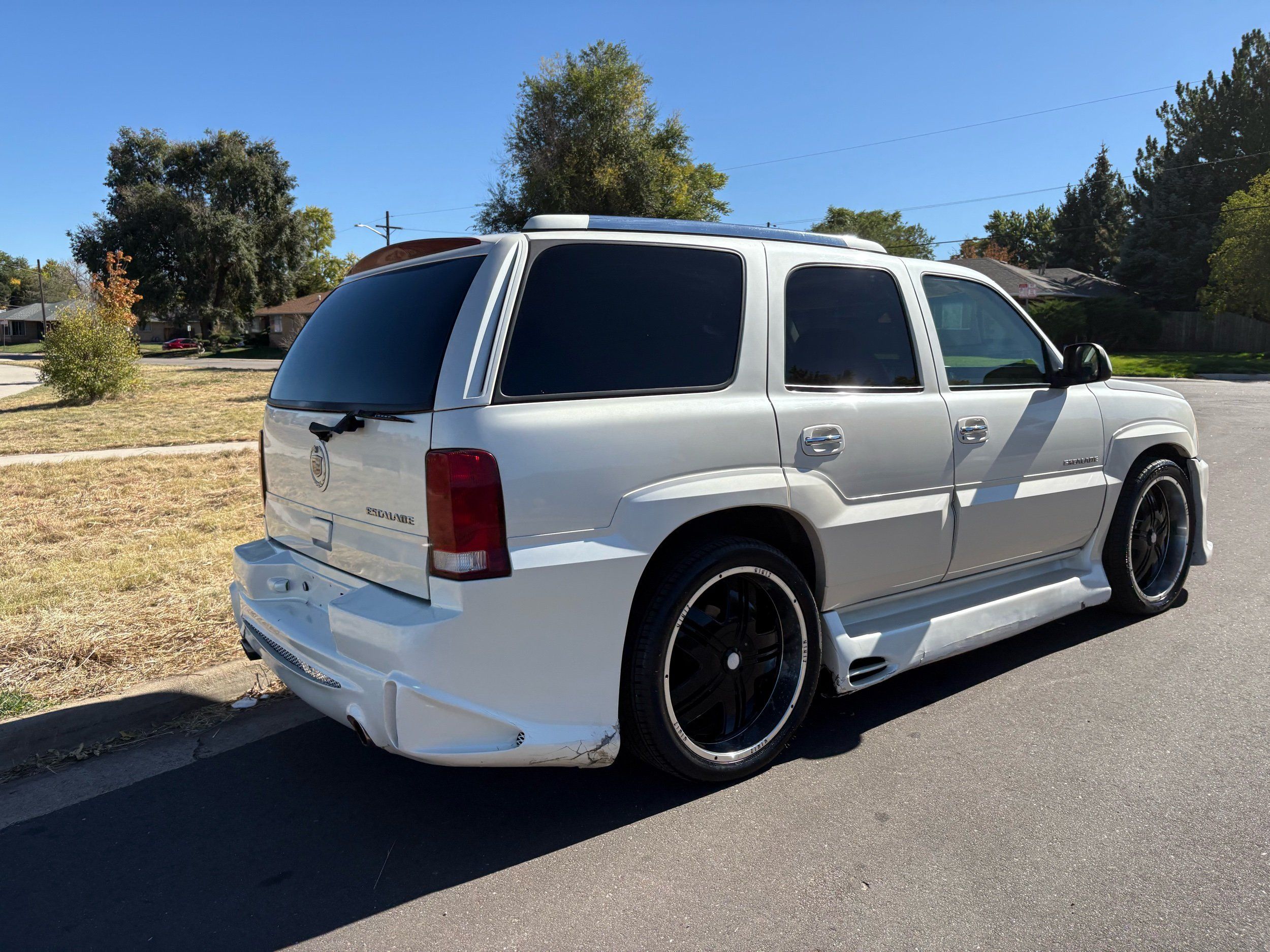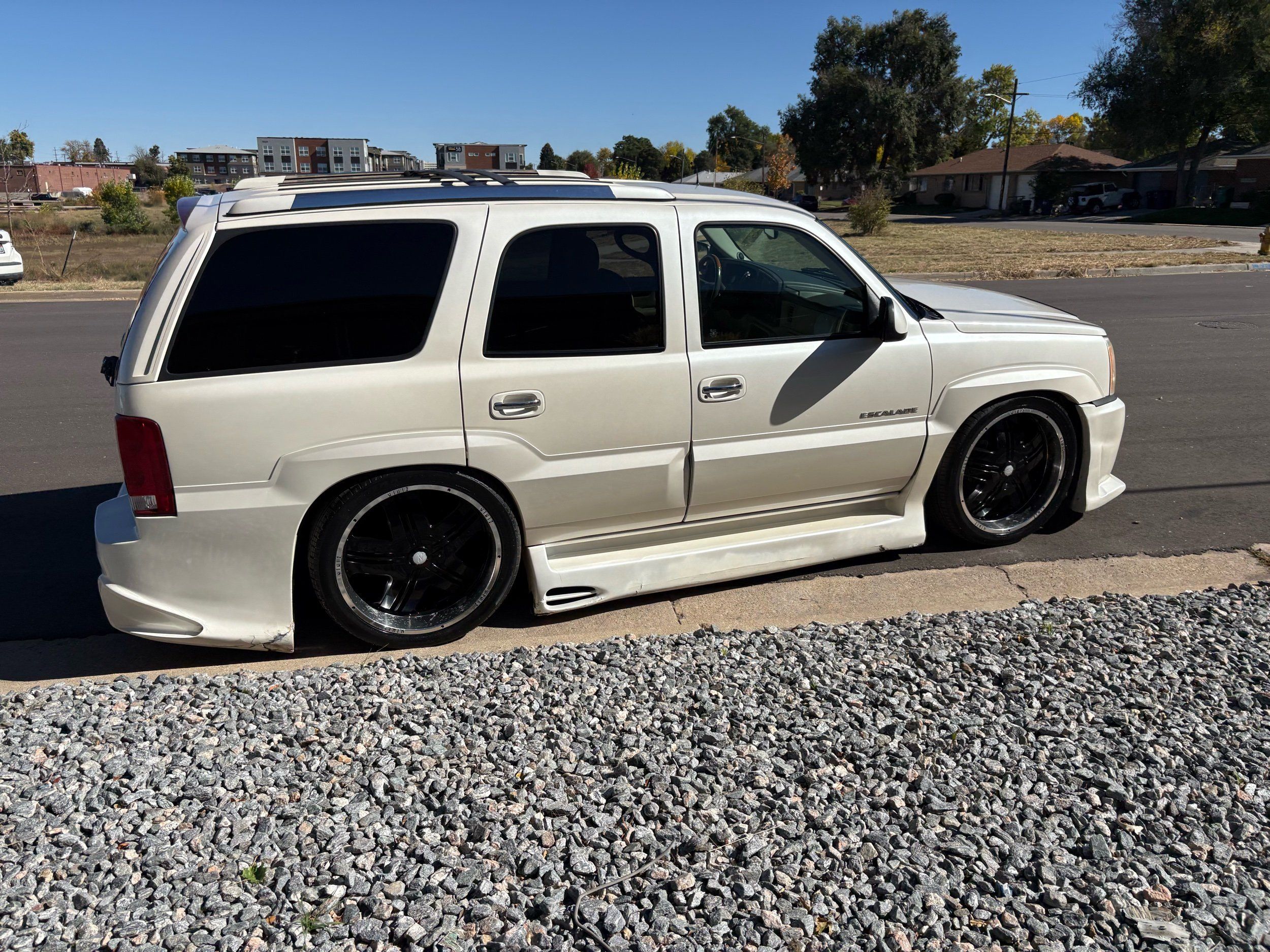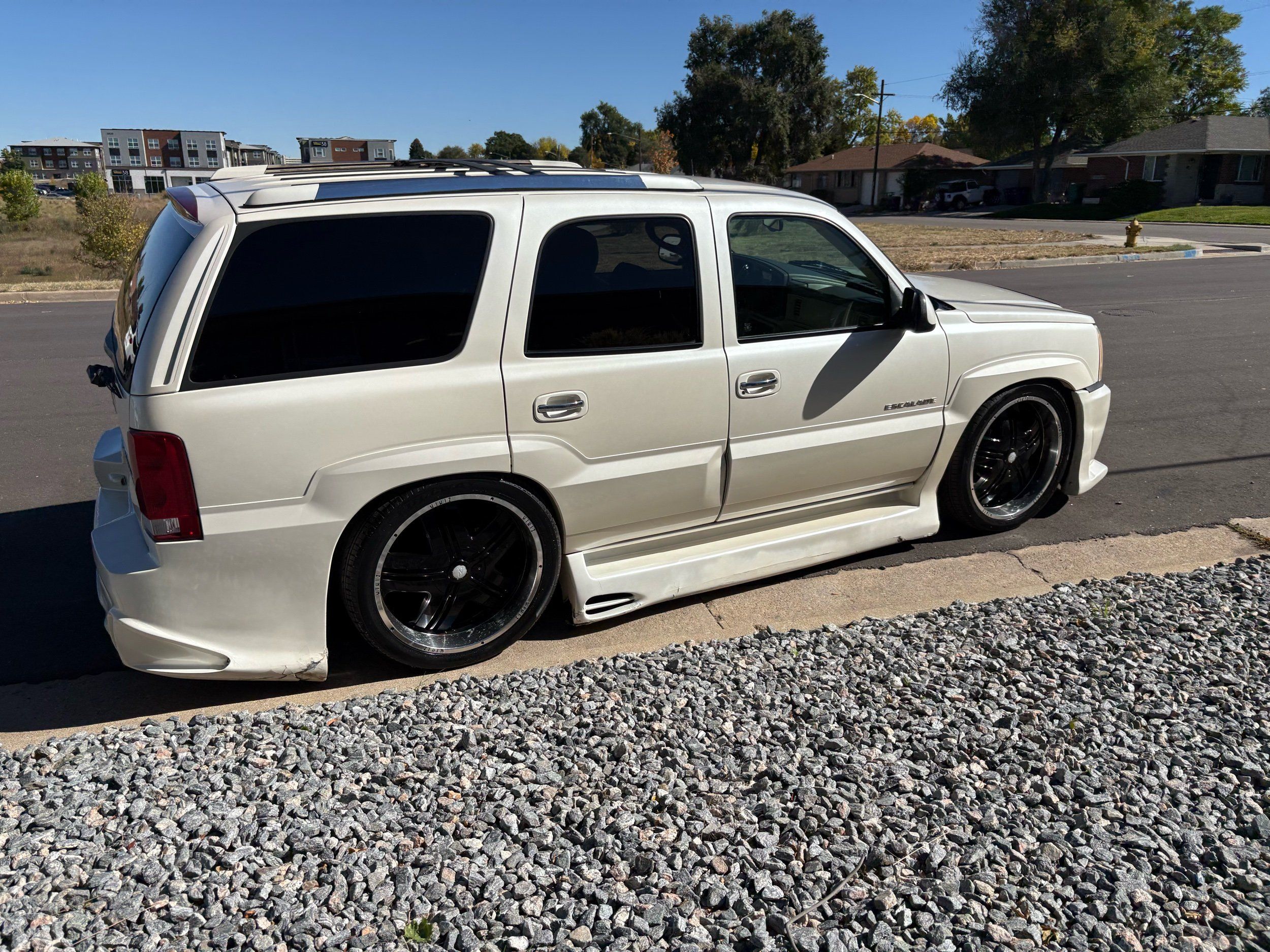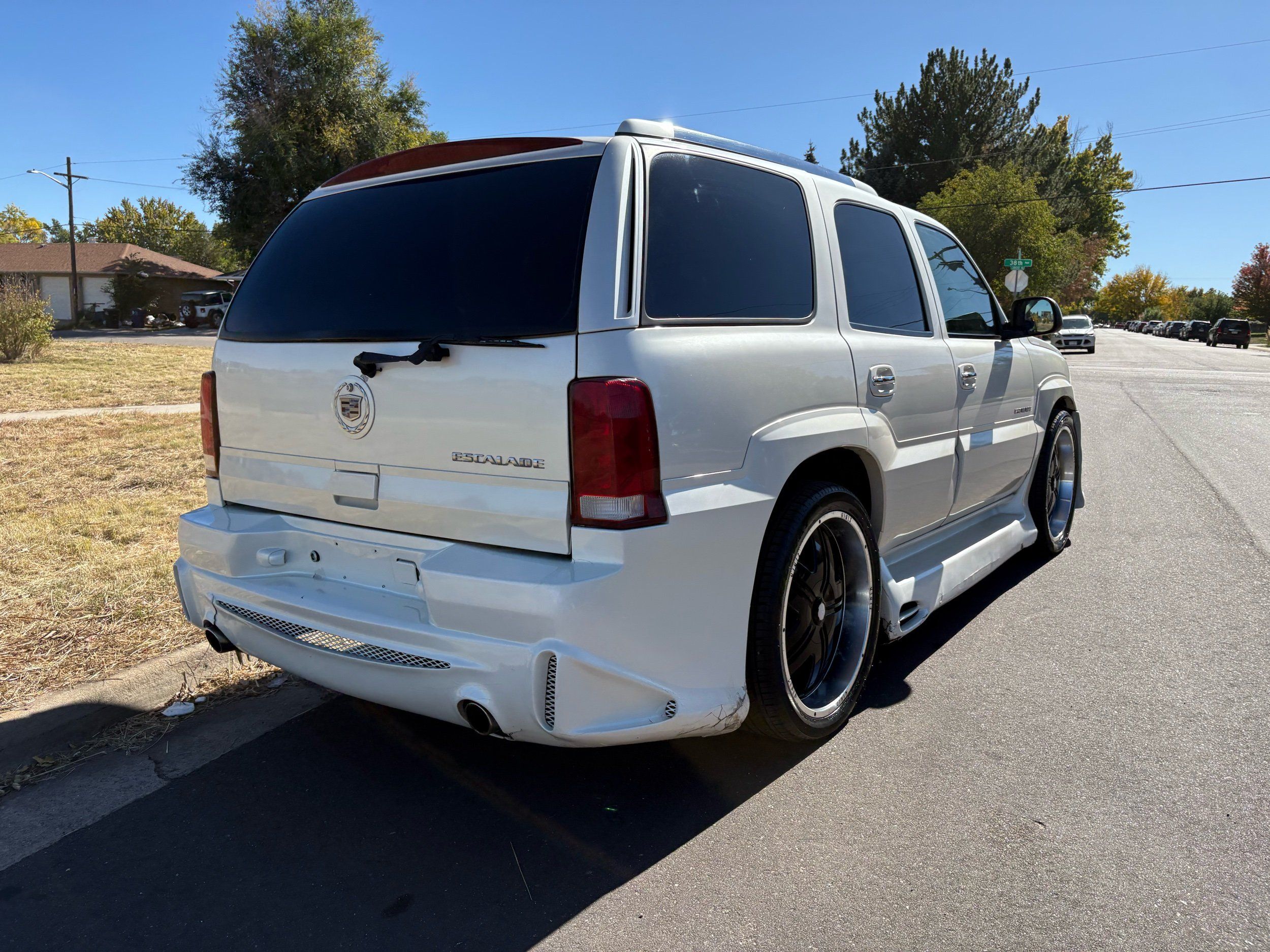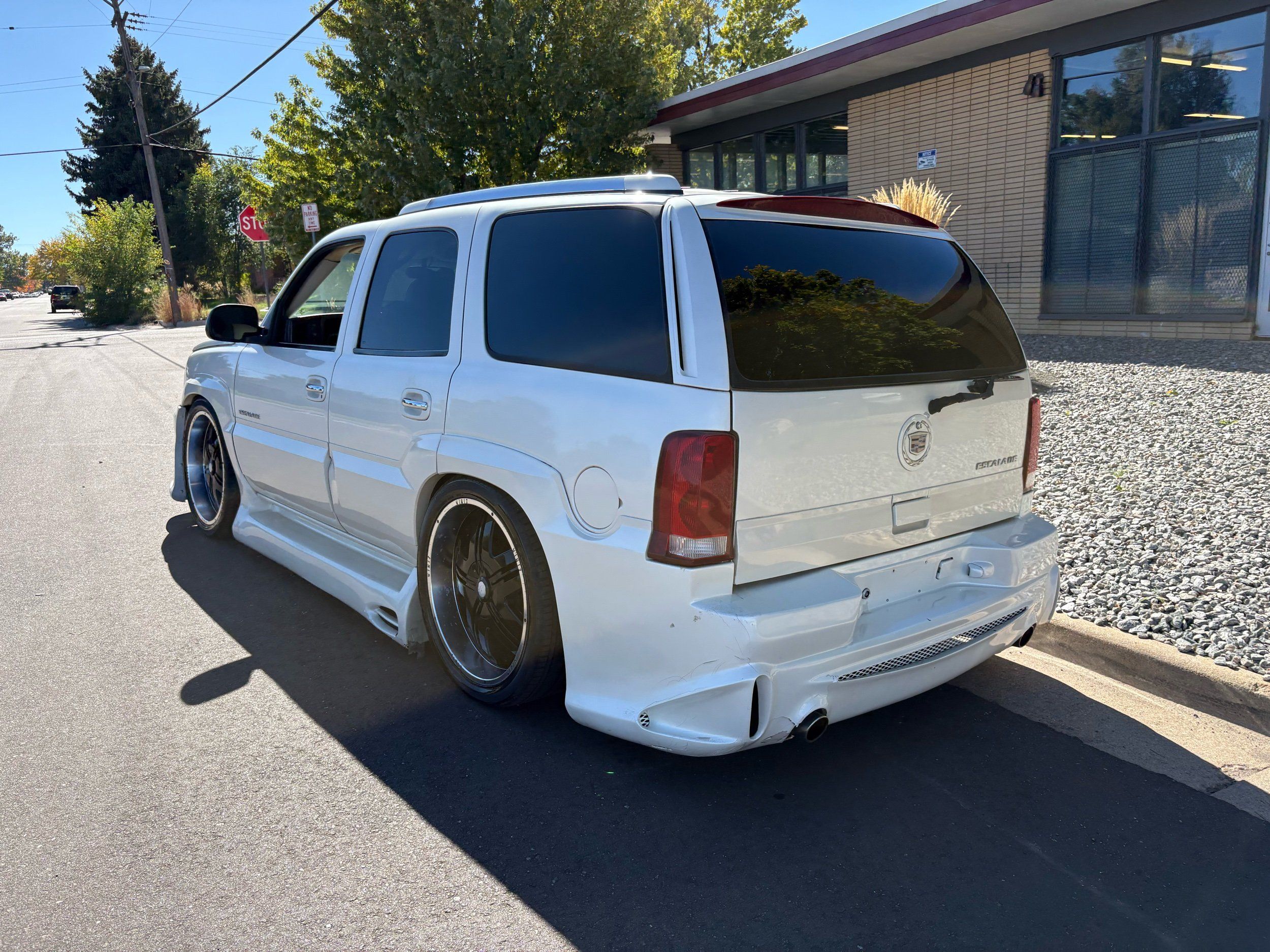 SUPERCHARGED 2002 Cadillac Escalade with only 59,000 original miles. This Escalade is a complete custom build that was built for Sema back in the day. Finished in diamond white exterior over a custom white and tan leather and suede Interor. The list of upgrades done to this Cadillac is absolutely insane I’m sure I’ll miss something on this list. Upgrades like: air ride Suspension that is controlled by remote, Powerdyne supercharger, K40 radar detector, custom body kit, custom leather & suede seats, suede headliner, Hornet alarm, 24” wheels, rear dvd’s, custom dual exhaust, chrome front grill, back up camera and so much more. The body and paint are in pretty good condition. The lower parts of the body kit do have a little bit of damage and we do have an appointment for to go in and get repaired however, we figured we’d advertise a cheaper price and let someone do that your own work since we can’t get it into the shop till the middle of November. Once we do the work and correct the body kit and get everything paint corrected on the vehicle, the price will definitely go up from what we are asking. The interior is an absolutely immaculate condition probably one of the cleanest interiors I’ve seen in an escalating in a long time. There was probably well over 50+ thousand dollars spent on the build and is priced very competitively for what you’re getting essentially you’re buying a stereo system and it comes with an Escalade. Call Weisco motorcars for additional information or to schedule an appointment time to see the vehicle person as we do show all vehicles by appointment only. ( also has a leak on the air ride but still works dropped the price due to this )