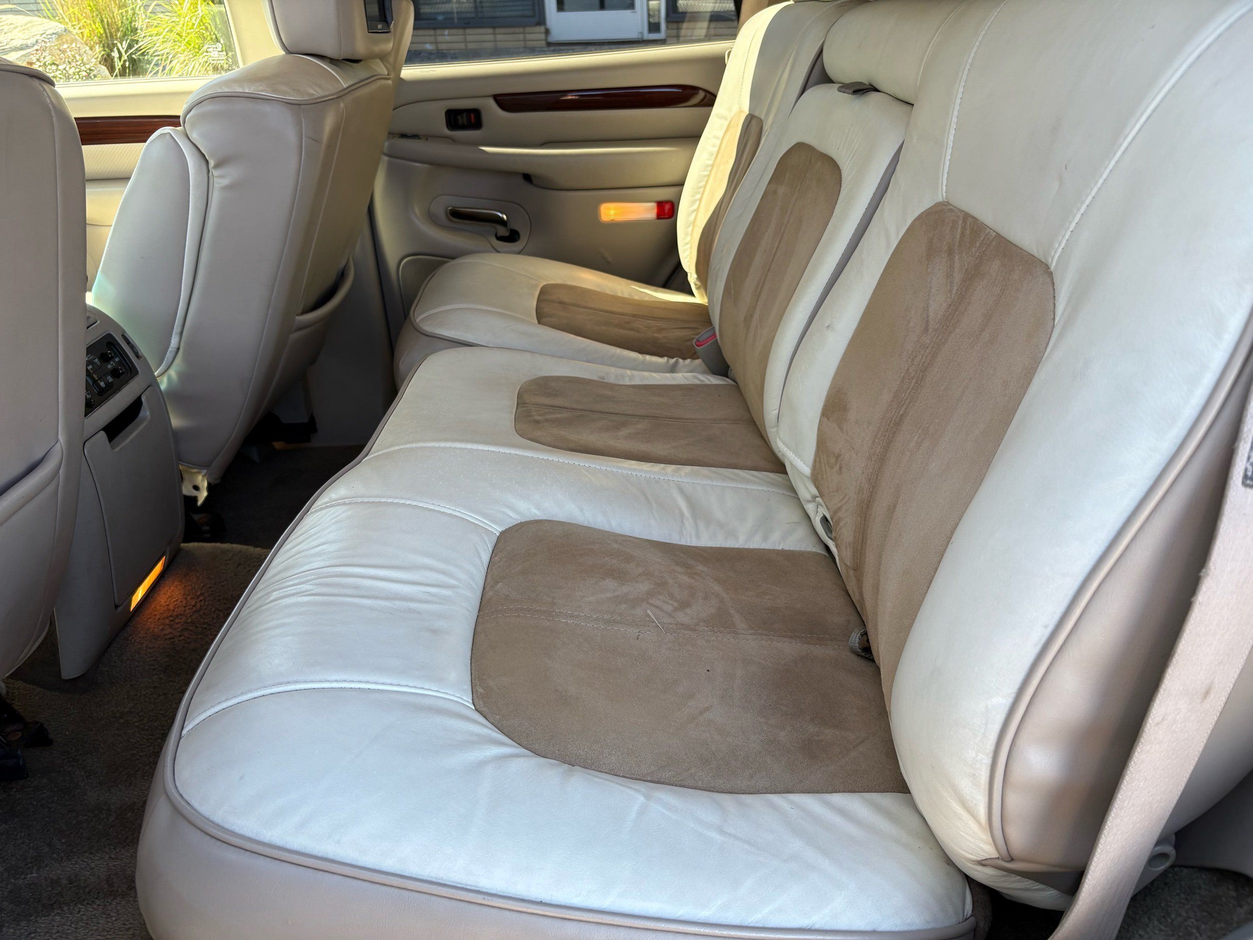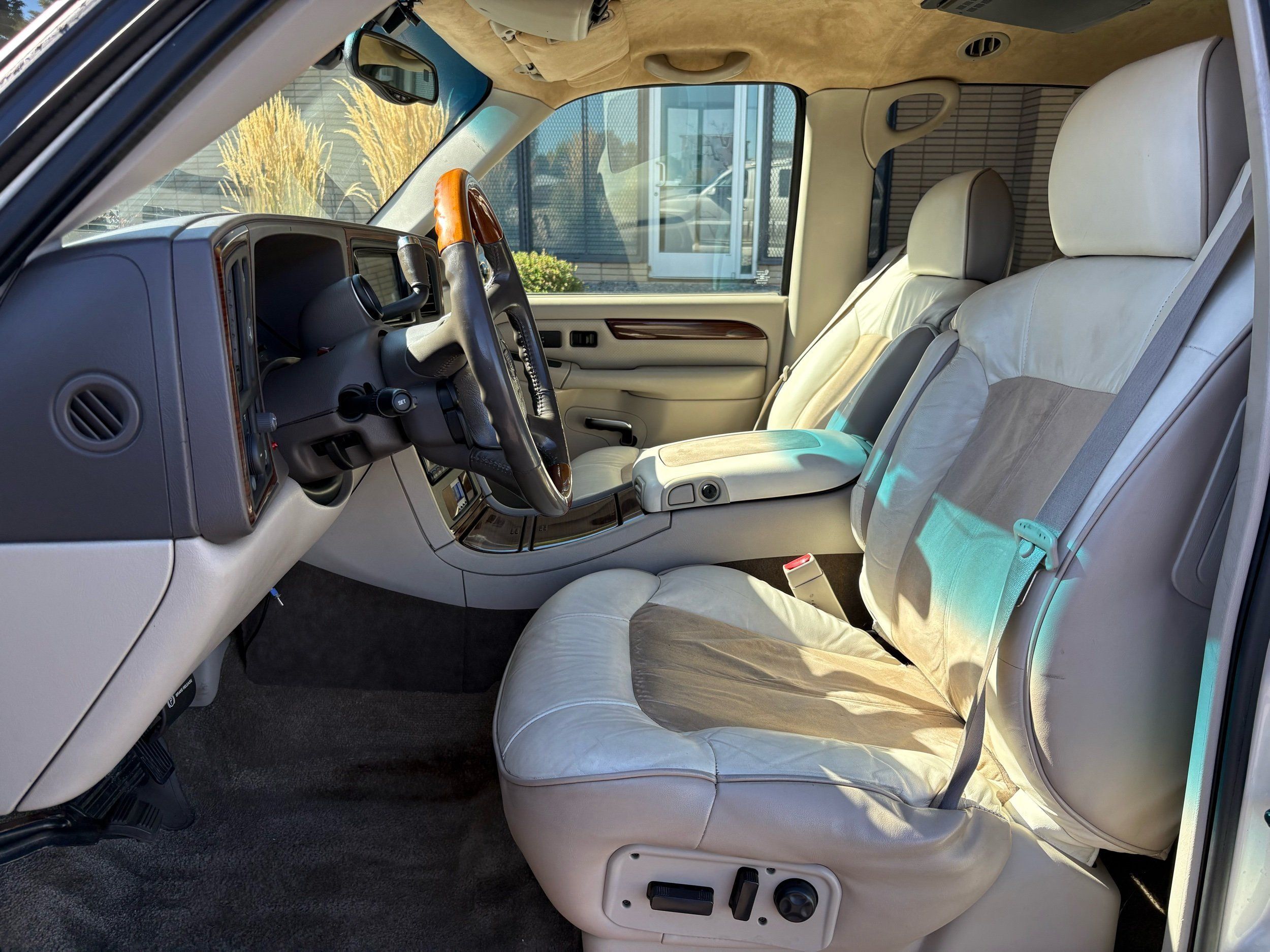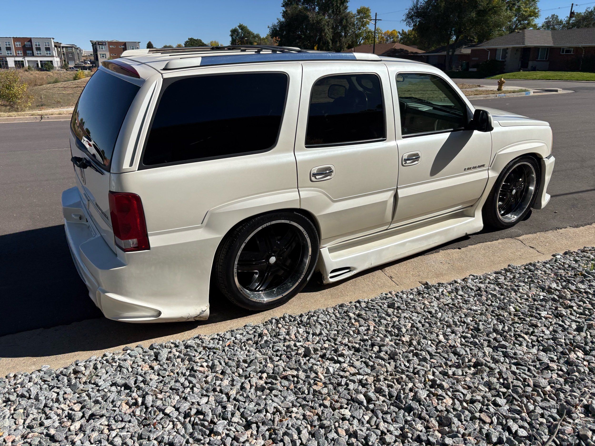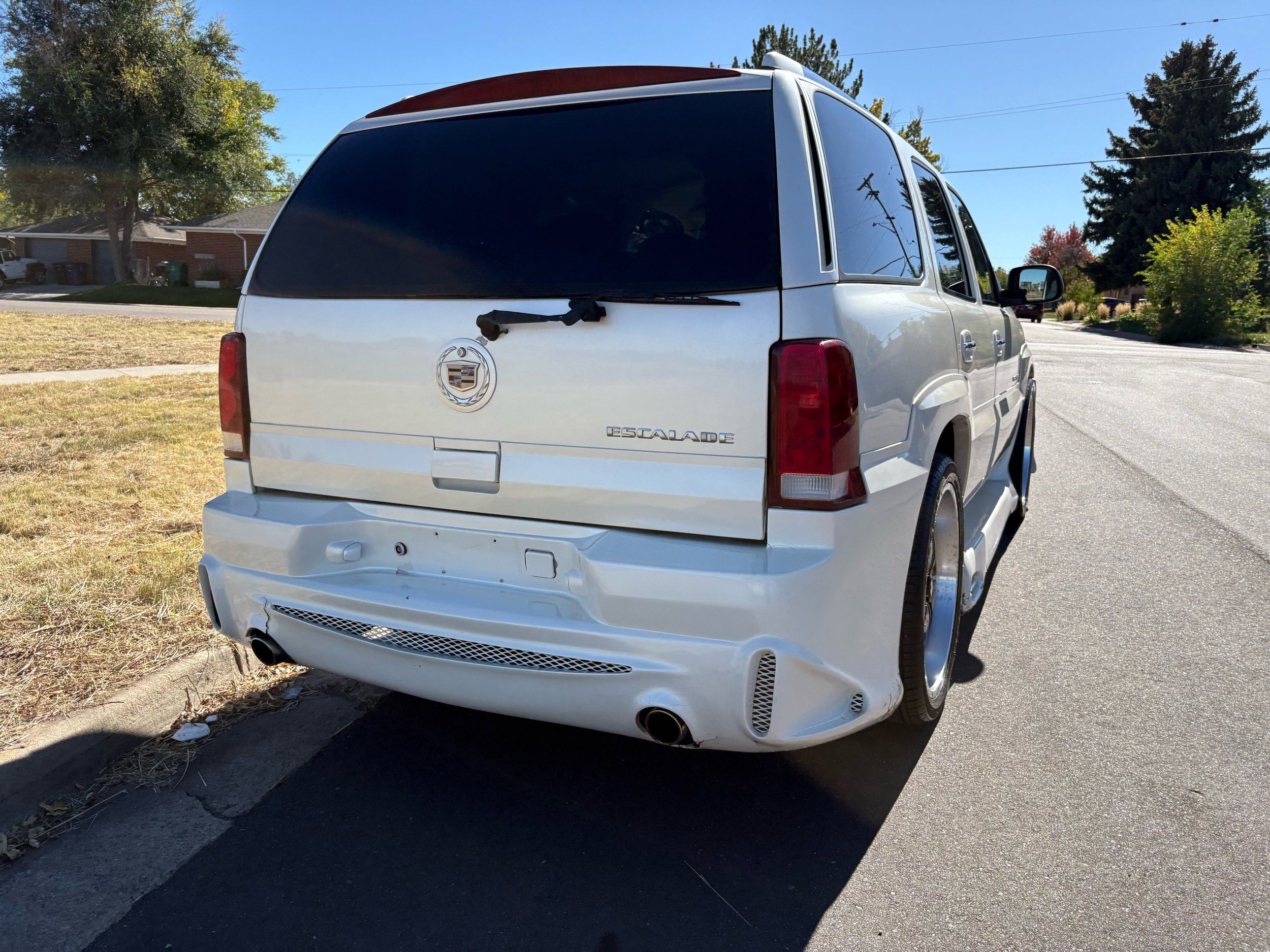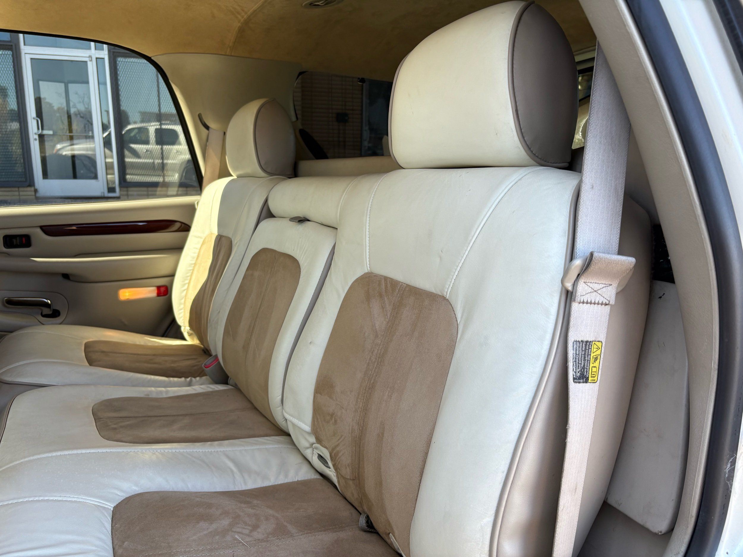 SUPERCHARGED 2002 Cadillac Escalade with only 59,000 original miles. This Escalade is a complete custom build that was built for Sema back in the day. Finished in diamond white exterior over a custom white and tan leather and suede Interor. The list of upgrades done to this Cadillac is absolutely insane I’m sure I’ll miss something on this list. Upgrades like: air ride Suspension that is controlled by remote, Powerdyne supercharger, K40 radar detector, custom body kit, custom leather & suede seats, suede headliner, Hornet alarm, 24” wheels, rear dvd’s, custom dual exhaust, chrome front grill, back up camera and so much more. The body and paint are in pretty good condition. The lower parts of the body kit do have a little bit of damage and we do have an appointment for to go in and get repaired however, we figured we’d advertise a cheaper price and let someone do that your own work since we can’t get it into the shop till the middle of November. Once we do the work and correct the body kit and get everything paint corrected on the vehicle, the price will definitely go up from what we are asking. The interior is an absolutely immaculate condition probably one of the cleanest interiors I’ve seen in an escalating in a long time. There was probably well over 50+ thousand dollars spent on the build and is priced very competitively for what you’re getting essentially you’re buying a stereo system and it comes with an Escalade. Call Weisco motorcars for additional information or to schedule an appointment time to see the vehicle person as we do show all vehicles by appointment only. ( also has a leak on the air ride but still works dropped the price due to this )