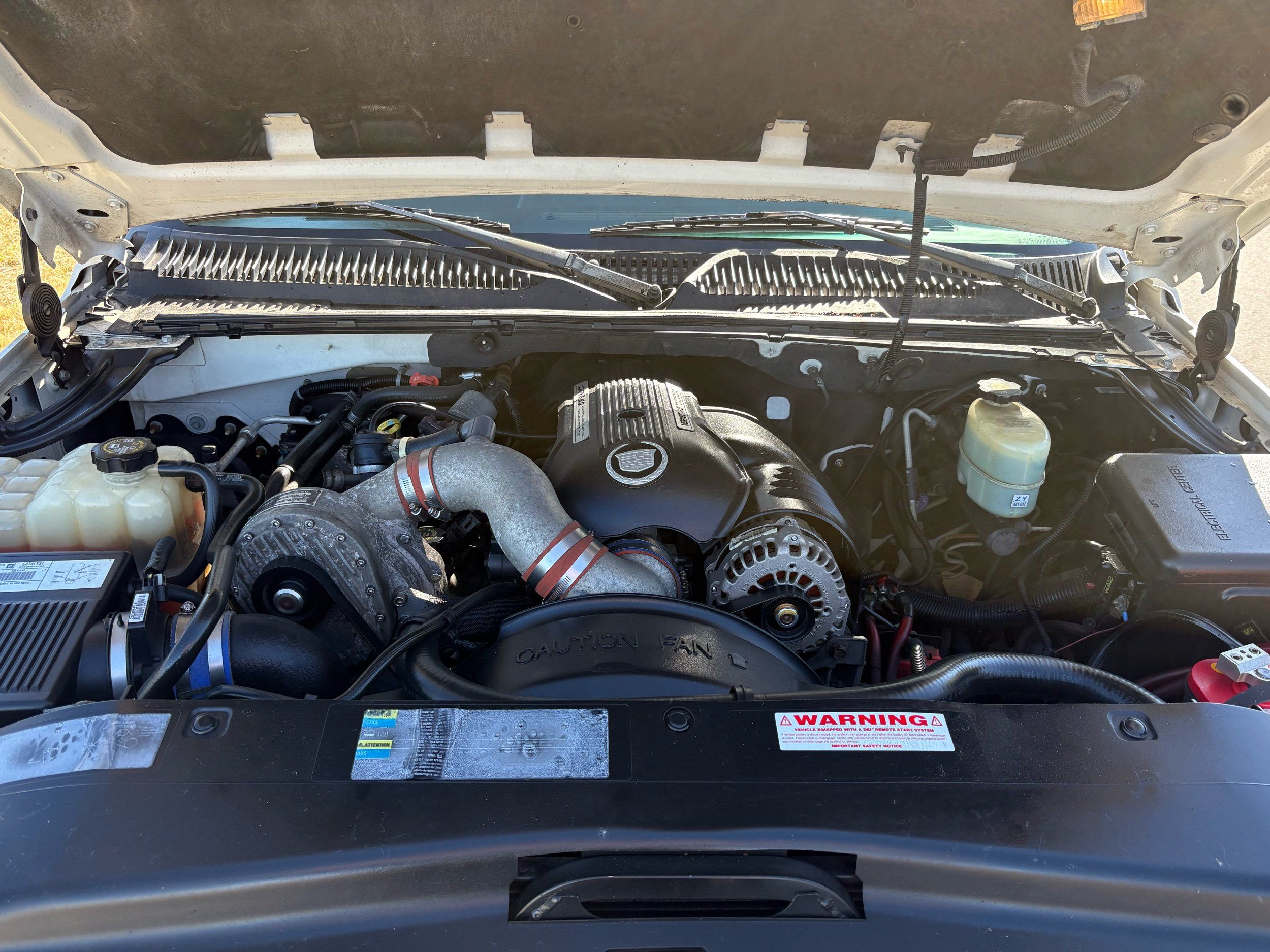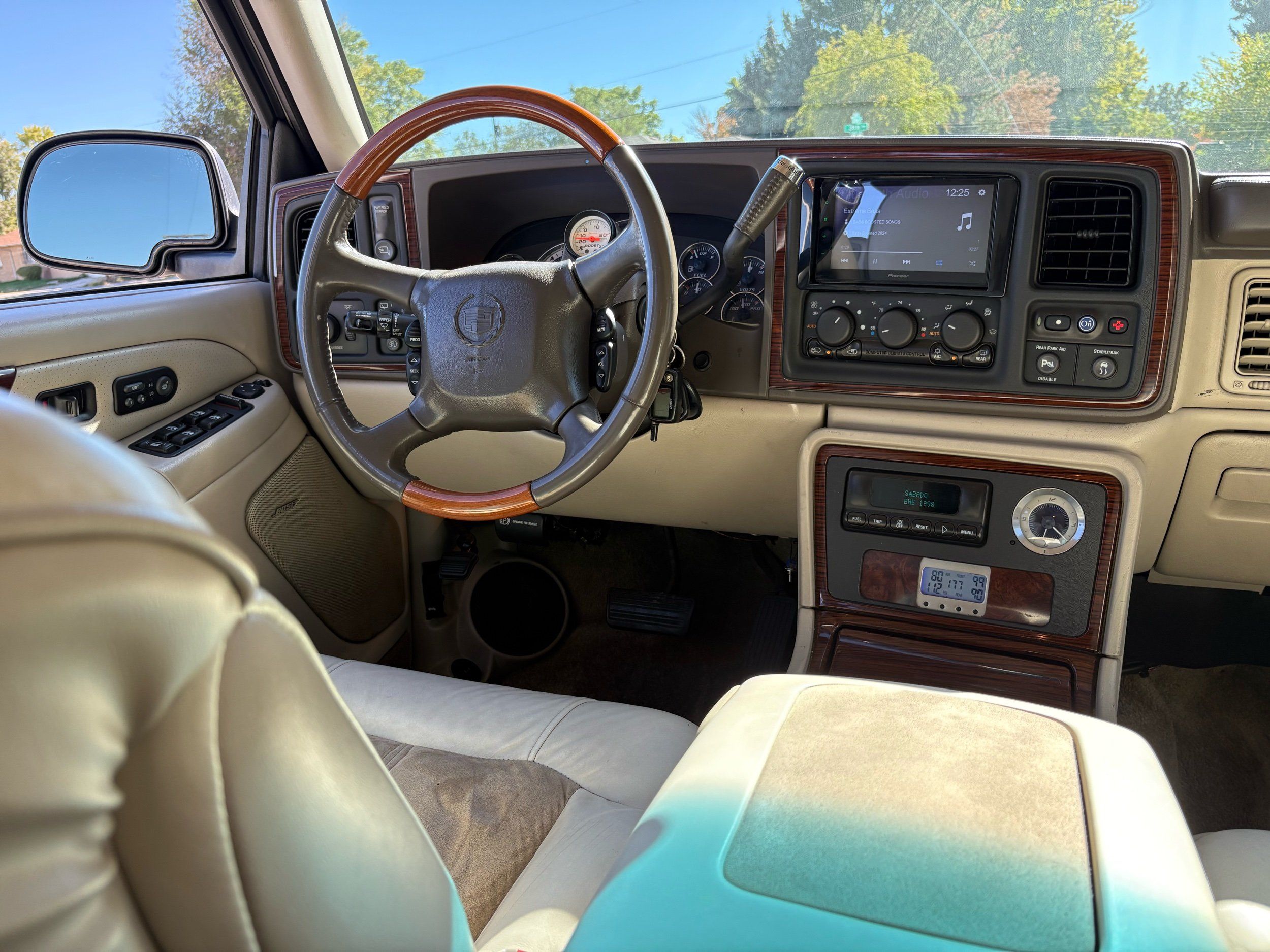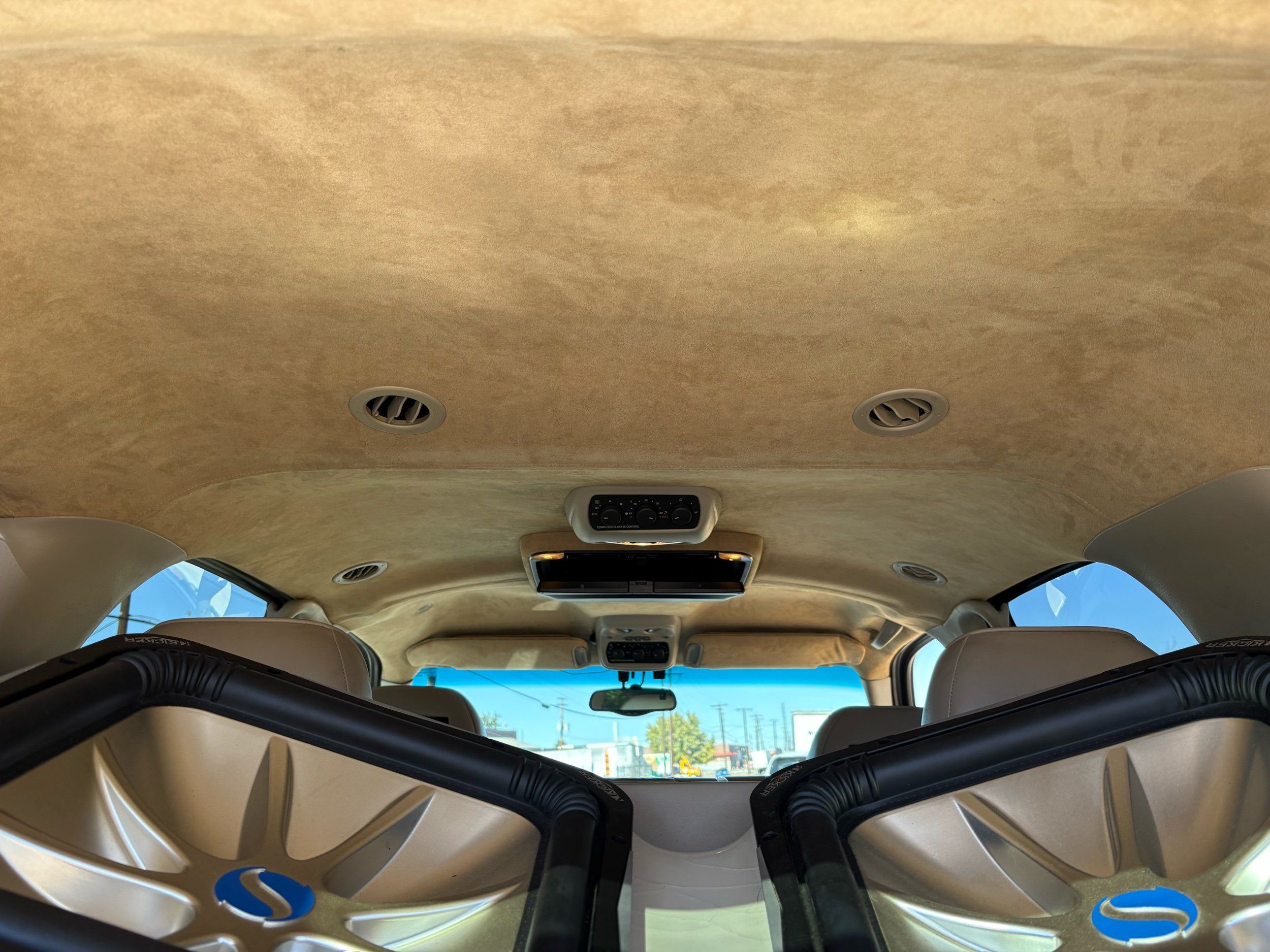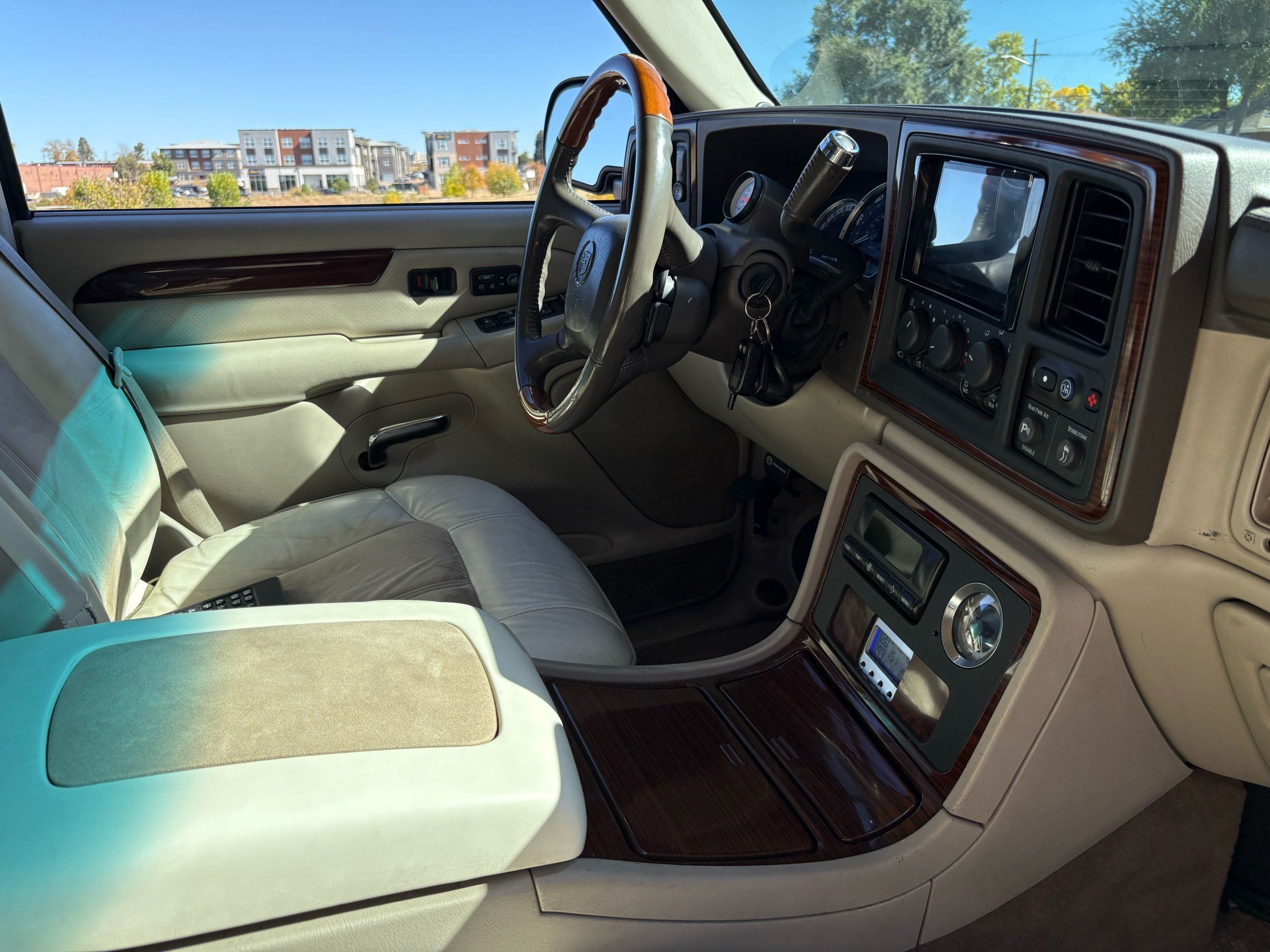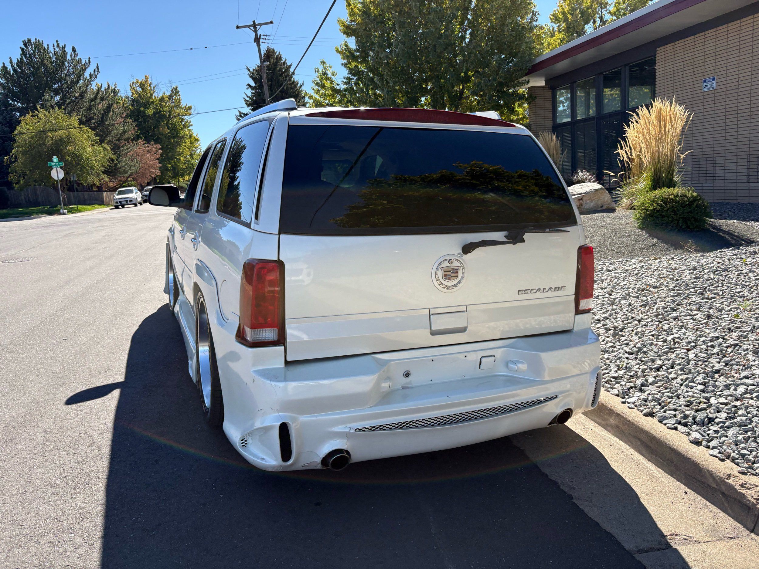 SUPERCHARGED 2002 Cadillac Escalade with only 59,000 original miles. This Escalade is a complete custom build that was built for Sema back in the day. Finished in diamond white exterior over a custom white and tan leather and suede Interor. The list of upgrades done to this Cadillac is absolutely insane I’m sure I’ll miss something on this list. Upgrades like: air ride Suspension that is controlled by remote, Powerdyne supercharger, K40 radar detector, custom body kit, custom leather & suede seats, suede headliner, Hornet alarm, 24” wheels, rear dvd’s, custom dual exhaust, chrome front grill, back up camera and so much more. The body and paint are in pretty good condition. The lower parts of the body kit do have a little bit of damage and we do have an appointment for to go in and get repaired however, we figured we’d advertise a cheaper price and let someone do that your own work since we can’t get it into the shop till the middle of November. Once we do the work and correct the body kit and get everything paint corrected on the vehicle, the price will definitely go up from what we are asking. The interior is an absolutely immaculate condition probably one of the cleanest interiors I’ve seen in an escalating in a long time. There was probably well over 50+ thousand dollars spent on the build and is priced very competitively for what you’re getting essentially you’re buying a stereo system and it comes with an Escalade. Call Weisco motorcars for additional information or to schedule an appointment time to see the vehicle person as we do show all vehicles by appointment only. ( also has a leak on the air ride but still works dropped the price due to this )