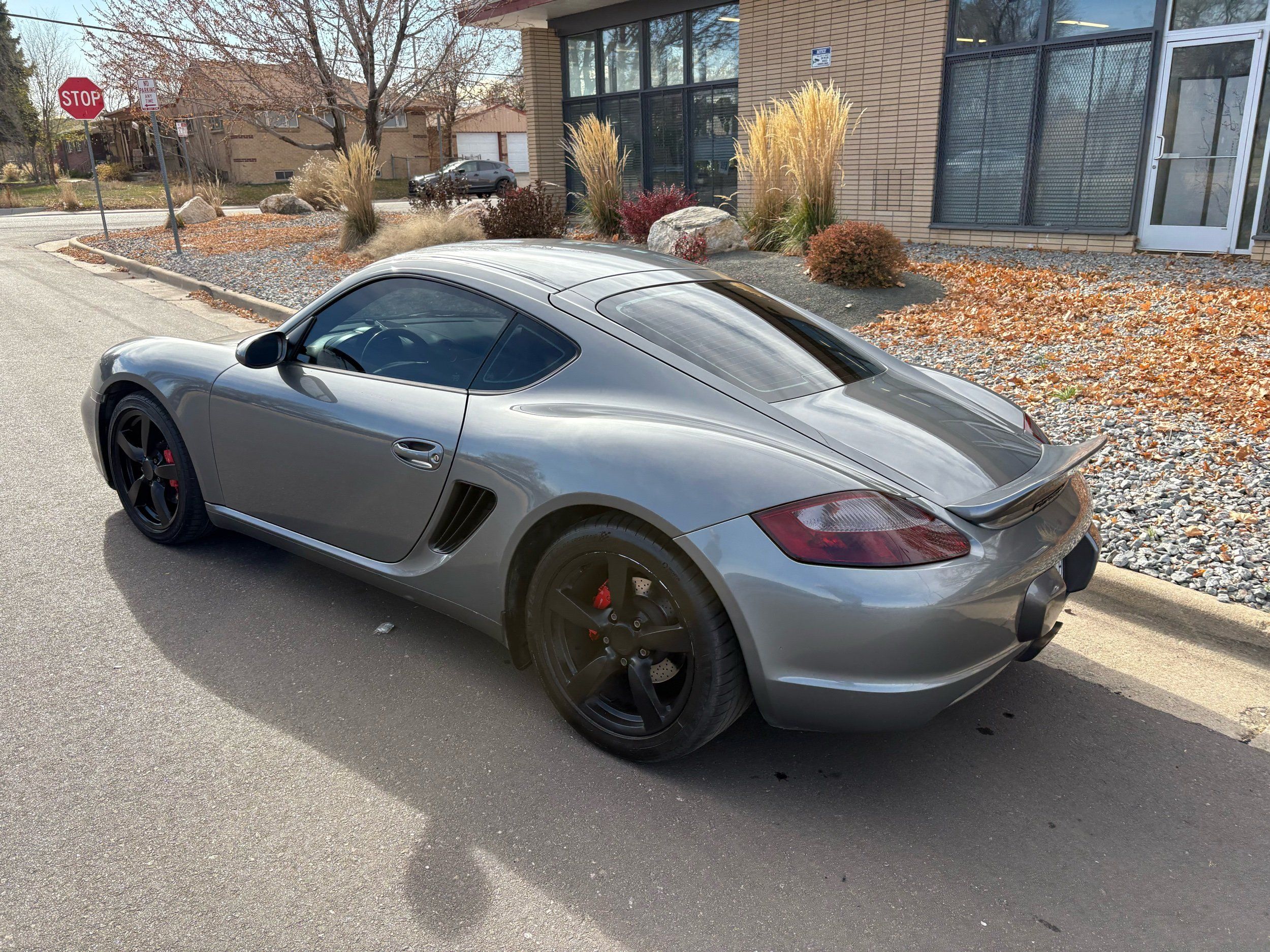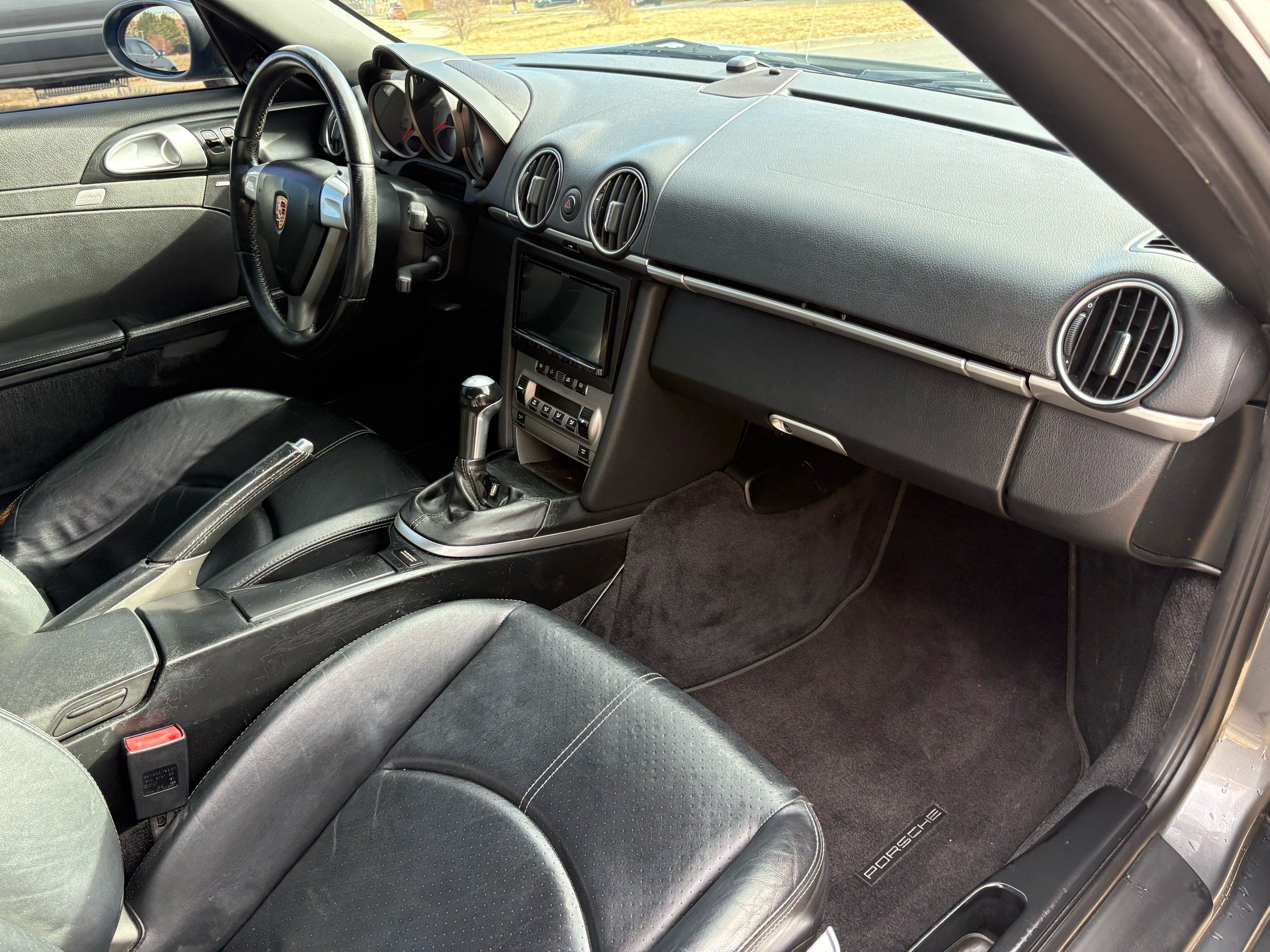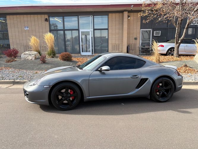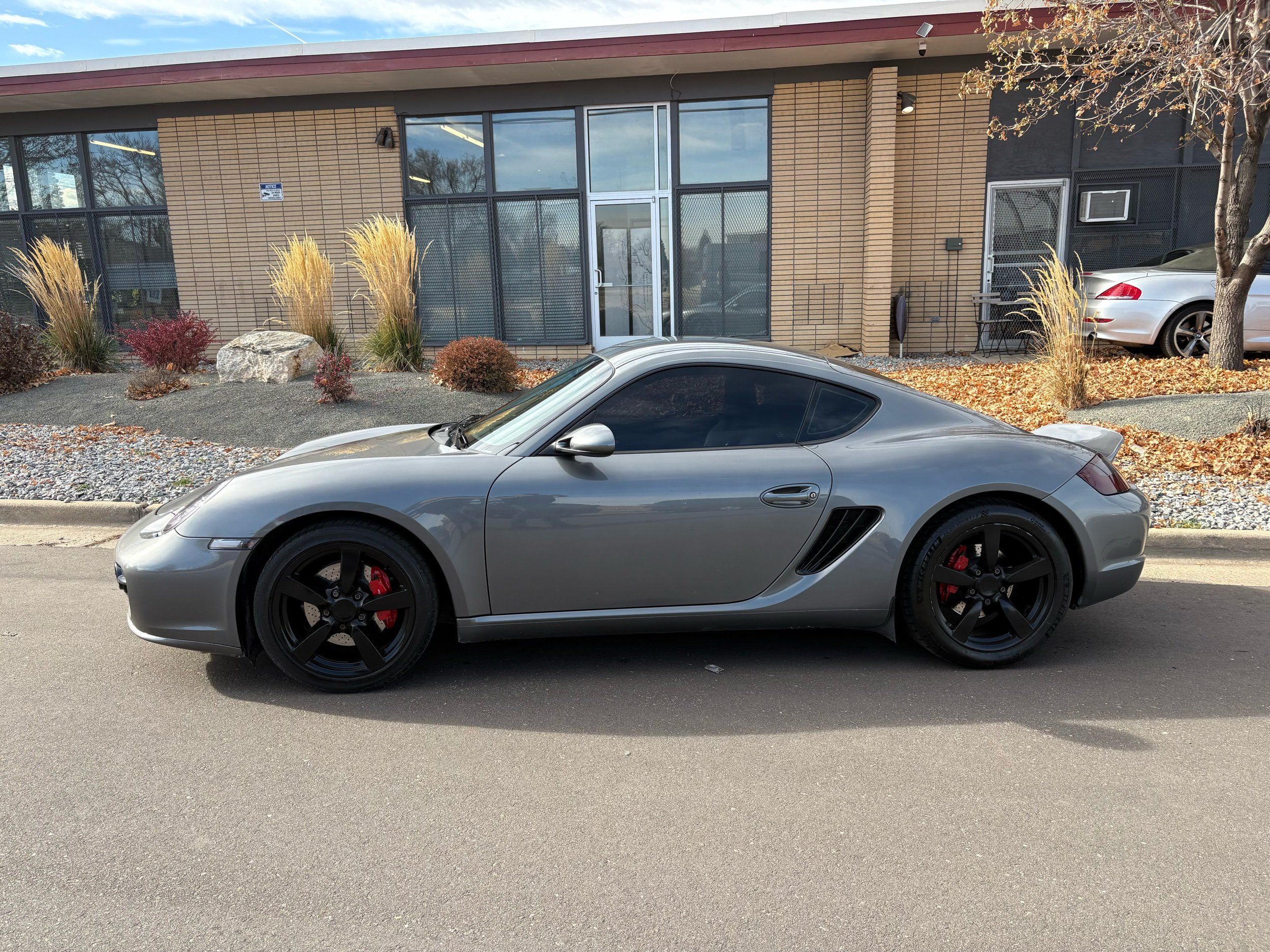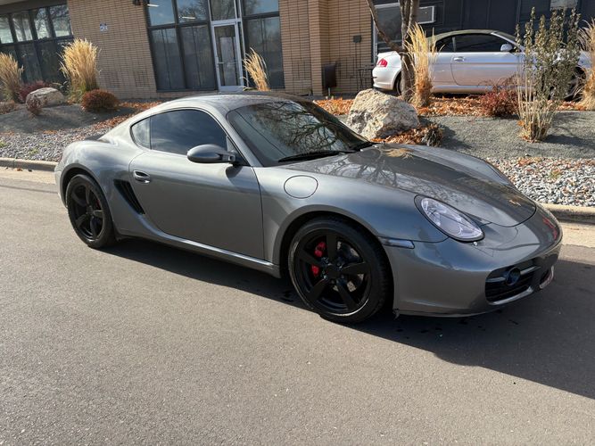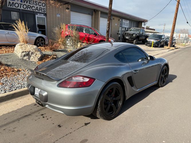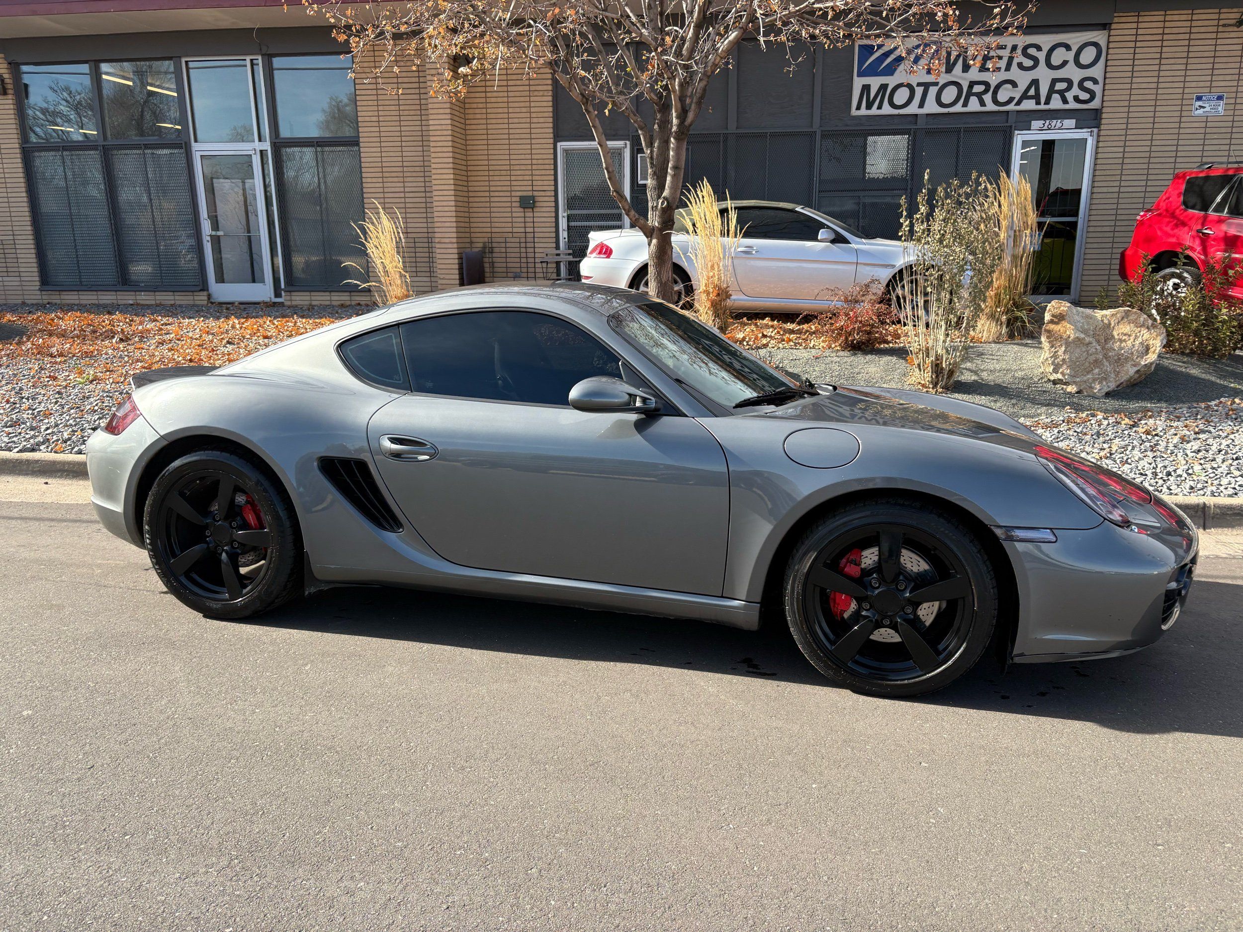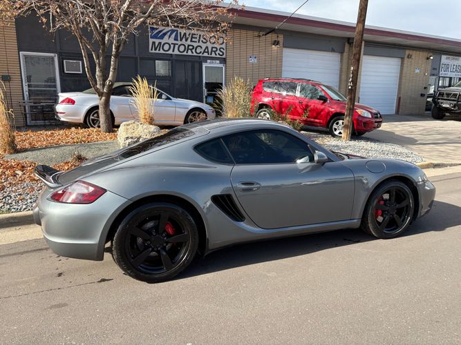 2008 Porsche Cayman S done in dark gray over black leather. The cayman S came with the 3.4L flat 6-cly good for 295HP with a 6-speed manual gearbox. Has upgraded taillights, new headlights and clear side marker lights for a nice look. Also has custom duck bill spoiler as well as black wheels with red painted brake calipers. The exterior is in very nice condition. There are some very minor scratches on the left quarter panel right behind the air vent and one small scratch on the front bumper. The interior is in very nice condition and has an upgraded audio system with Apple CarPlay. This car will come with two keys and is in very nice condition and freshly serviced and ready for the new owner. Call Weisco motorcars for additional information or to schedule an appointment time to view the vehicle in person.