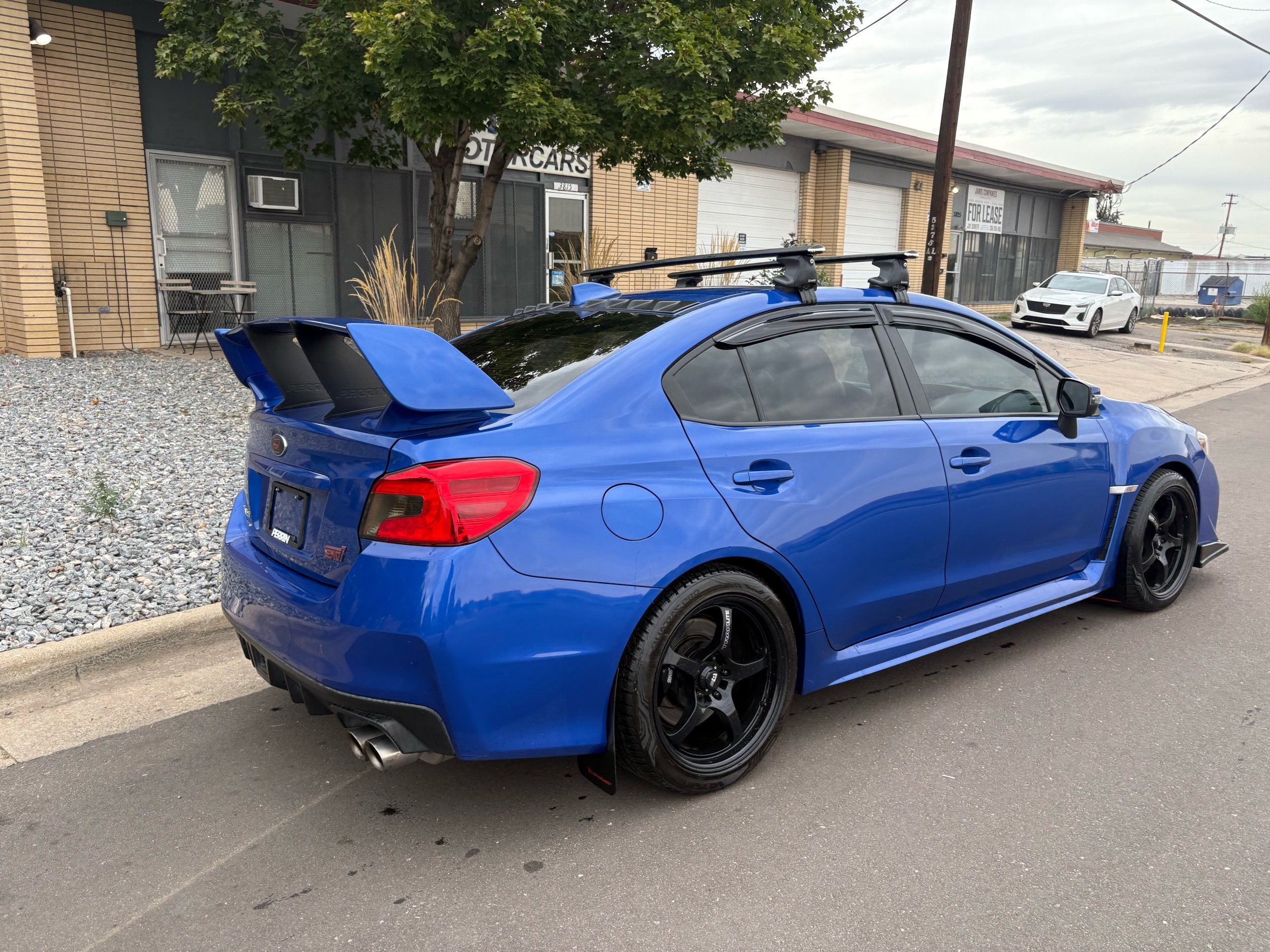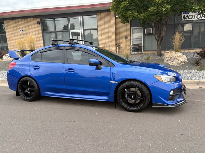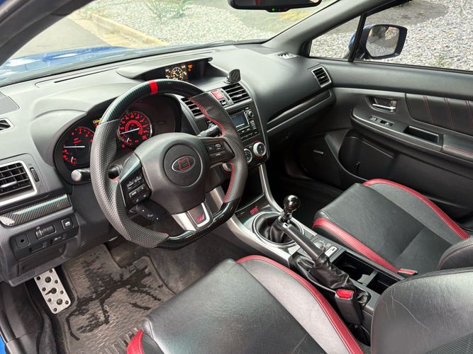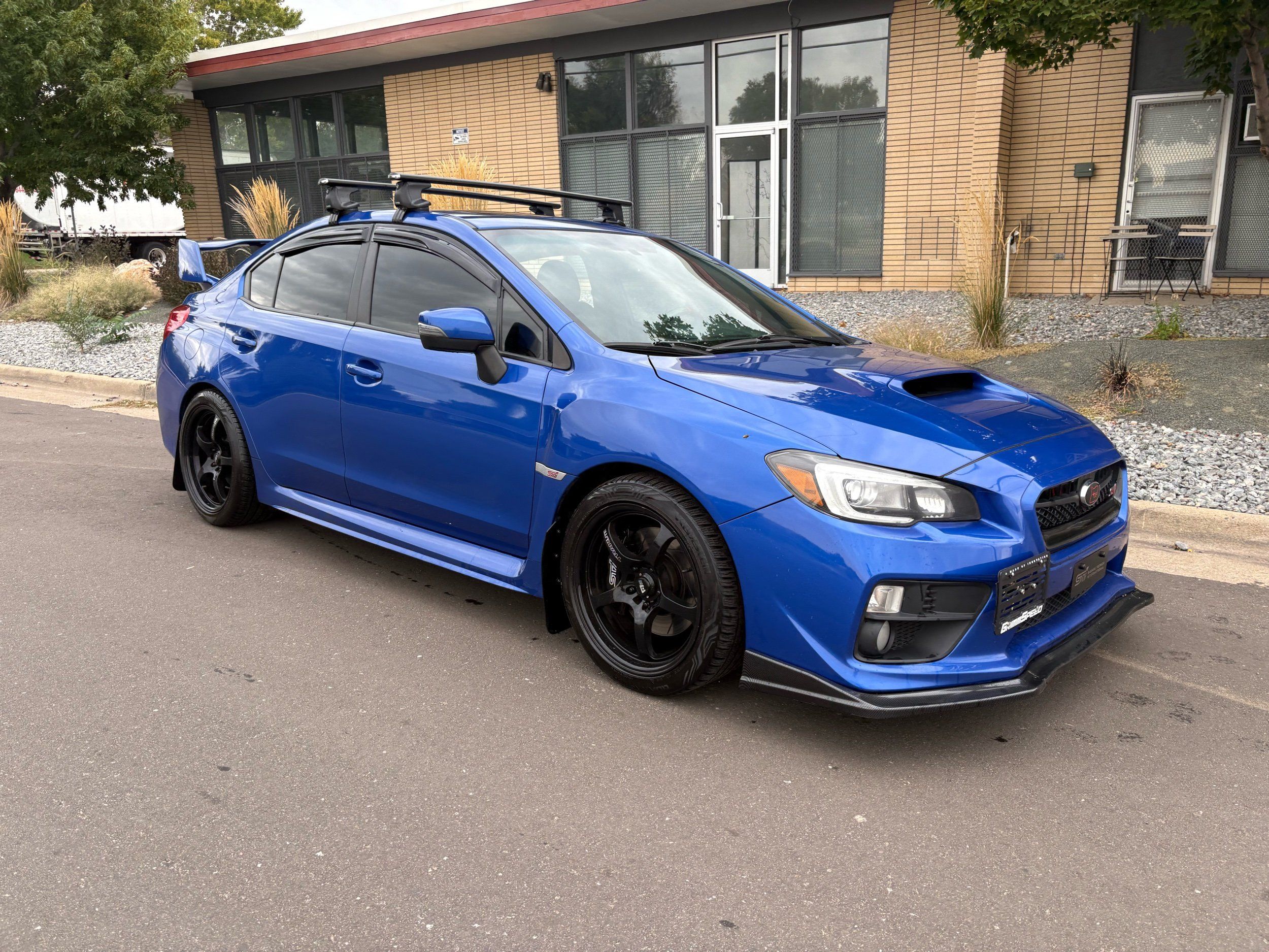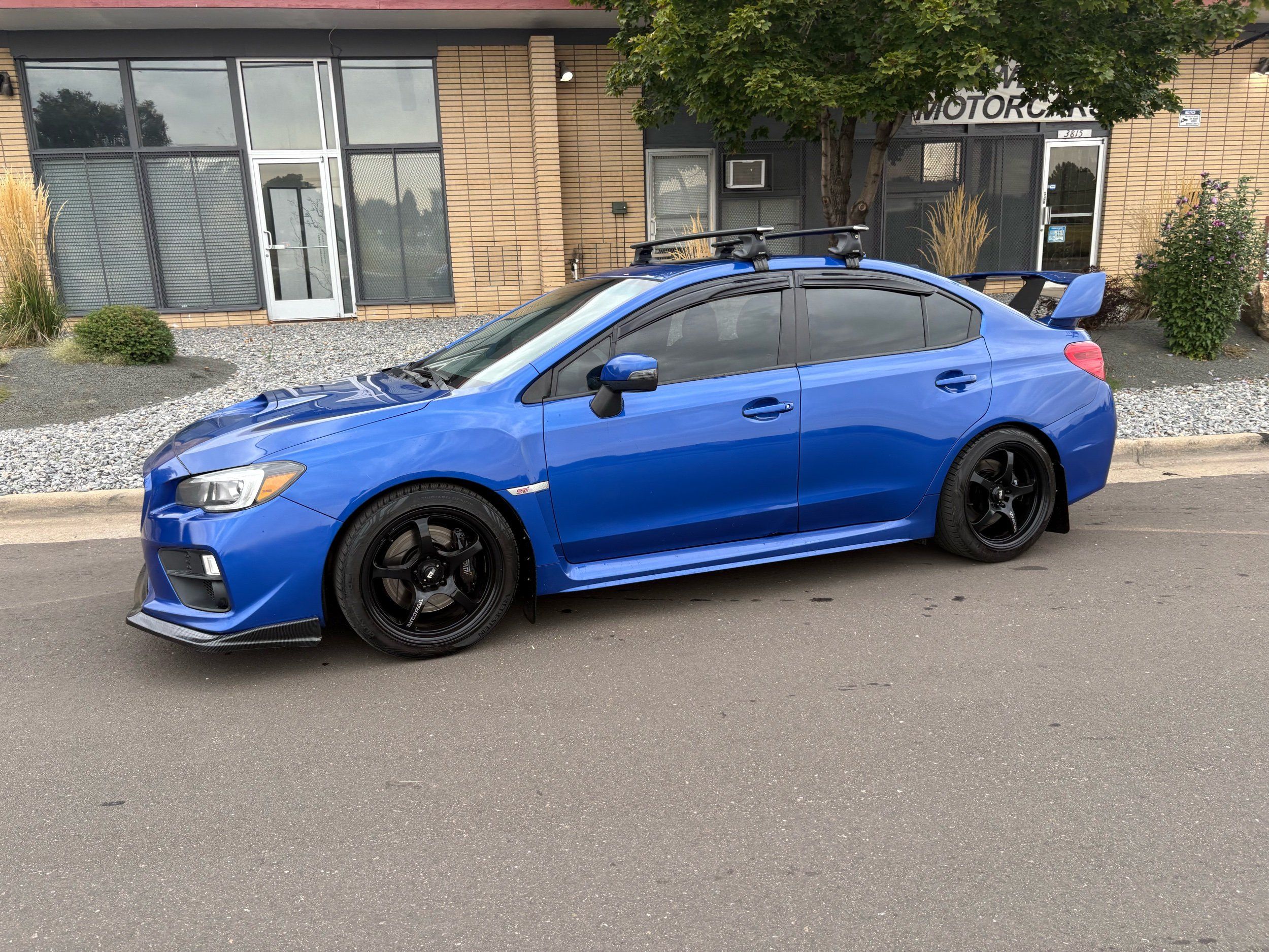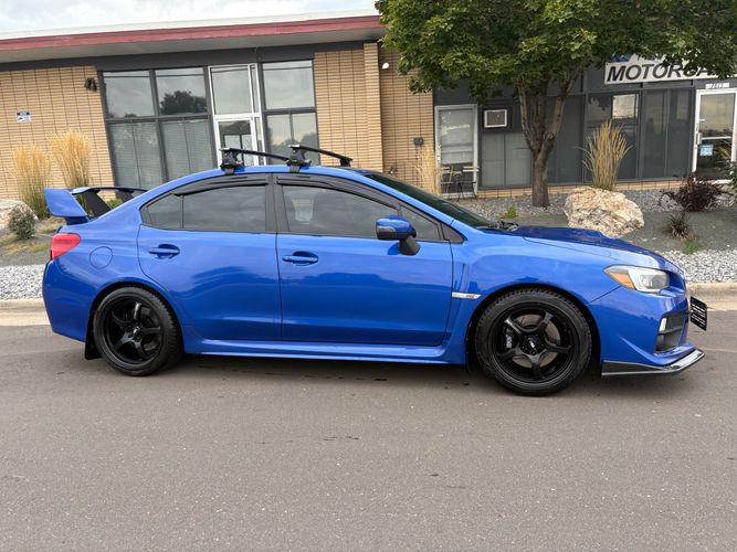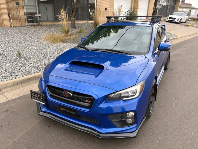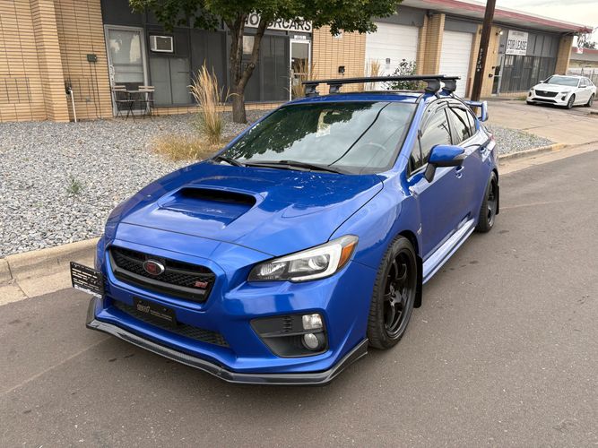 2015 Subaru WRX STi sedan with lots of nice upgrades. Finished in rally blue Pearl over black leather. Has factory options like: sunroof, back-up camera, leather seats, heated seats, keyless entry, HK sound, carbon fiber trim, and custom carbon fiber steering wheel. This has the Turbo charged 4cly with a 6-speed manual and all wheel drive. Upgrades and maintenance that has recently been done are stainless steel exhaust, new clutch and flywheel, Mishimoto radiator and hoses, HKS blow off valve, Cobb short shifter and much more. The outside looks so good in the factory Blue but looks even better with upgraded carbon fiber front lip, blacked out wheels with newer tires, tinted windows, carbon fiber emblem covers, rear wing supports and hella horns. One very fun car to seat behind the steering wheel and drive and gets lots of looks. Call Weisco Motorcars for more info or to set an appointment time to see this in person.