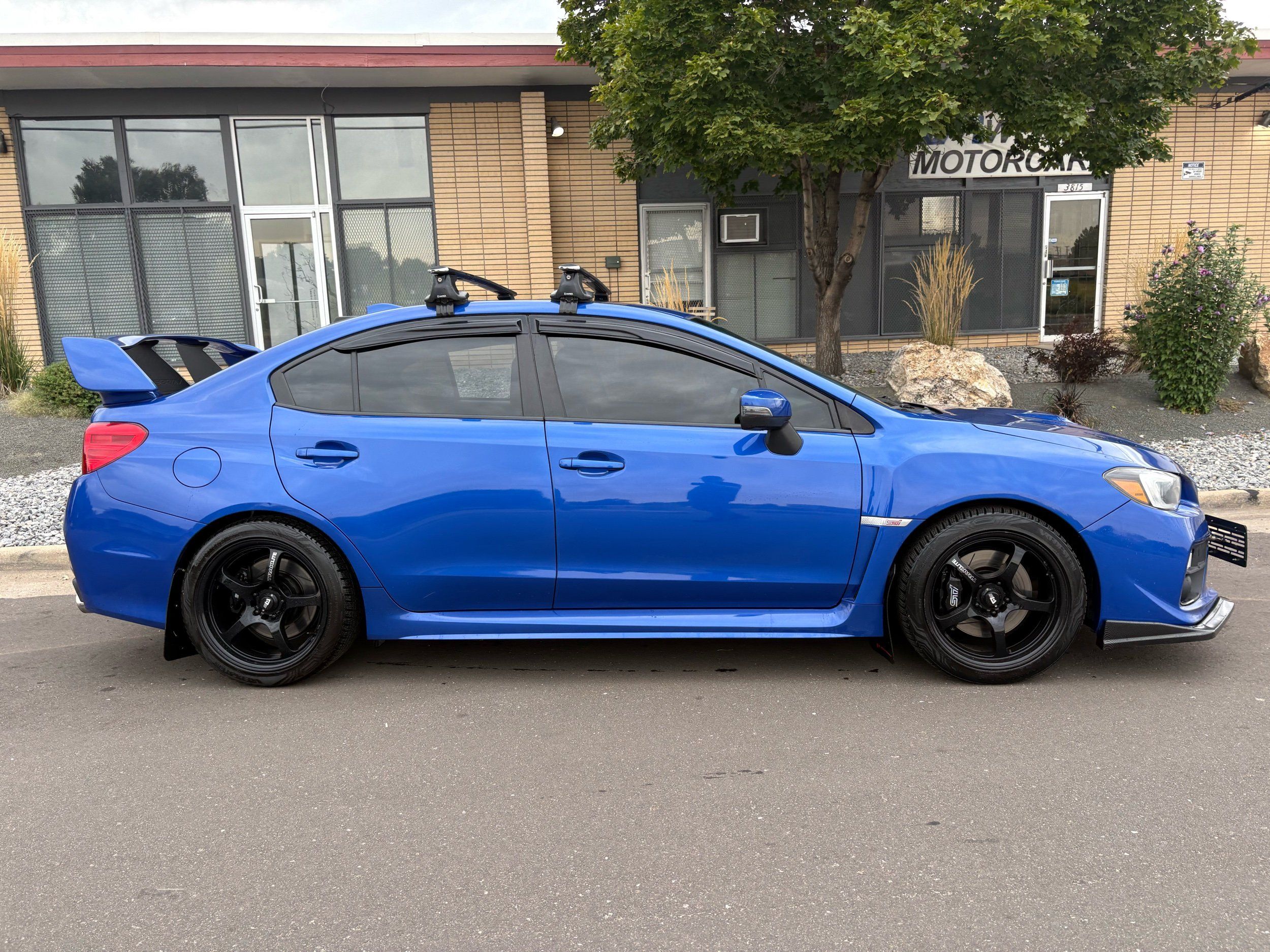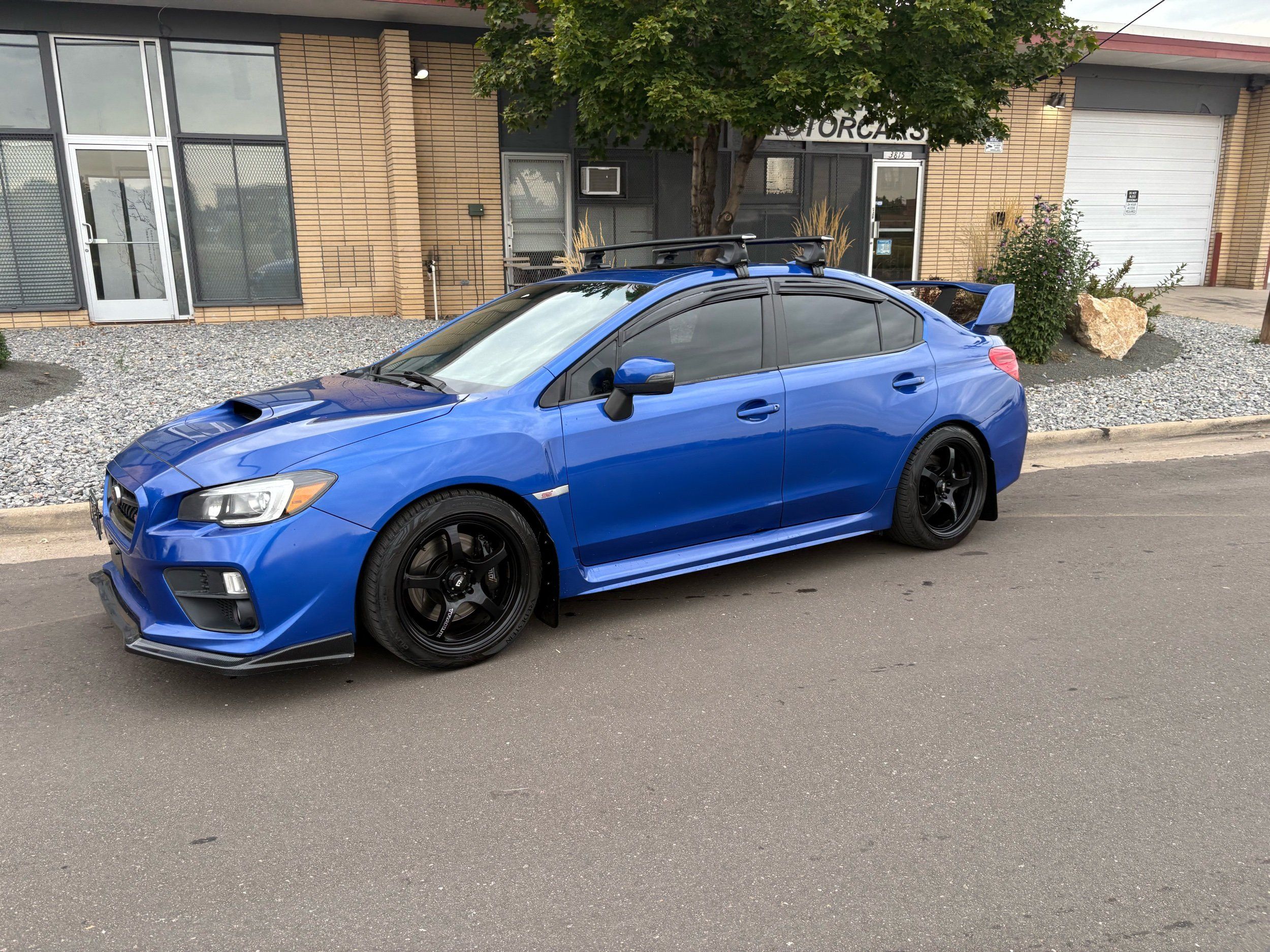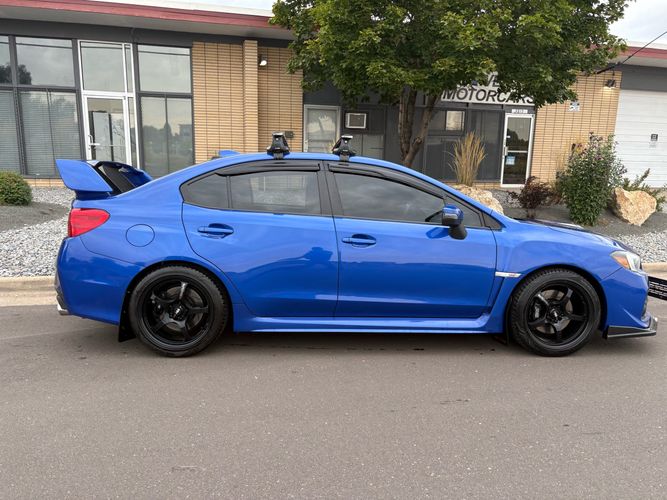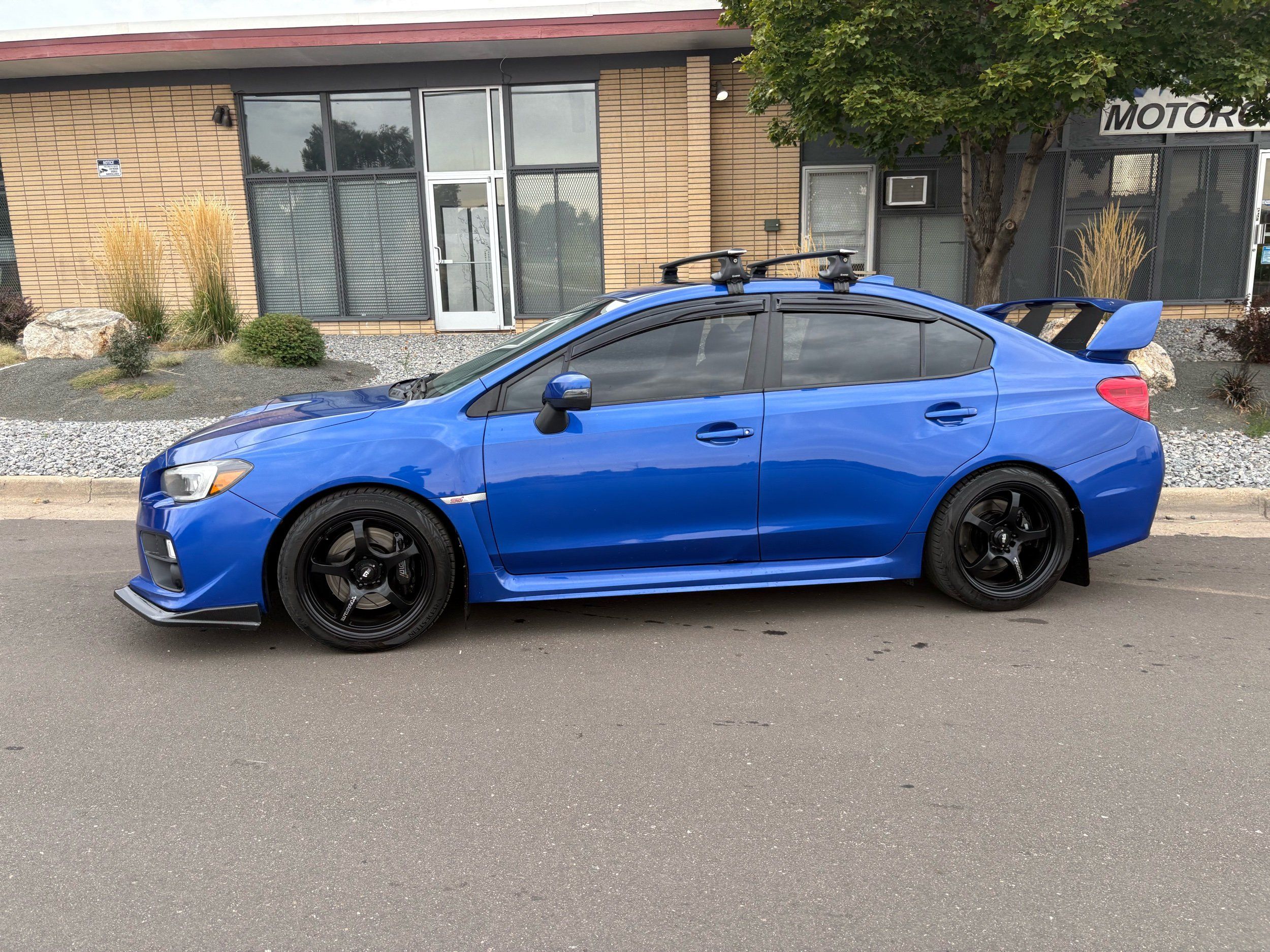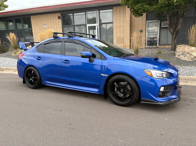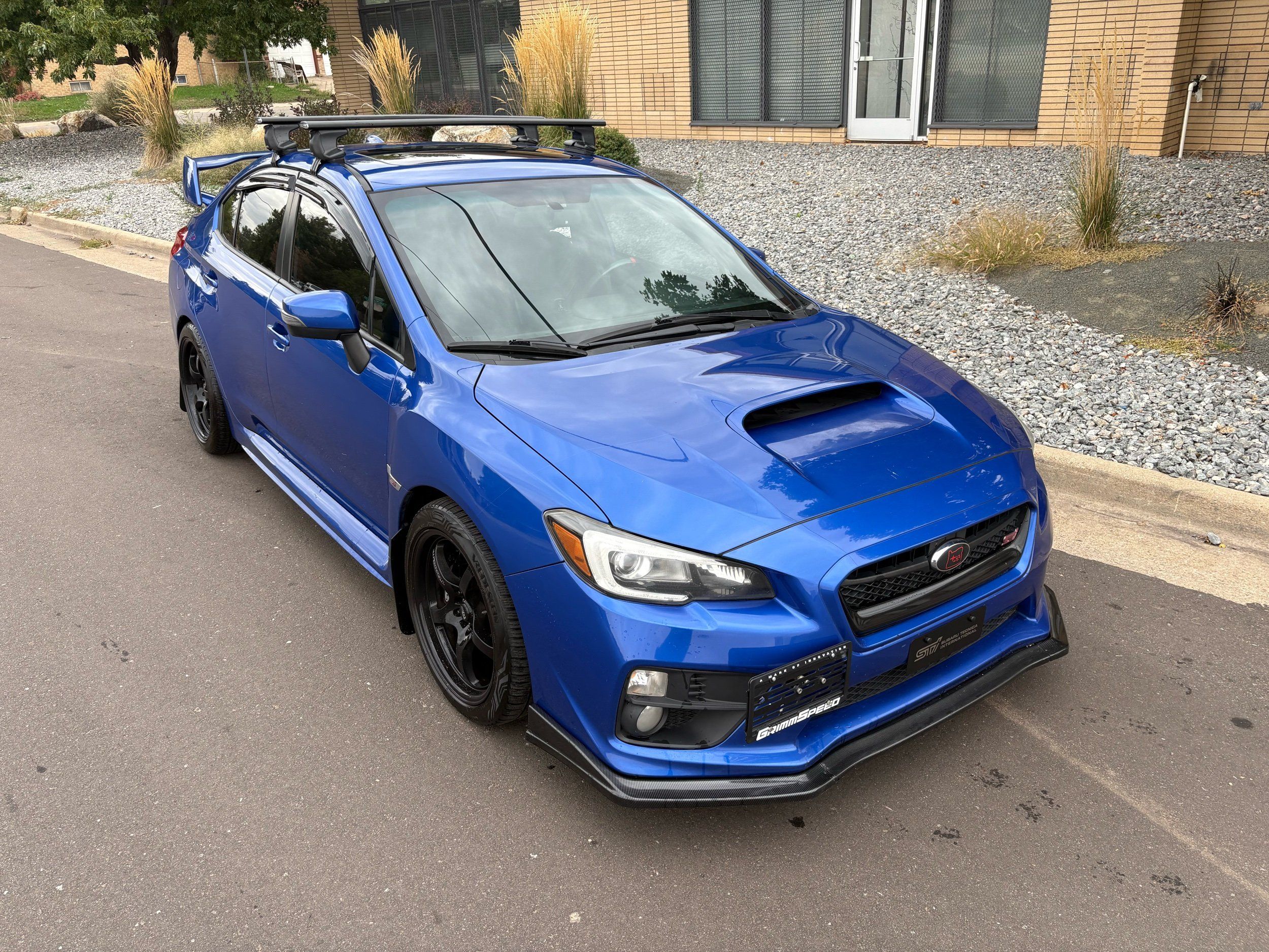 2015 Subaru WRX STi sedan with lots of nice upgrades. Finished in rally blue Pearl over black leather. Has factory options like: sunroof, back-up camera, leather seats, heated seats, keyless entry, HK sound, carbon fiber trim, and custom carbon fiber steering wheel. This has the Turbo charged 4cly with a 6-speed manual and all wheel drive. Upgrades and maintenance that has recently been done are stainless steel exhaust, new clutch and flywheel, Mishimoto radiator and hoses, HKS blow off valve, Cobb short shifter and much more. The outside looks so good in the factory Blue but looks even better with upgraded carbon fiber front lip, blacked out wheels with newer tires, tinted windows, carbon fiber emblem covers, rear wing supports and hella horns. One very fun car to seat behind the steering wheel and drive and gets lots of looks. Call Weisco Motorcars for more info or to set an appointment time to see this in person.