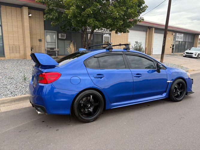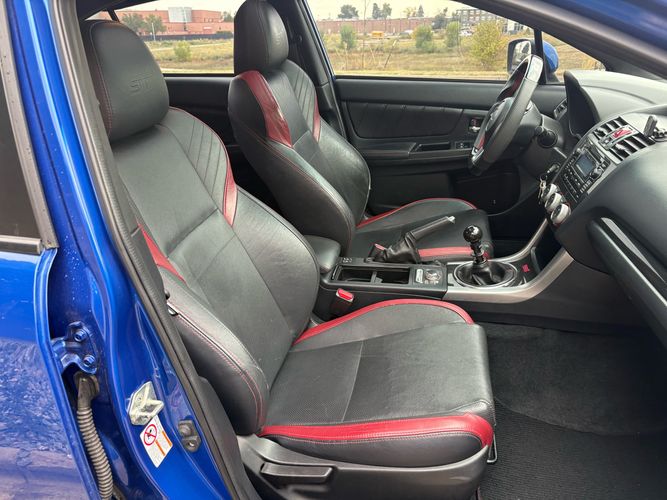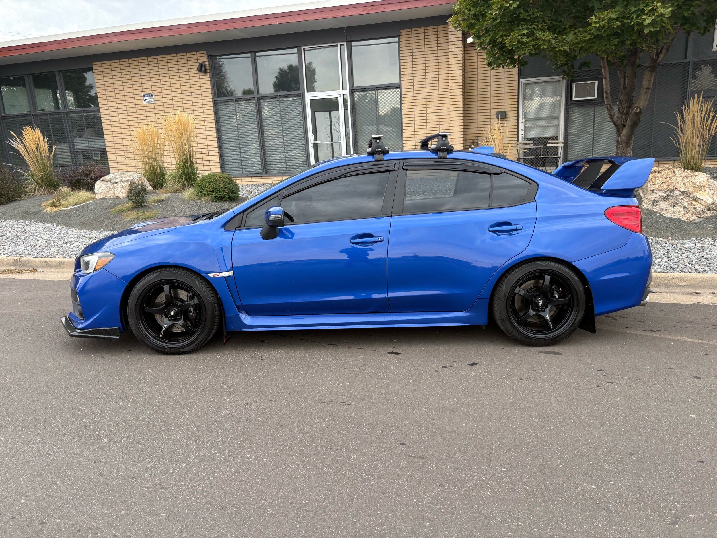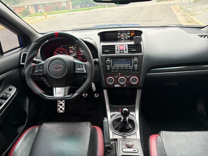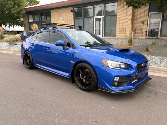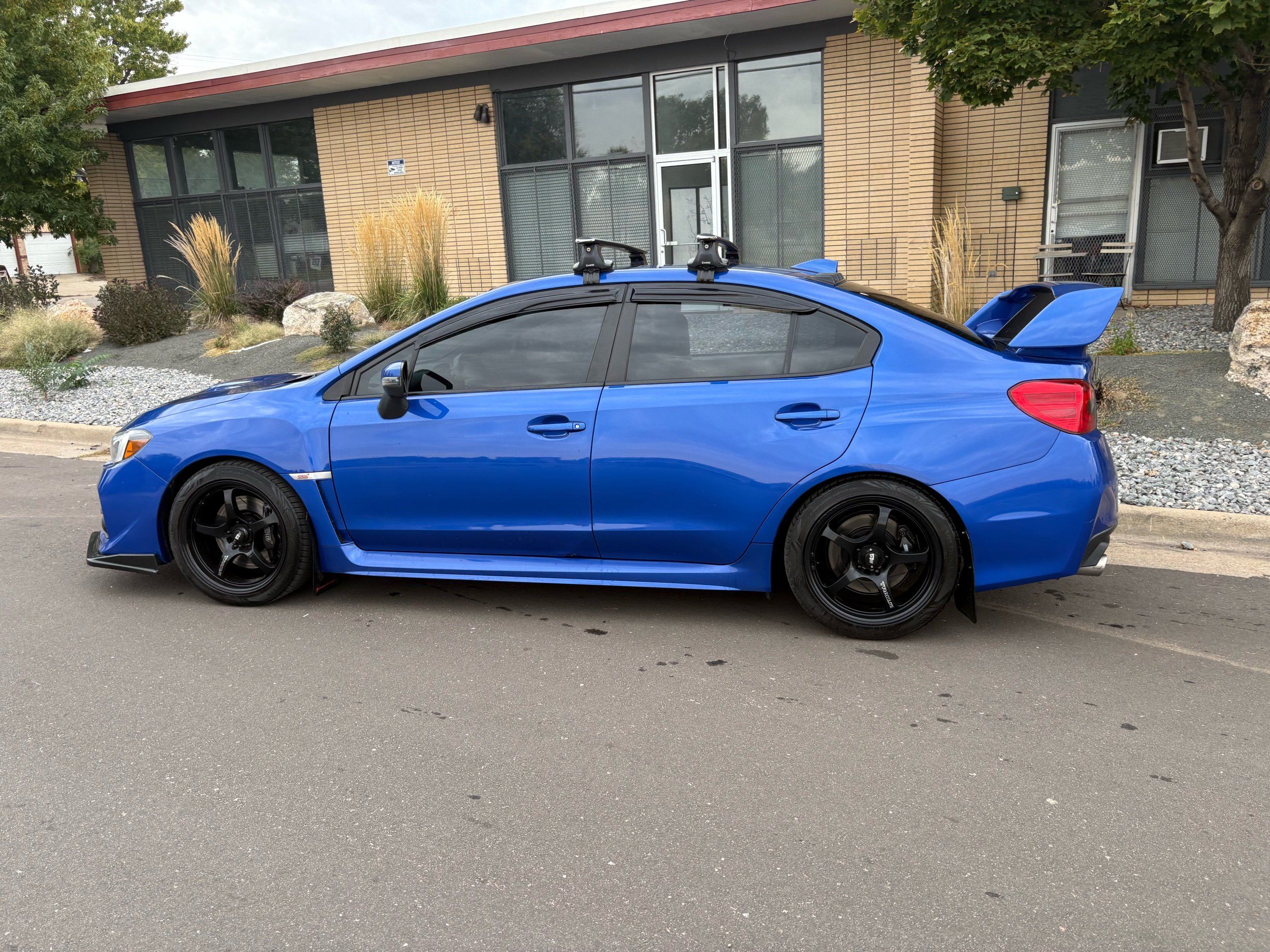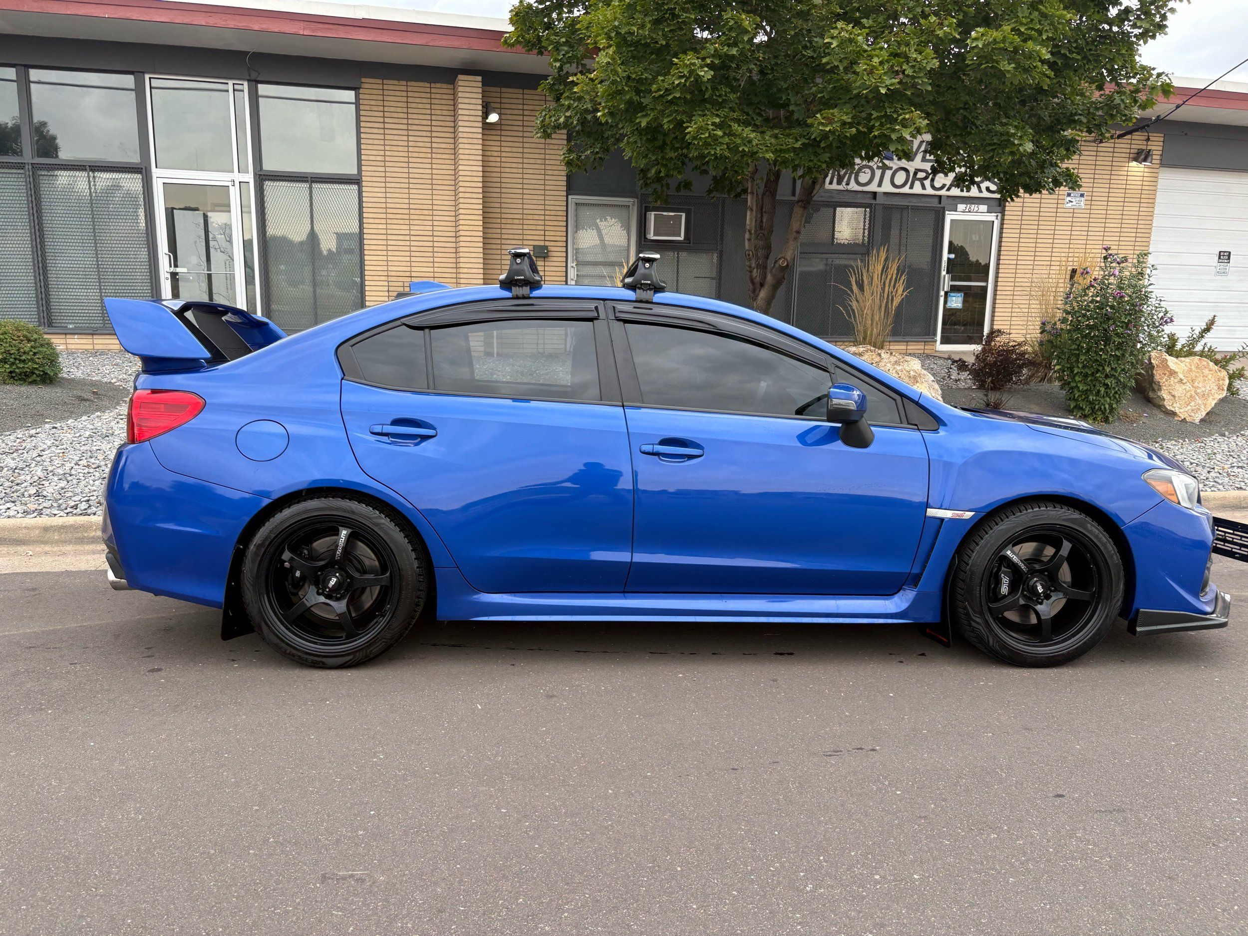 2015 Subaru WRX STi sedan with lots of nice upgrades. Finished in rally blue Pearl over black leather. Has factory options like: sunroof, back-up camera, leather seats, heated seats, keyless entry, HK sound, carbon fiber trim, and custom carbon fiber steering wheel. This has the Turbo charged 4cly with a 6-speed manual and all wheel drive. Upgrades and maintenance that has recently been done are stainless steel exhaust, new clutch and flywheel, Mishimoto radiator and hoses, HKS blow off valve, Cobb short shifter and much more. The outside looks so good in the factory Blue but looks even better with upgraded carbon fiber front lip, blacked out wheels with newer tires, tinted windows, carbon fiber emblem covers, rear wing supports and hella horns. One very fun car to seat behind the steering wheel and drive and gets lots of looks. Call Weisco Motorcars for more info or to set an appointment time to see this in person.