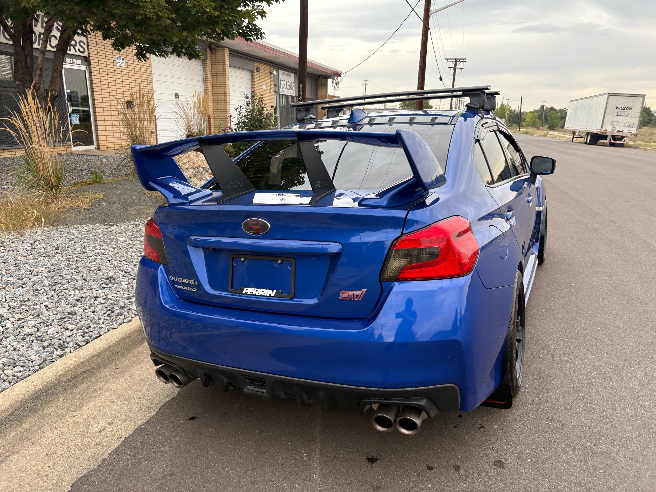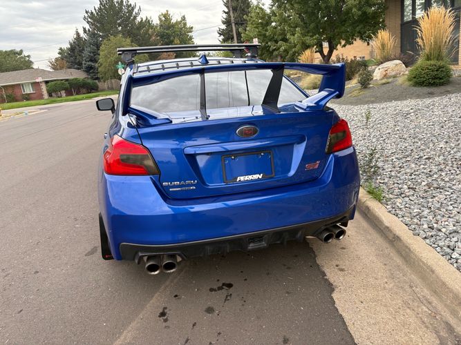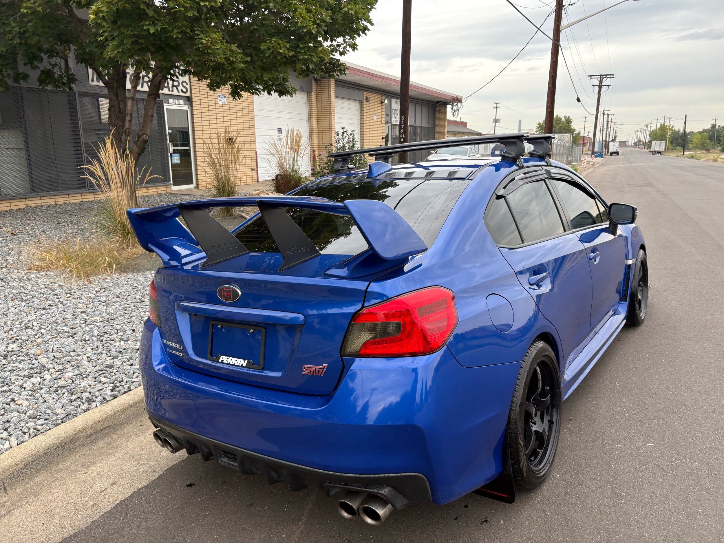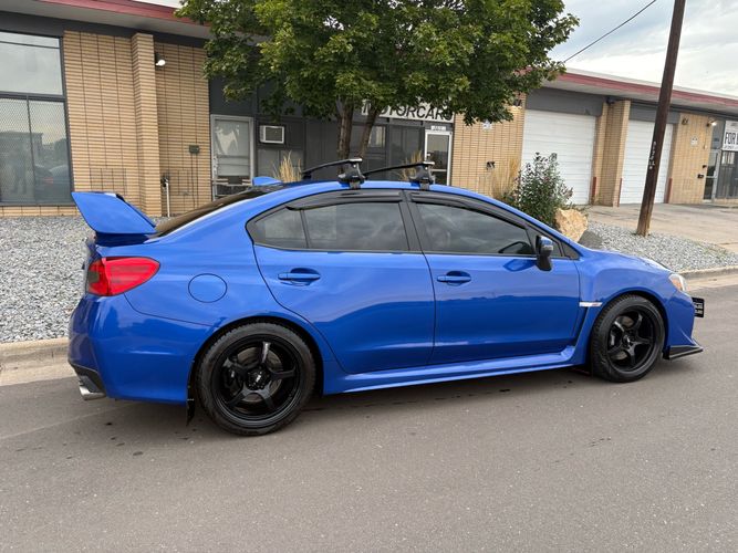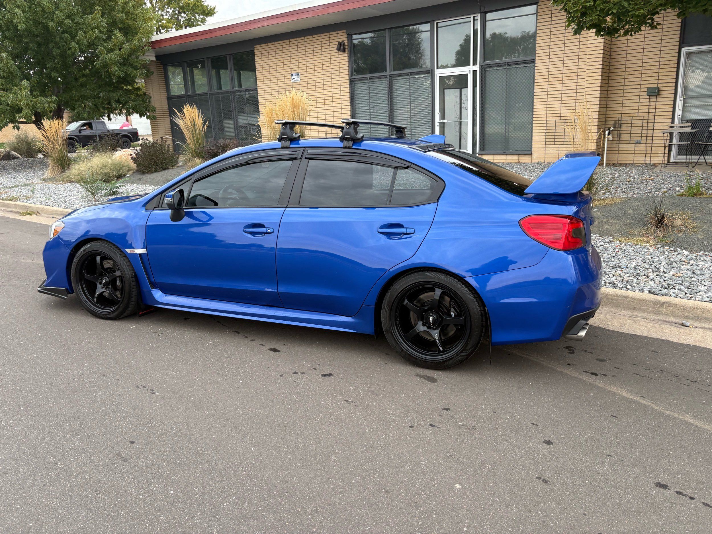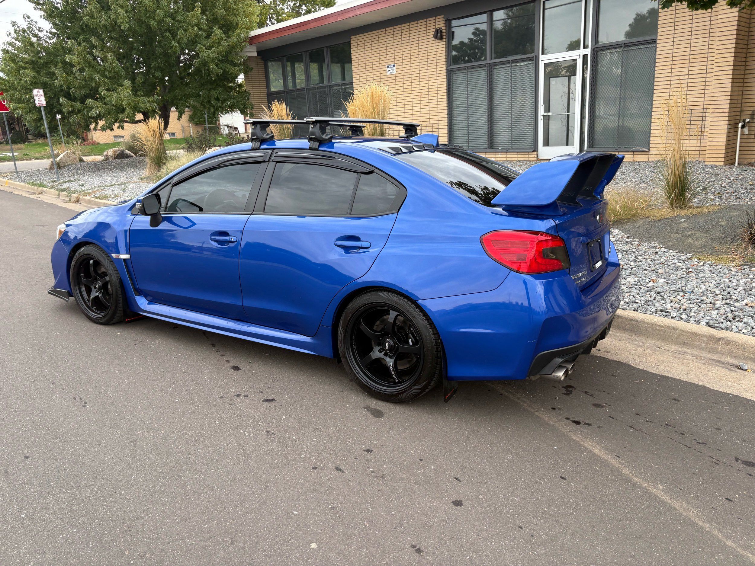 2015 Subaru WRX STi sedan with lots of nice upgrades. Finished in rally blue Pearl over black leather. Has factory options like: sunroof, back-up camera, leather seats, heated seats, keyless entry, HK sound, carbon fiber trim, and custom carbon fiber steering wheel. This has the Turbo charged 4cly with a 6-speed manual and all wheel drive. Upgrades and maintenance that has recently been done are stainless steel exhaust, new clutch and flywheel, Mishimoto radiator and hoses, HKS blow off valve, Cobb short shifter and much more. The outside looks so good in the factory Blue but looks even better with upgraded carbon fiber front lip, blacked out wheels with newer tires, tinted windows, carbon fiber emblem covers, rear wing supports and hella horns. One very fun car to seat behind the steering wheel and drive and gets lots of looks. Call Weisco Motorcars for more info or to set an appointment time to see this in person.