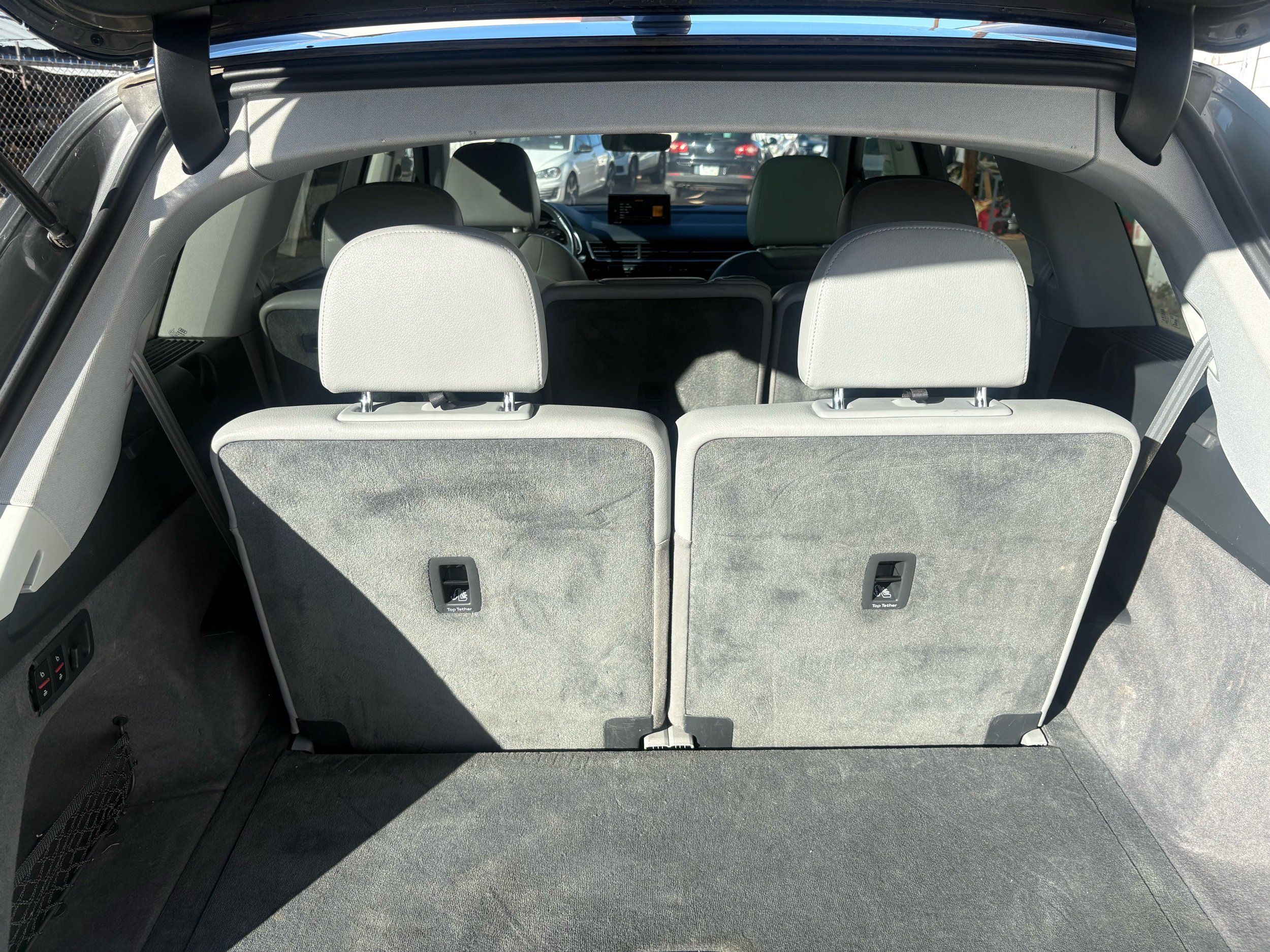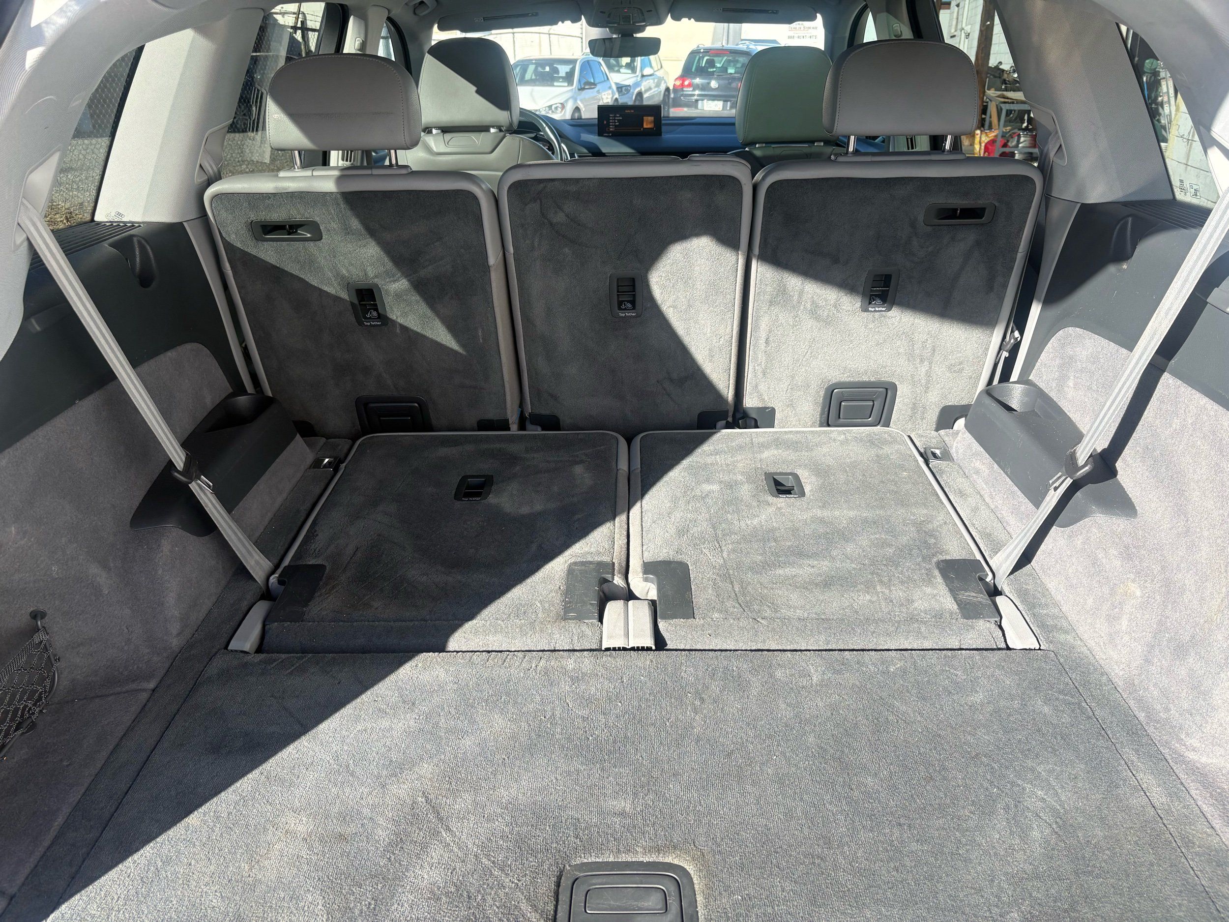 Third-row seatback upholstery: Carpet third-row seatback upholstery